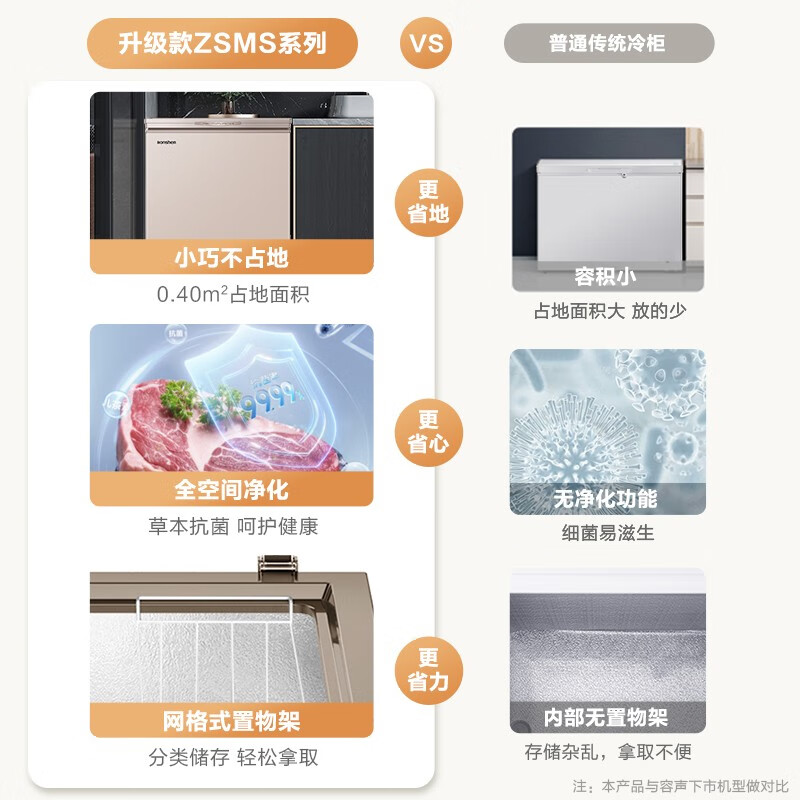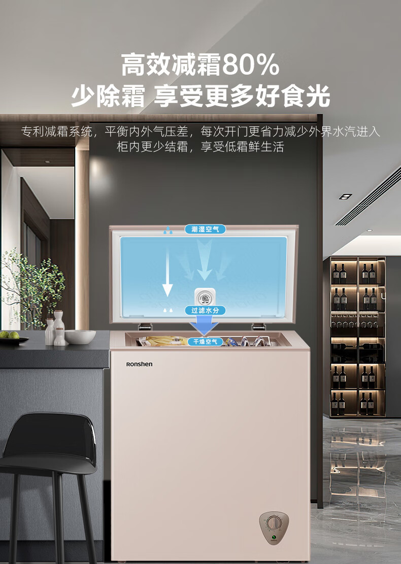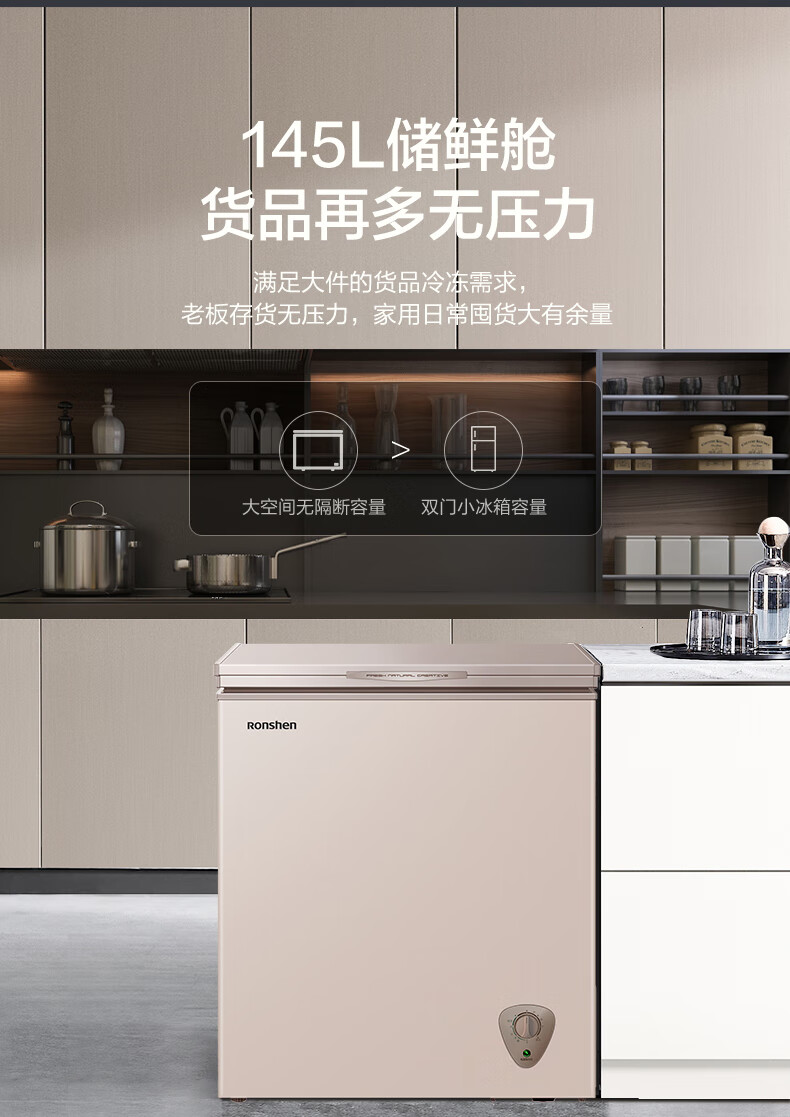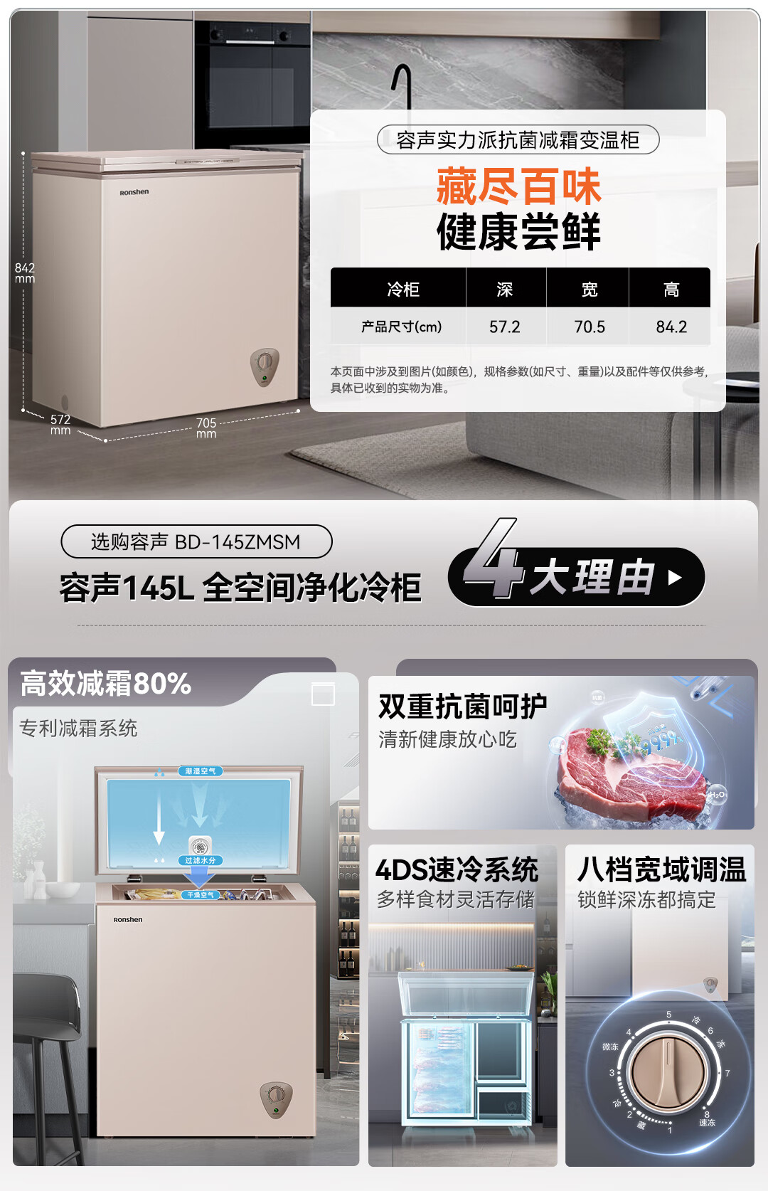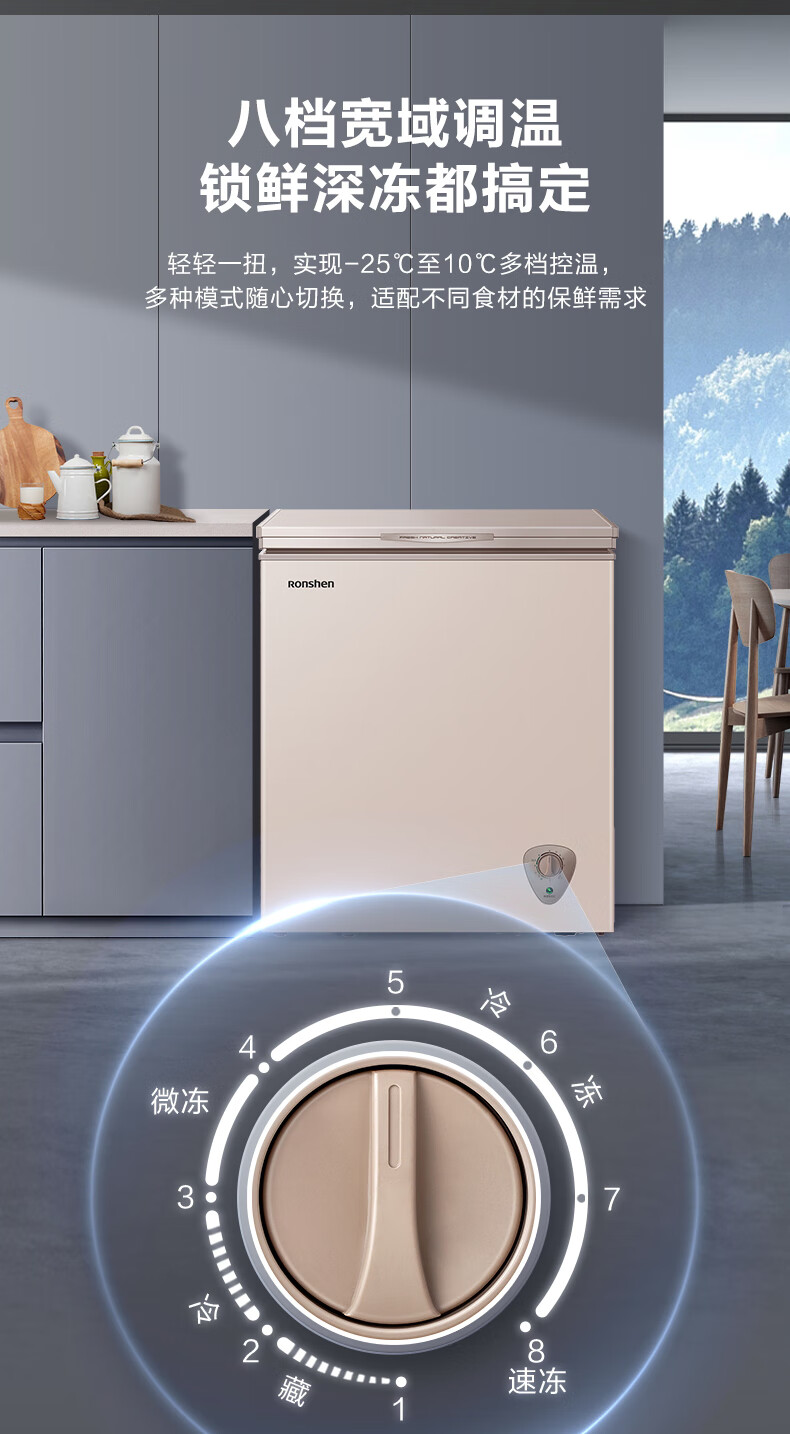 容声(Ronshen)145升冰柜小型冷柜冷藏冷冻商用家用小冰柜迷你变温母婴母乳小冰箱卧式一级能效BD/BC-145ZMSM 【全空间净化】八档调温 高效减霜变温款 145L