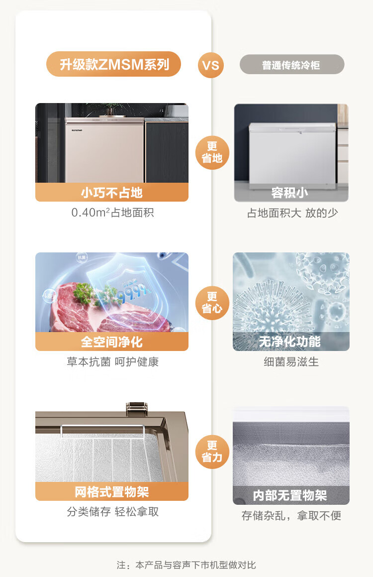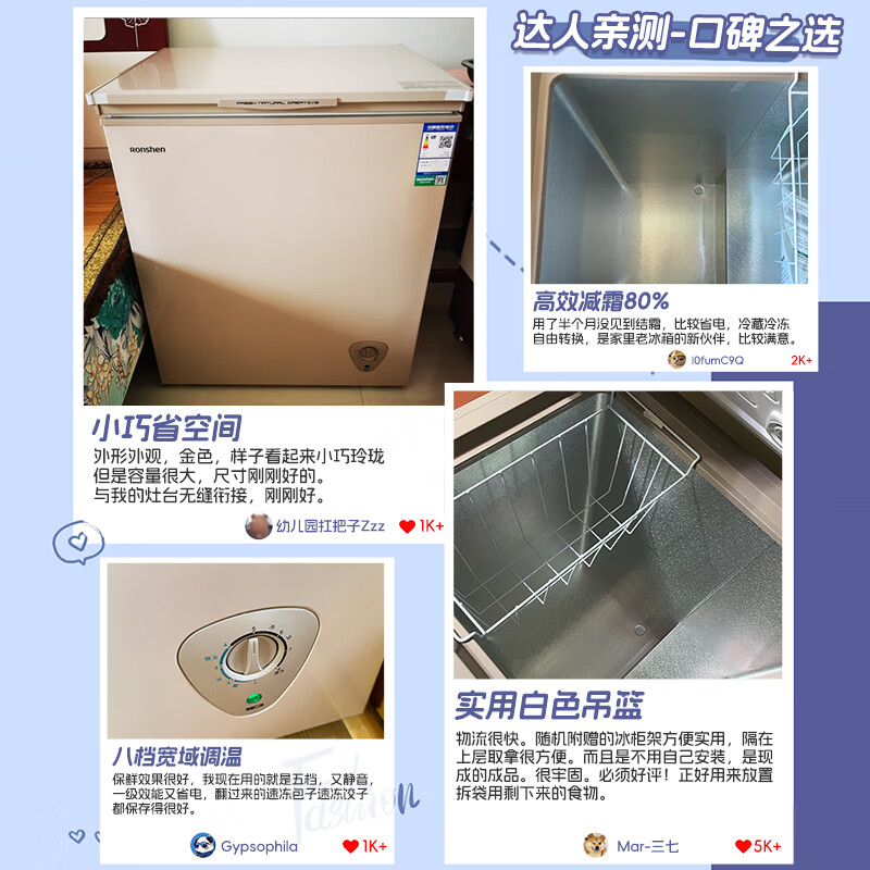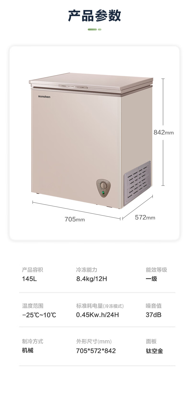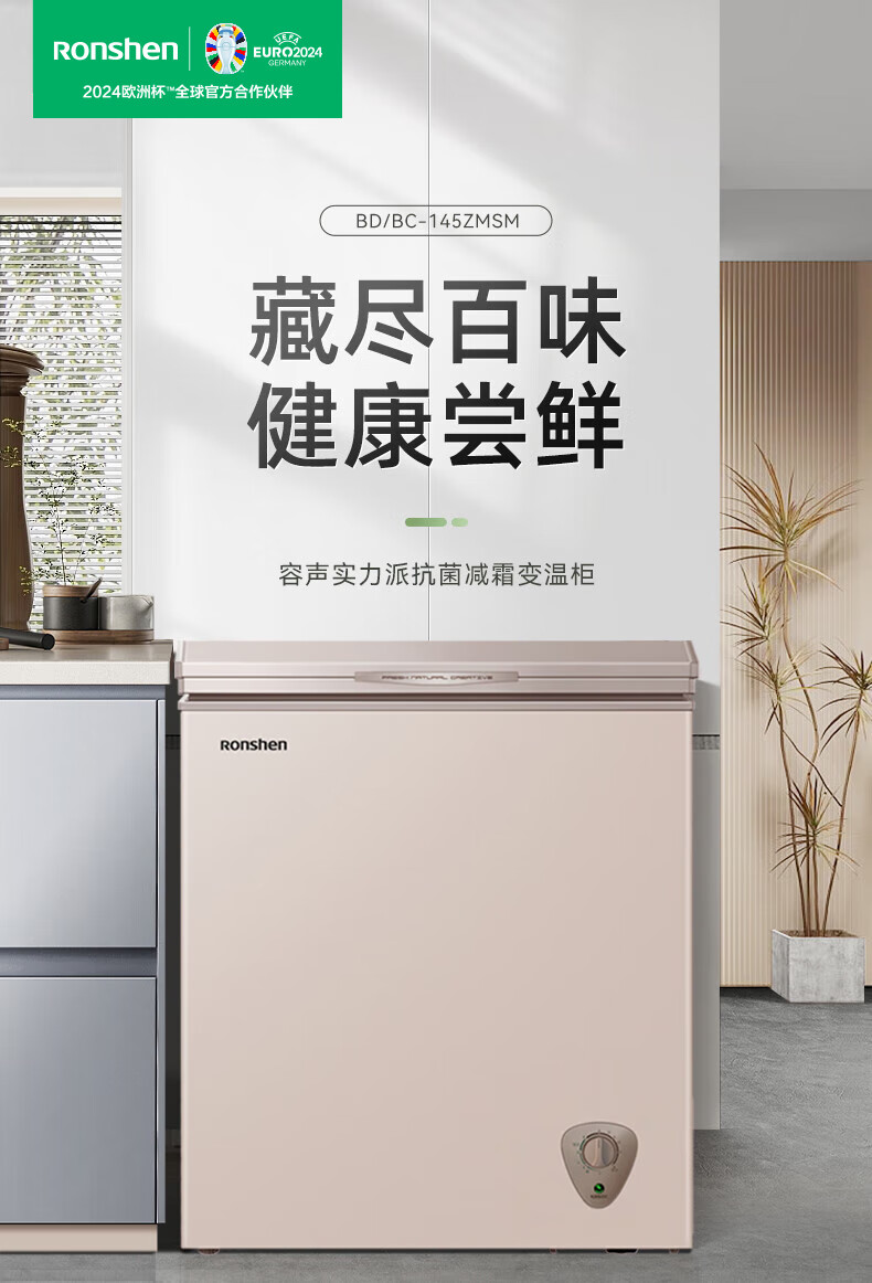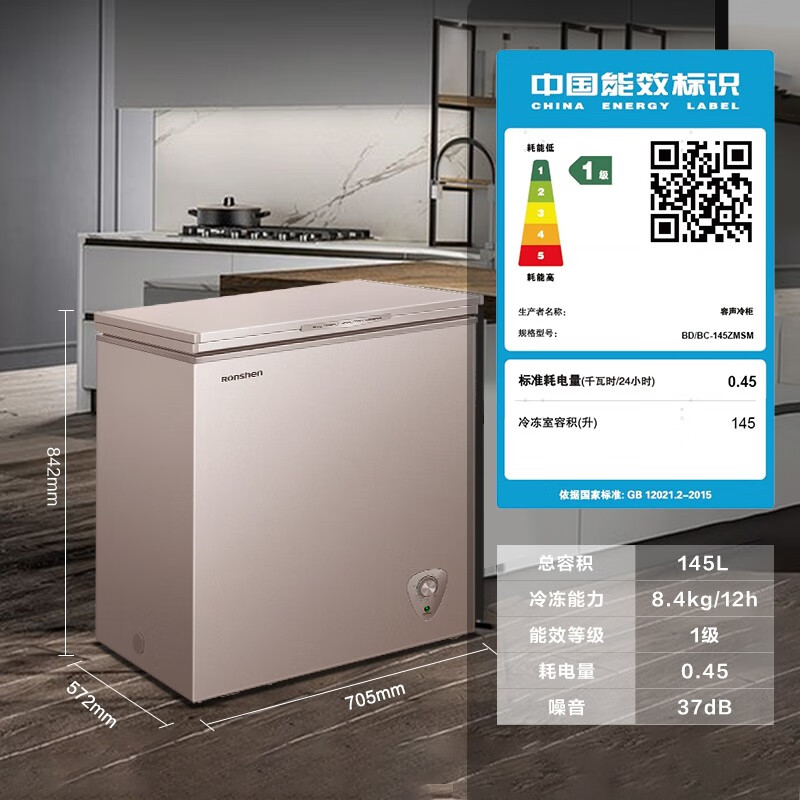 容声(Ronshen)145升冰柜小型冷柜冷藏冷冻商用家用小冰柜迷你变温母婴母乳小冰箱卧式一级能效BD/BC-145ZMSM 【全空间净化】八档调温 高效减霜变温款 145L