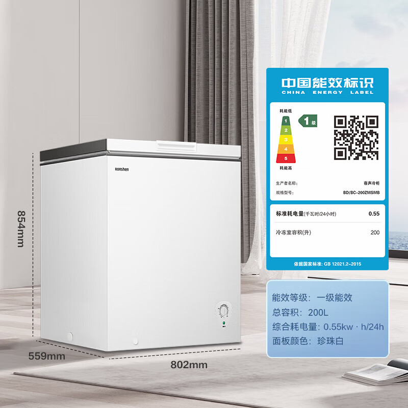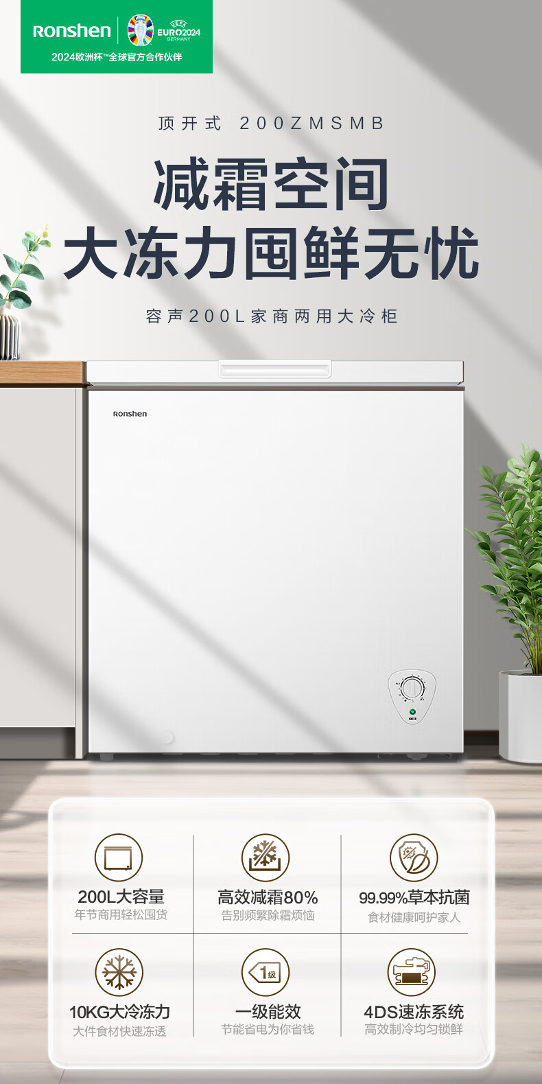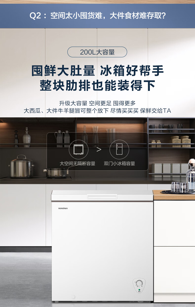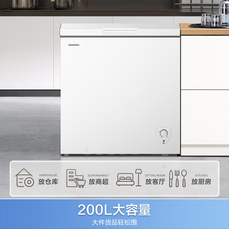 容声(Ronshen) 容声200升减霜小型冰柜家用冷藏冷冻转换单温冷柜 一级能效家商两用卧式冰箱 BD/BC-200ZMSMB 200L