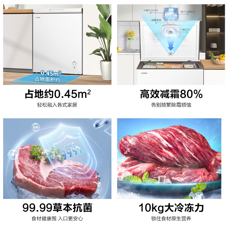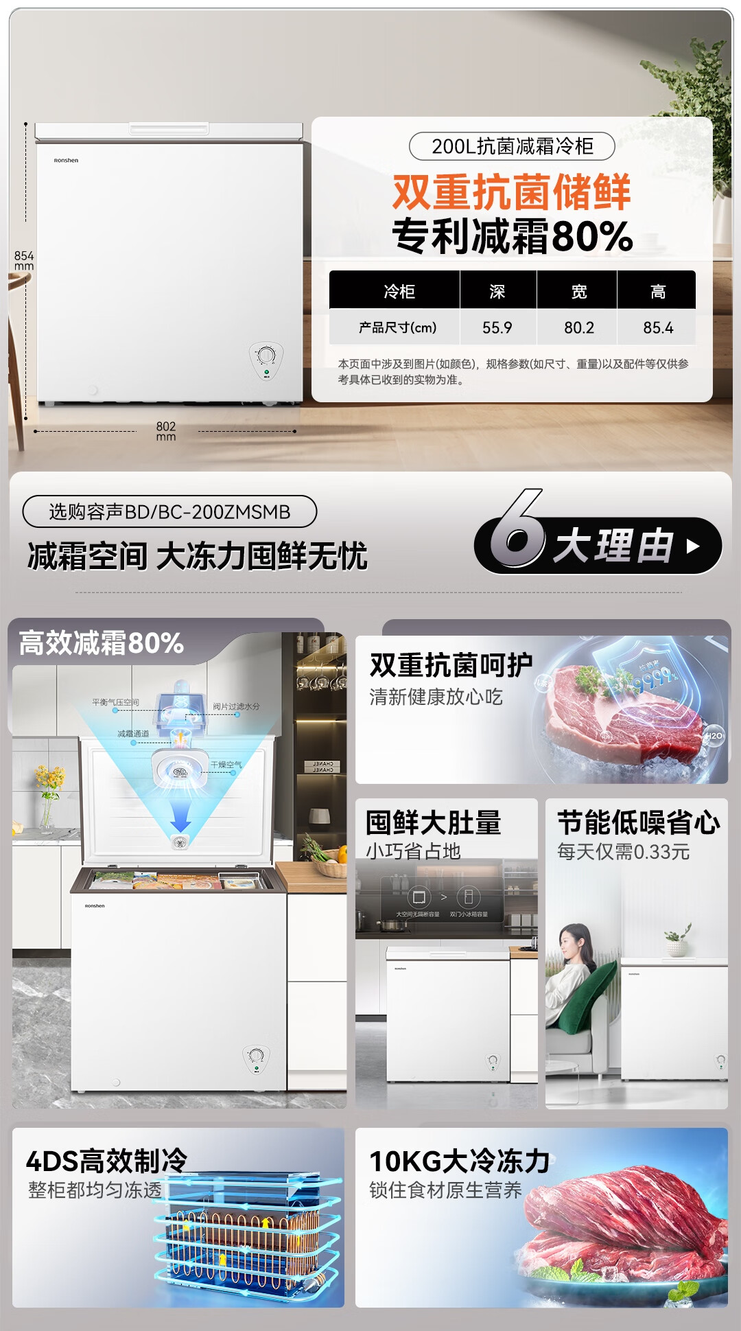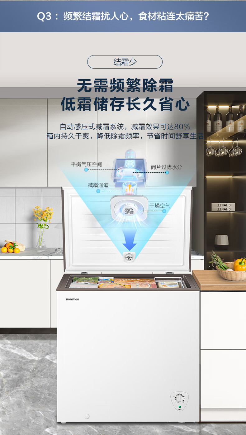 容声(Ronshen) 容声200升减霜小型冰柜家用冷藏冷冻转换单温冷柜 一级能效家商两用卧式冰箱 BD/BC-200ZMSMB 200L