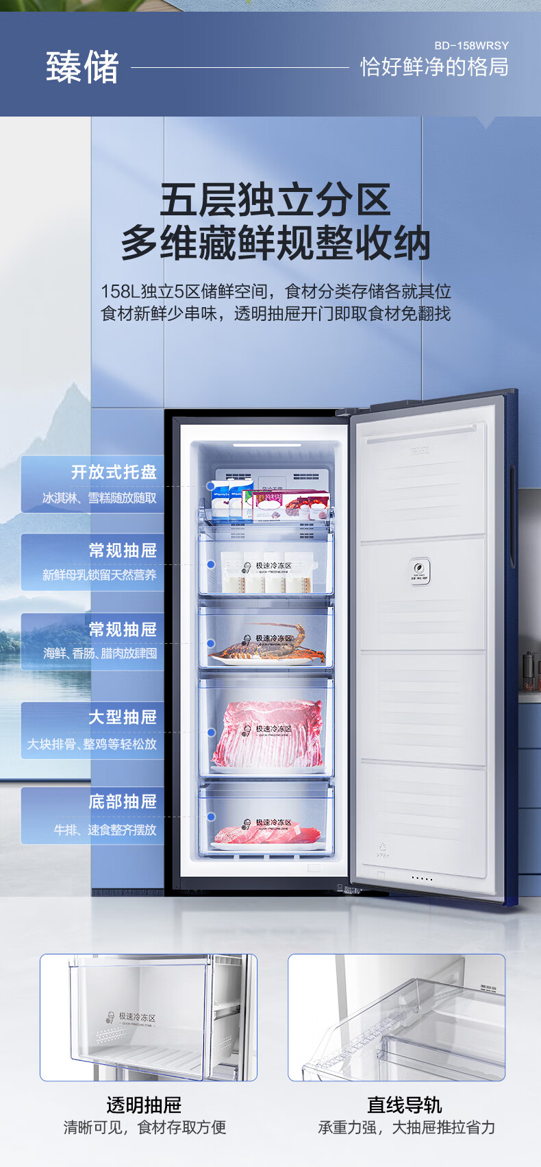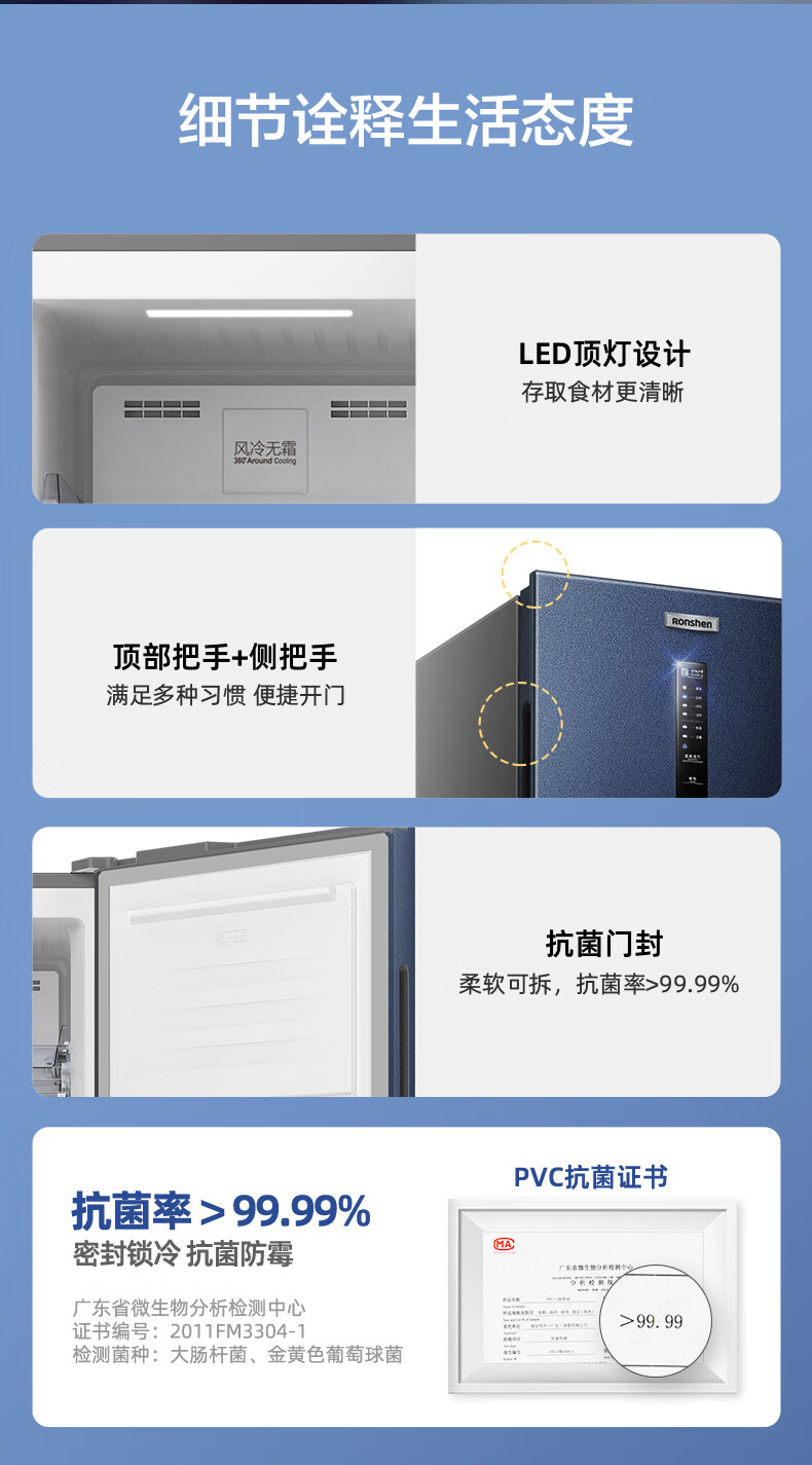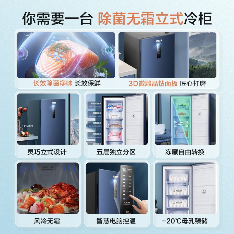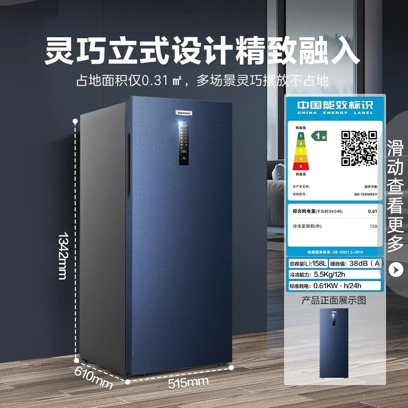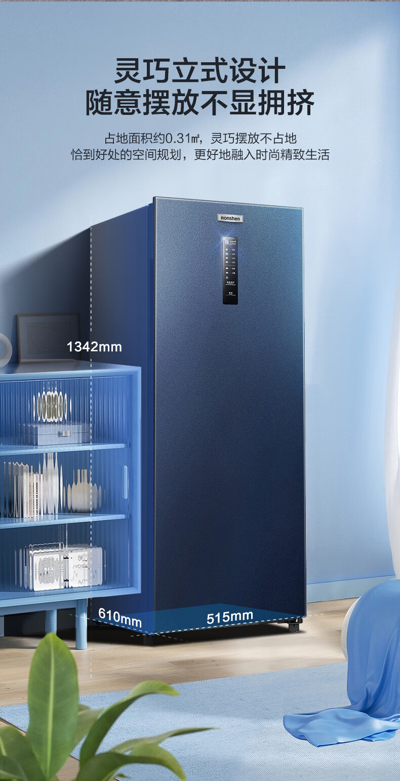 容声(Ronshen)158升立式冰柜家用冷藏冷冻柜商用保鲜柜冰箱风冷无霜除菌净味一级能效囤货无忧 158L