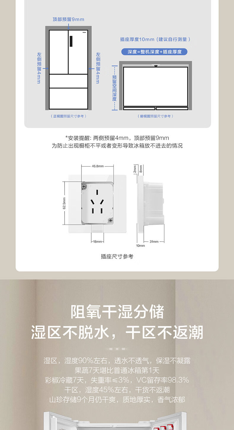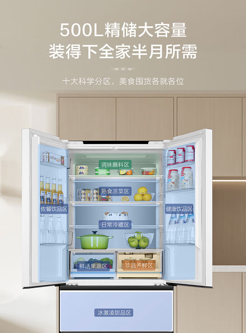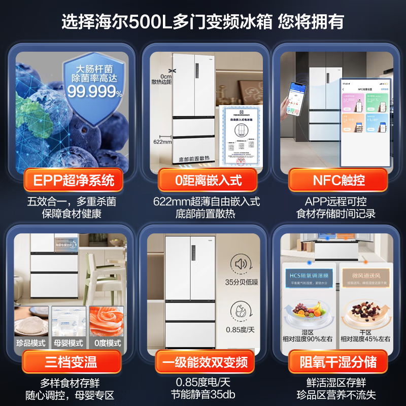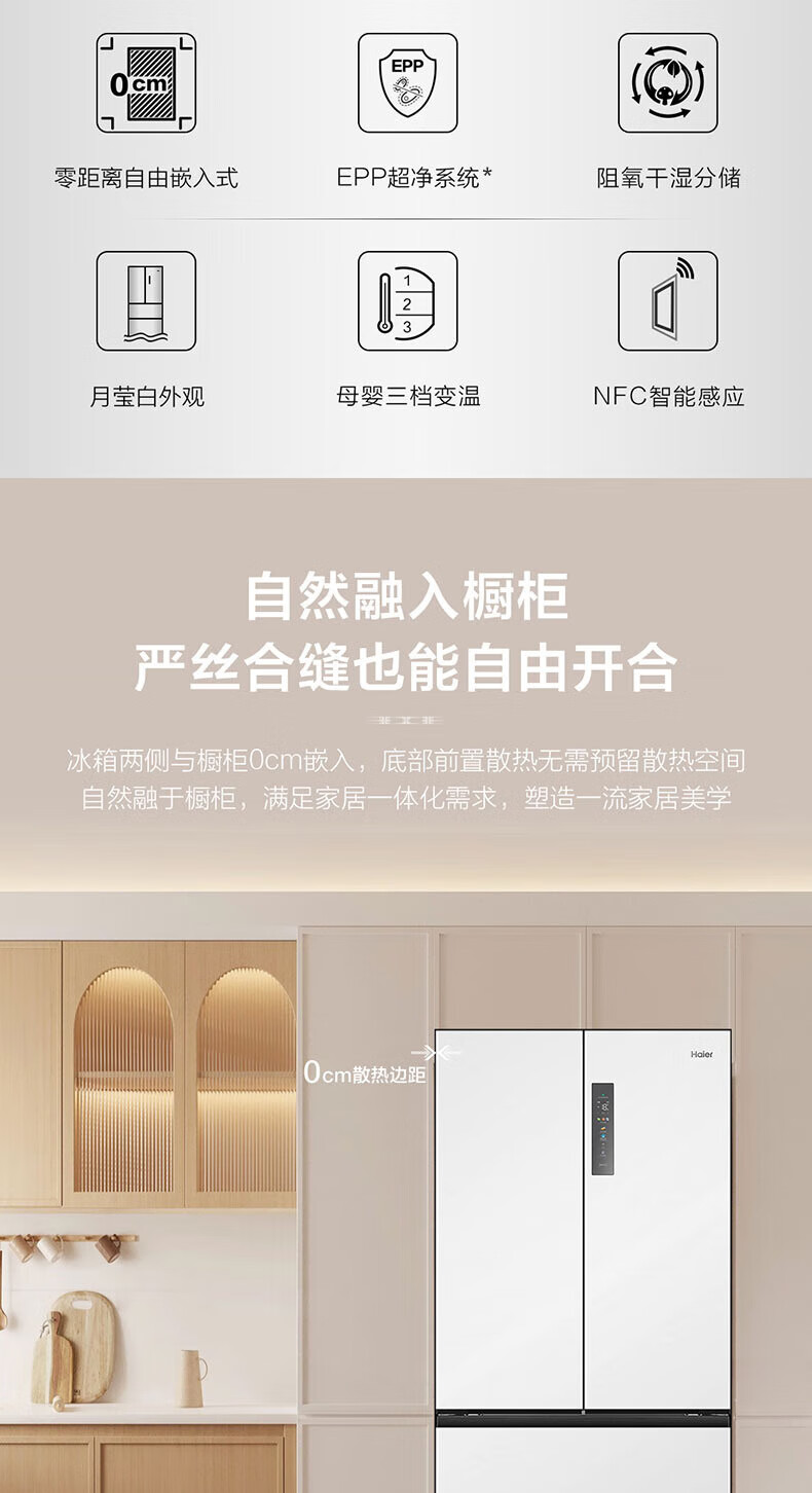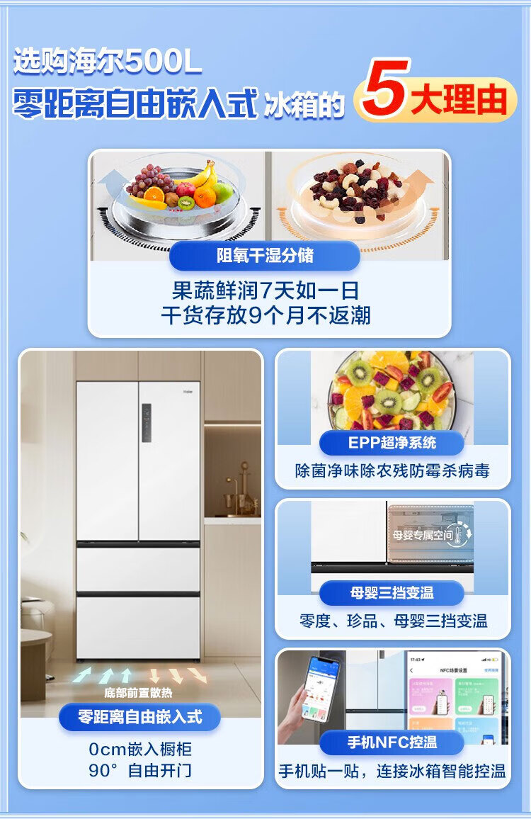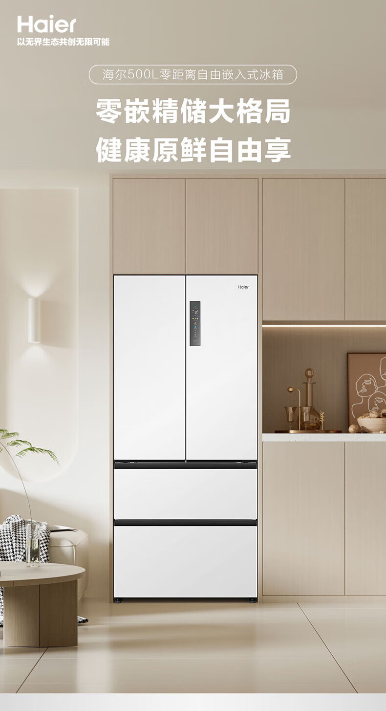 海尔(Haier)【0cm边距】海尔冰箱500升法式多门零距离嵌入式零嵌干湿分储EPP超净家用变频一级能效超薄冰箱