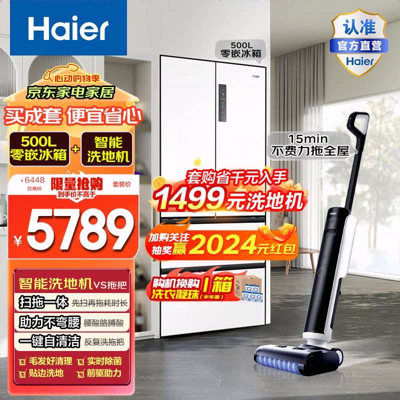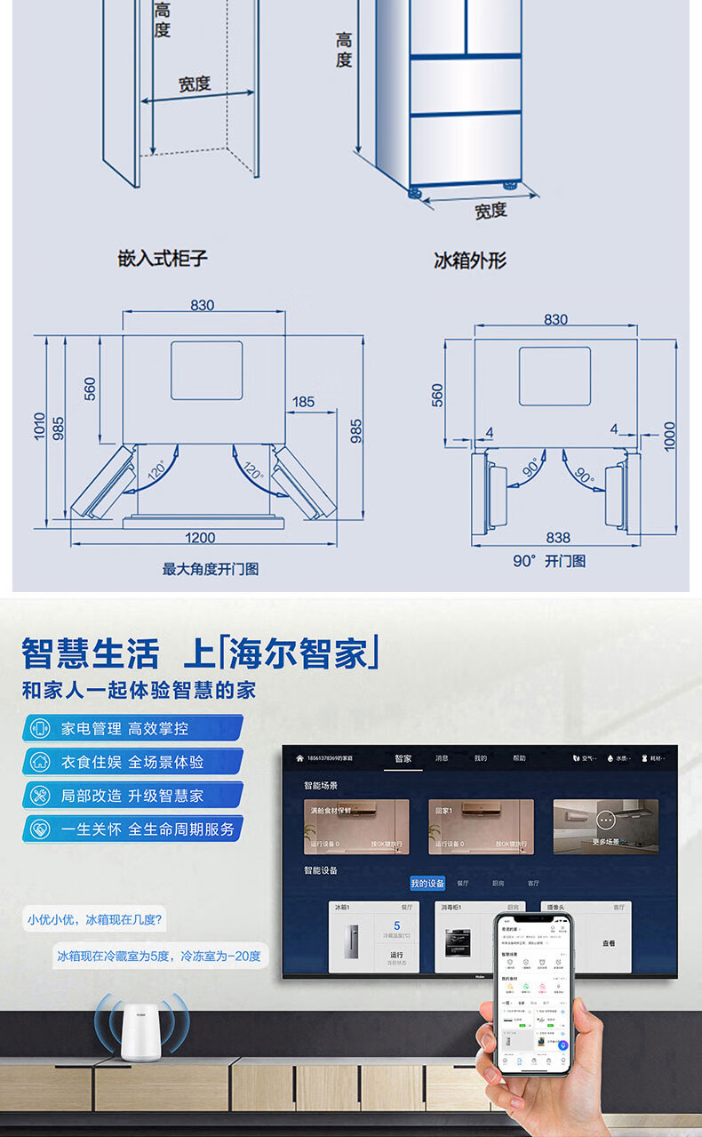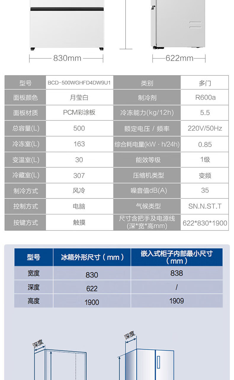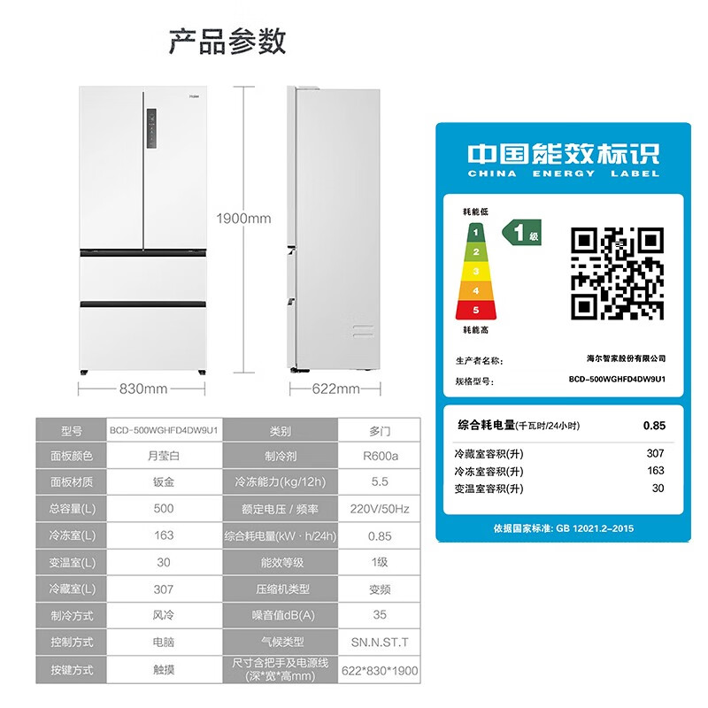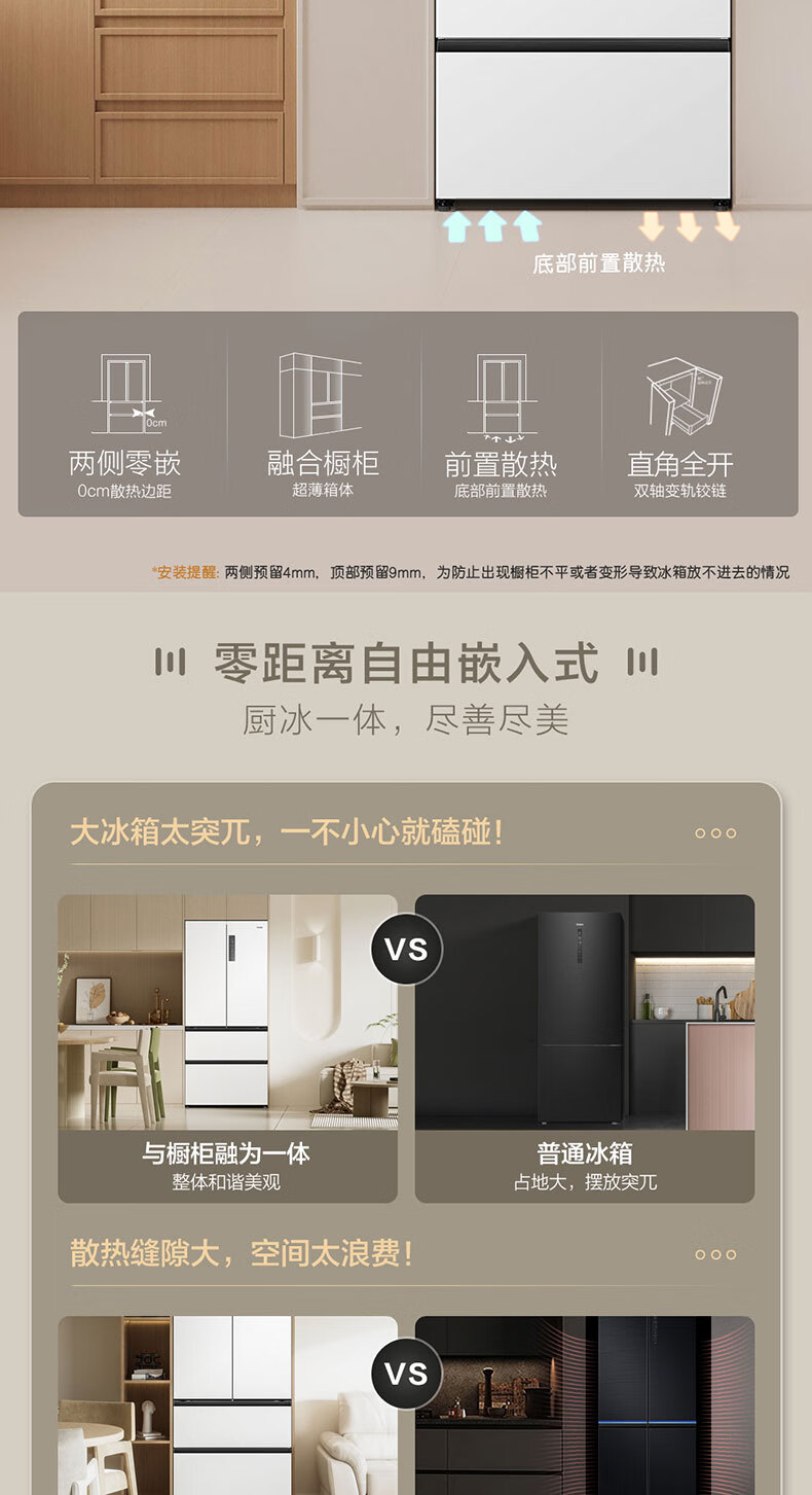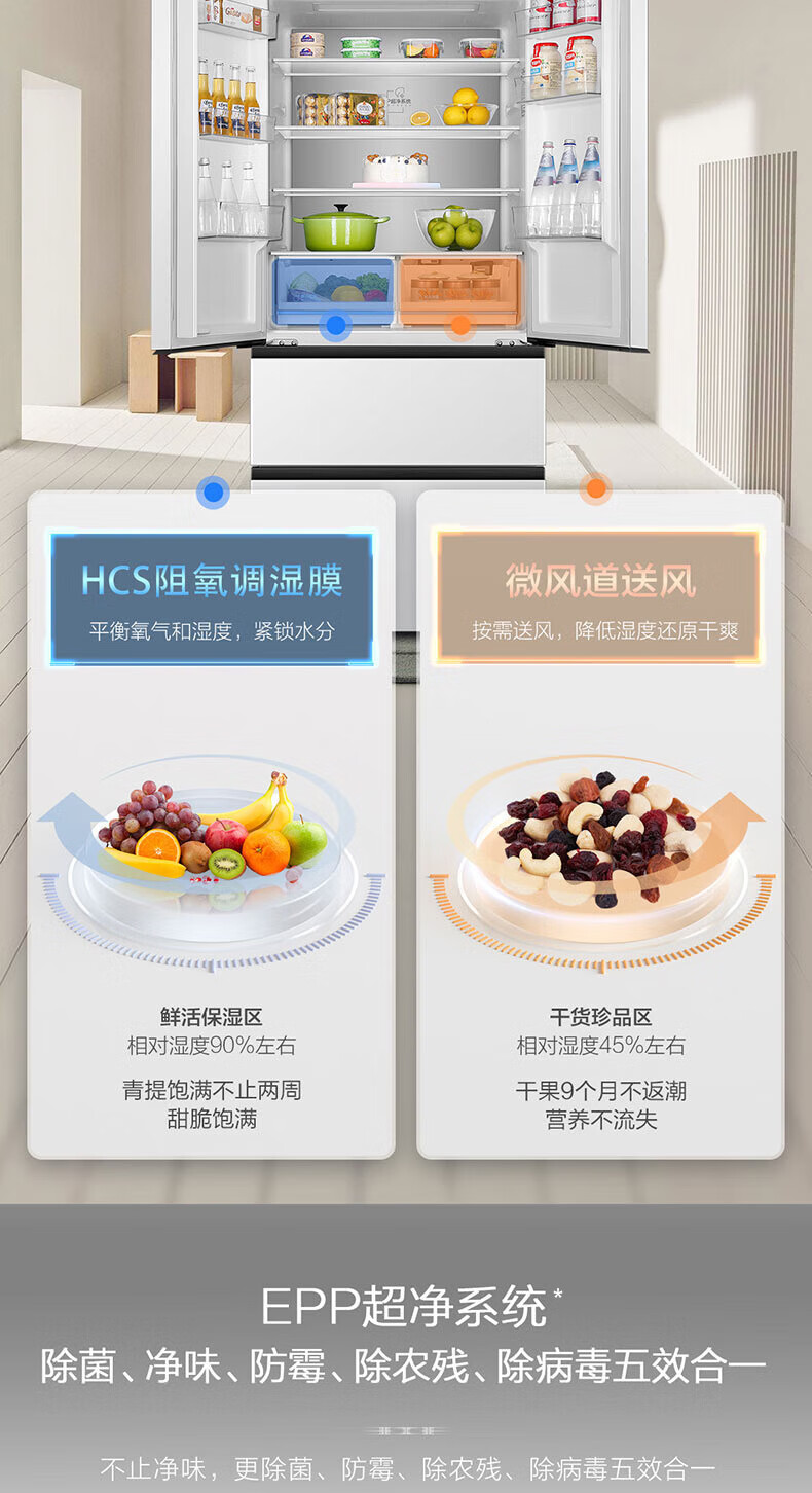 海尔(Haier)【0cm边距】海尔冰箱500升法式多门零距离嵌入式零嵌干湿分储EPP超净家用变频一级能效超薄冰箱