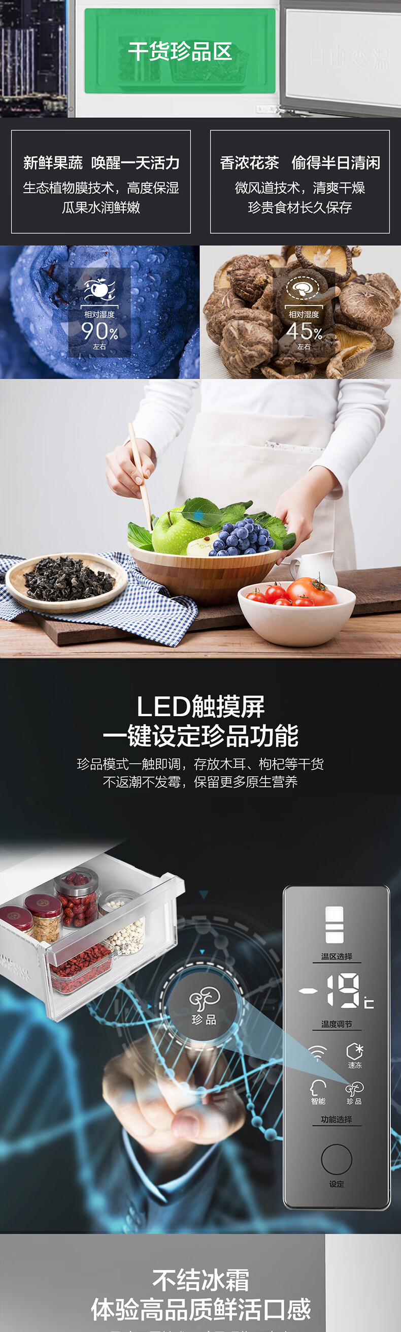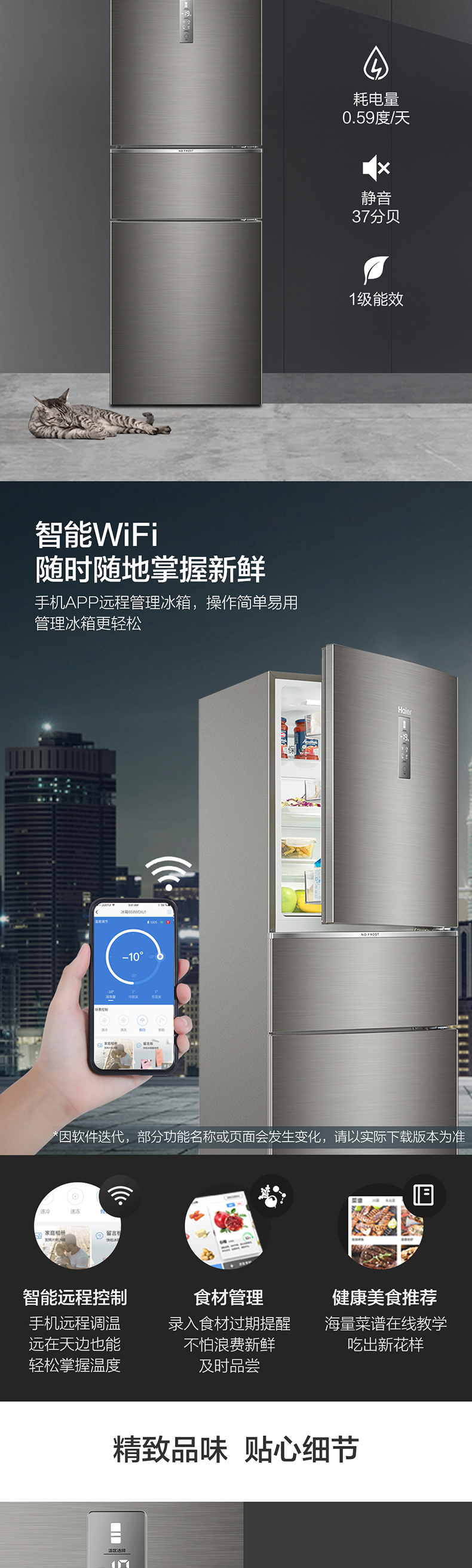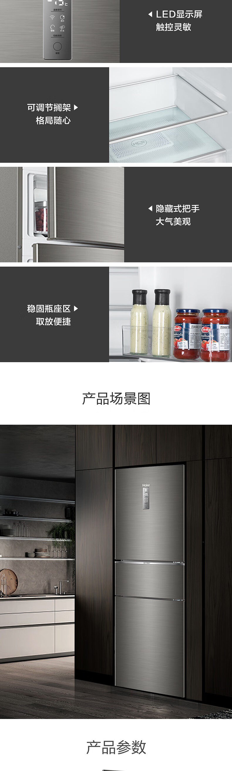 Haier/海尔冰箱三开门253升变频风冷无霜家用电冰箱BCD-253WDPDU1干湿分储/一级能效 匠心工艺 深空灰拉丝外观