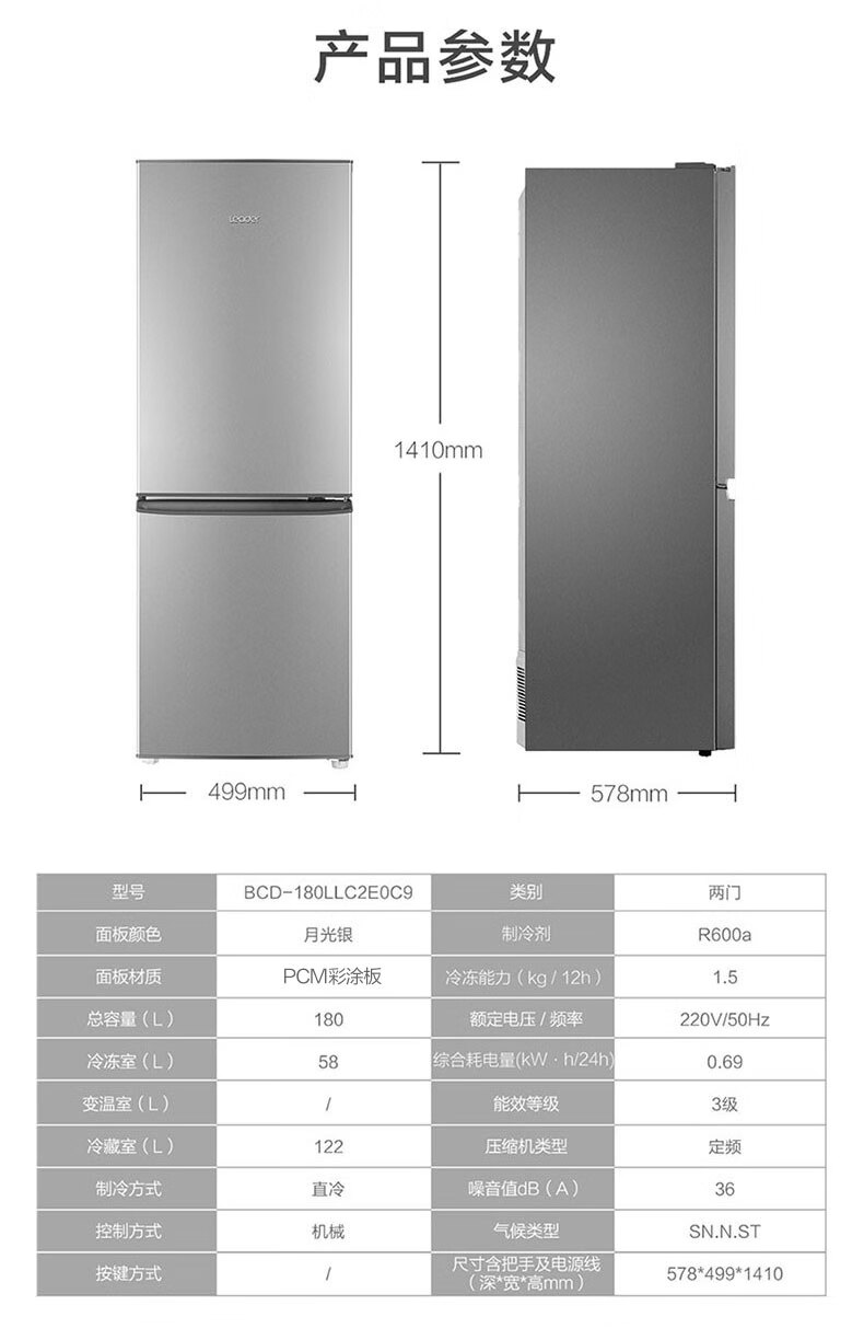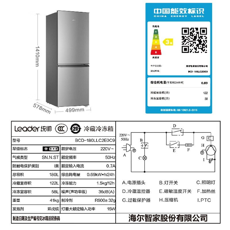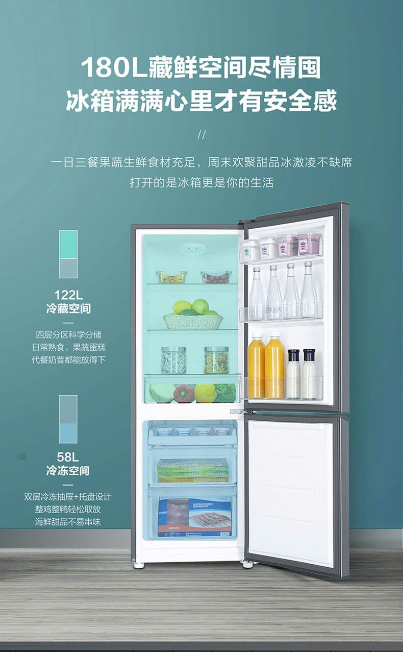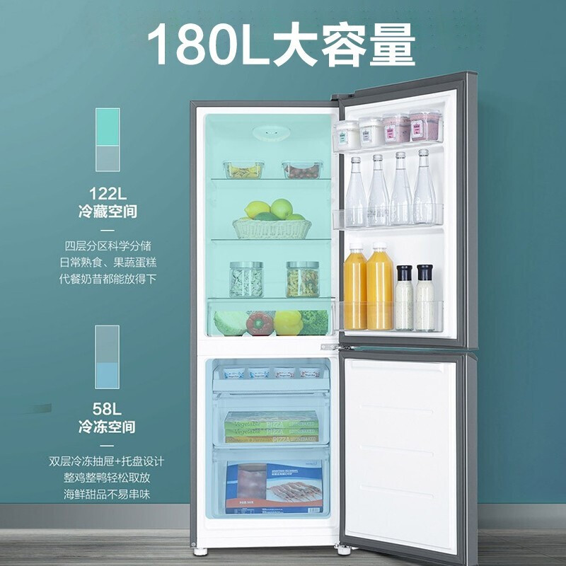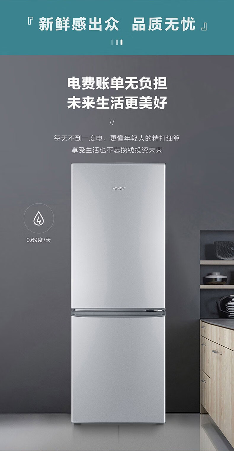 Leader 海尔智家出品冰箱180升冰箱两门双开门家用迷你小型电冰箱小型家用 BCD-180LLC2E0C9