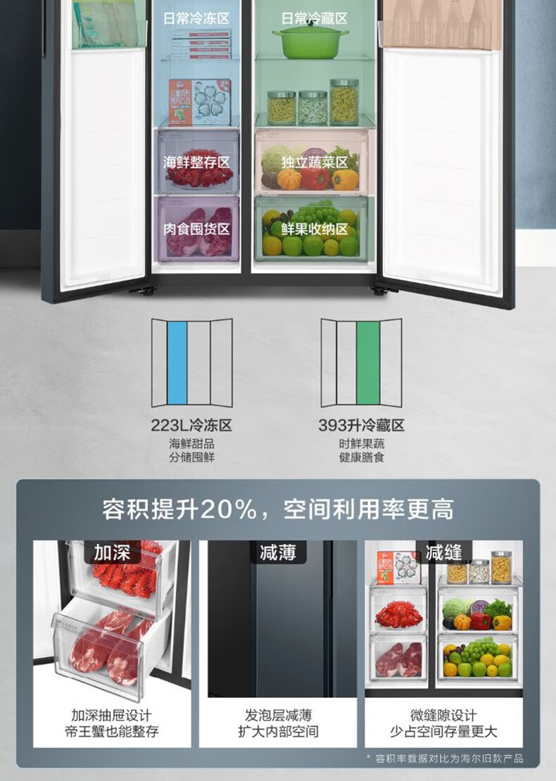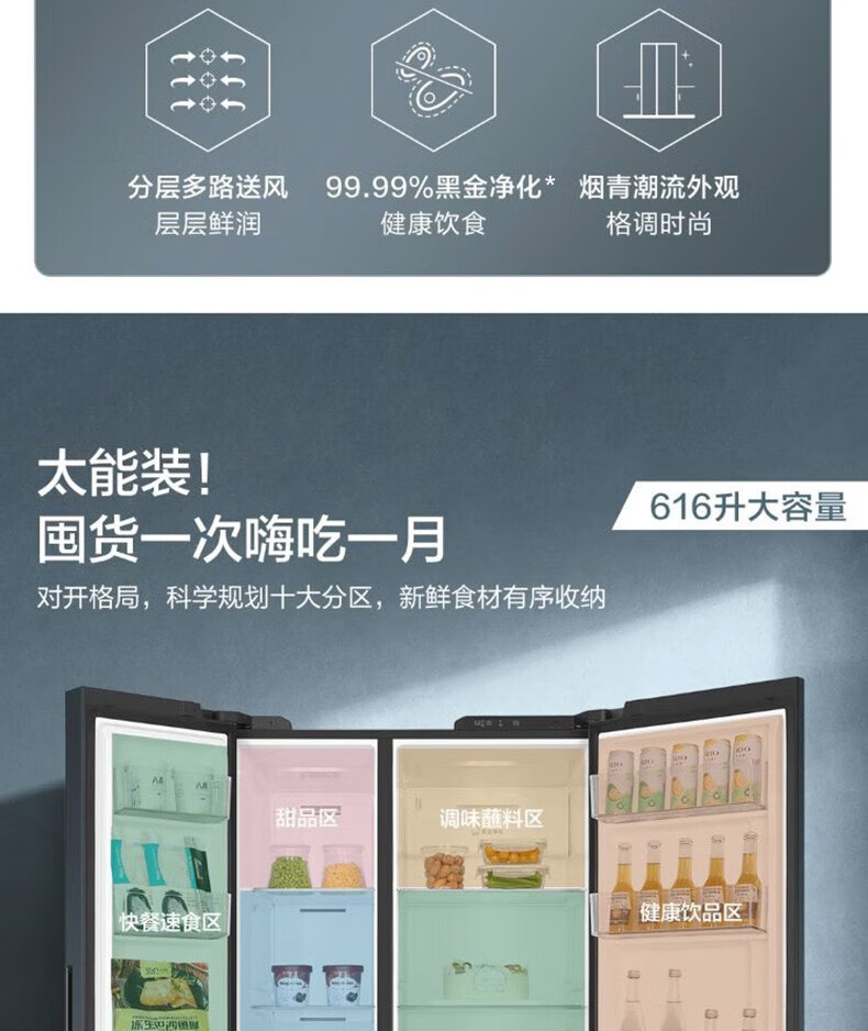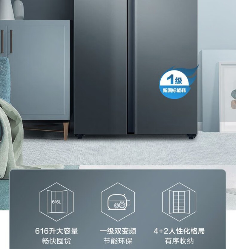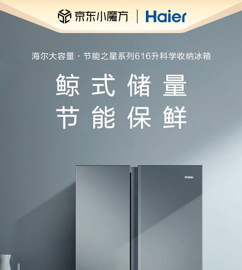 海尔(Haier)新品海尔(Haier)冰箱双开门冰箱616升对开门电冰箱一级变频大容量薄家用冰箱风冷无霜 BCD-616WGHSSEDC9