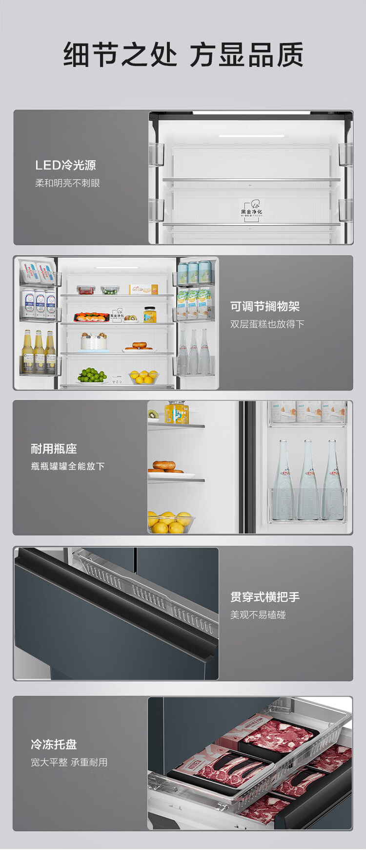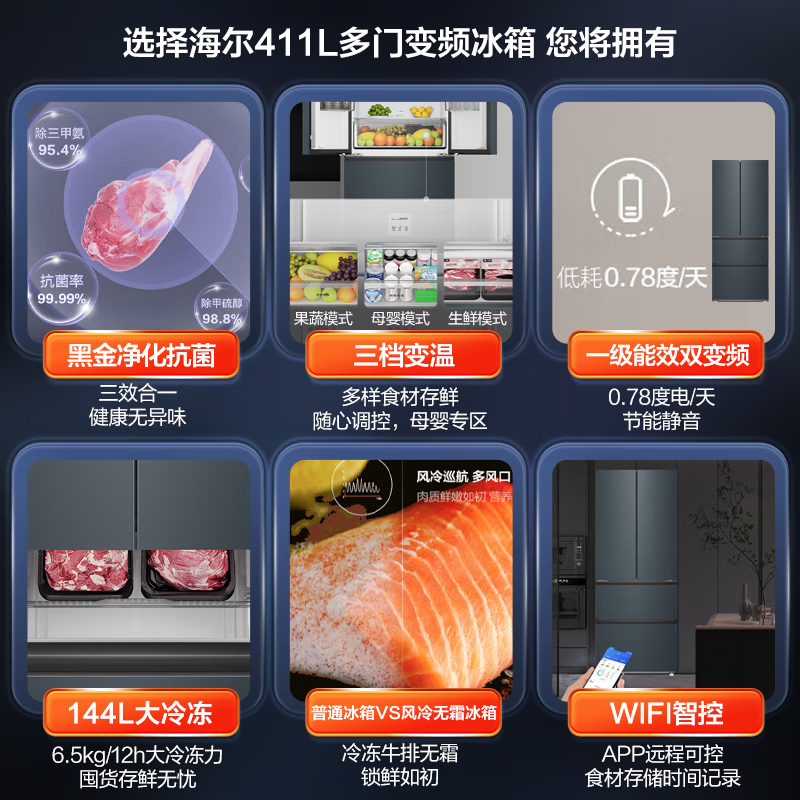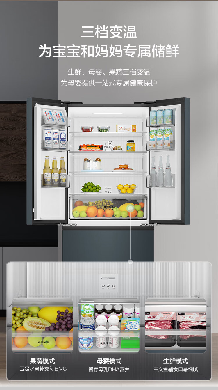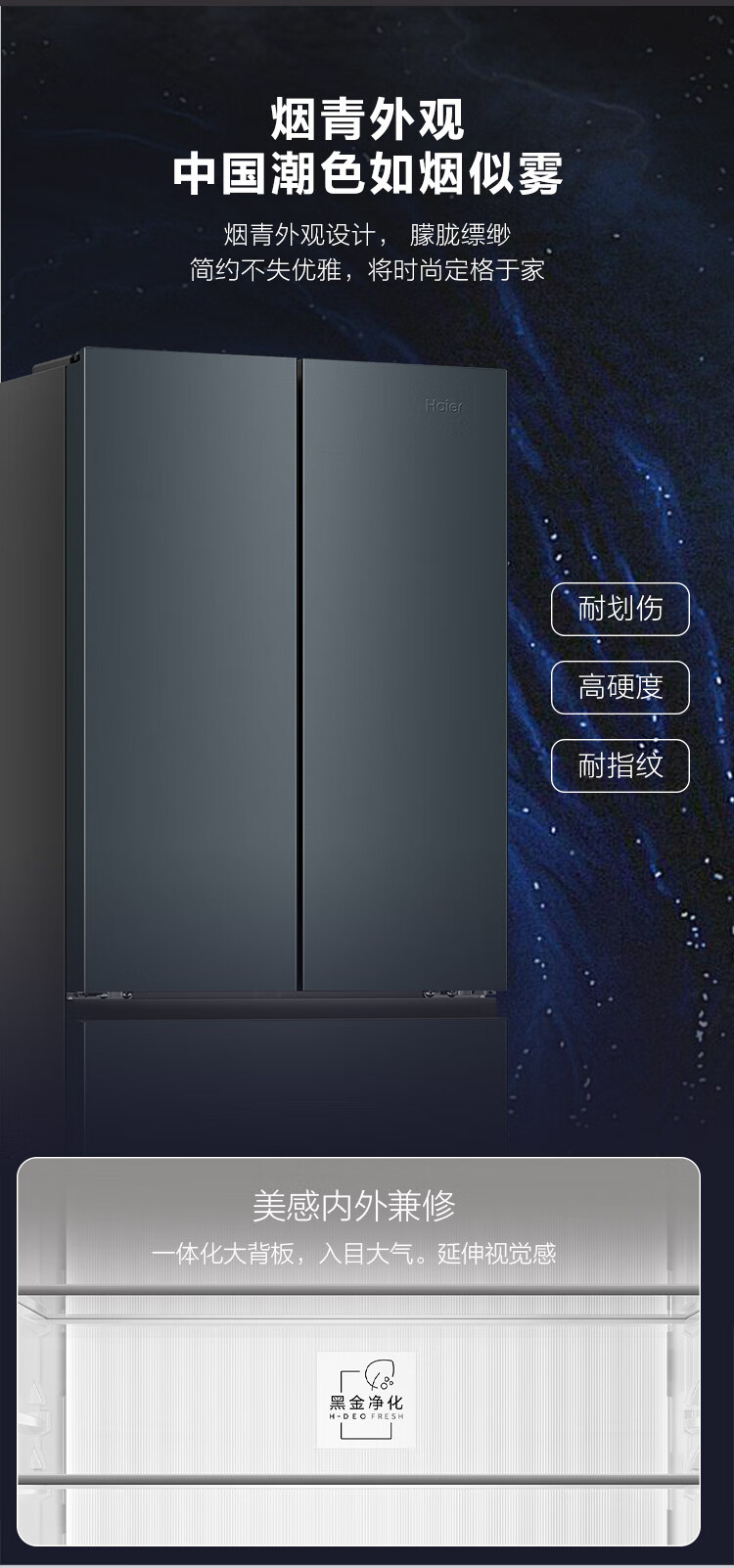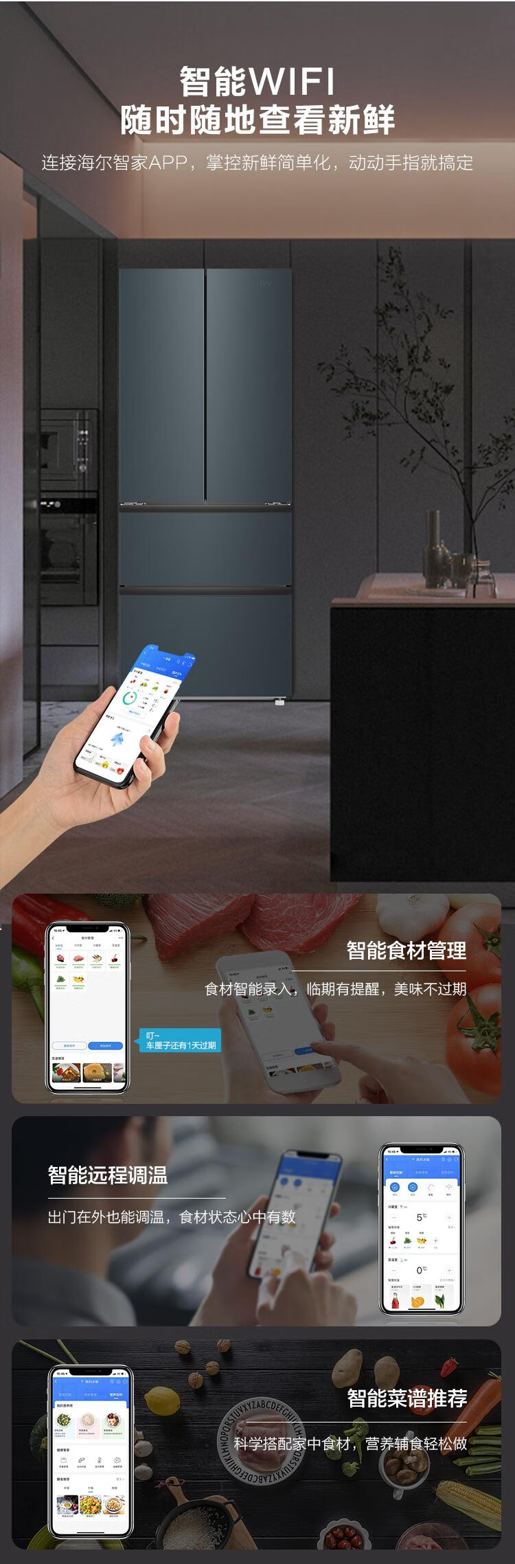 海尔(Haier)海尔冰箱411升法式多门冰箱大容量四开门一级变频风冷无霜家用电冰箱超薄嵌入冰箱 BCD-411WLHFD7DC9U1