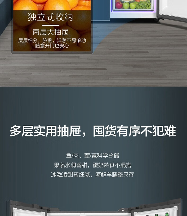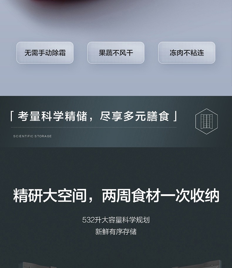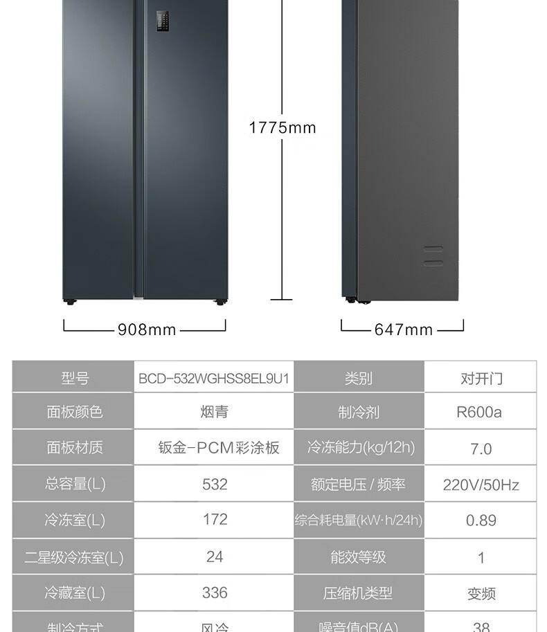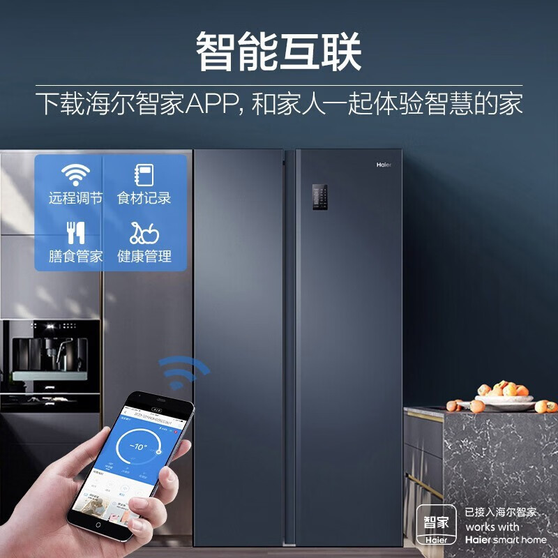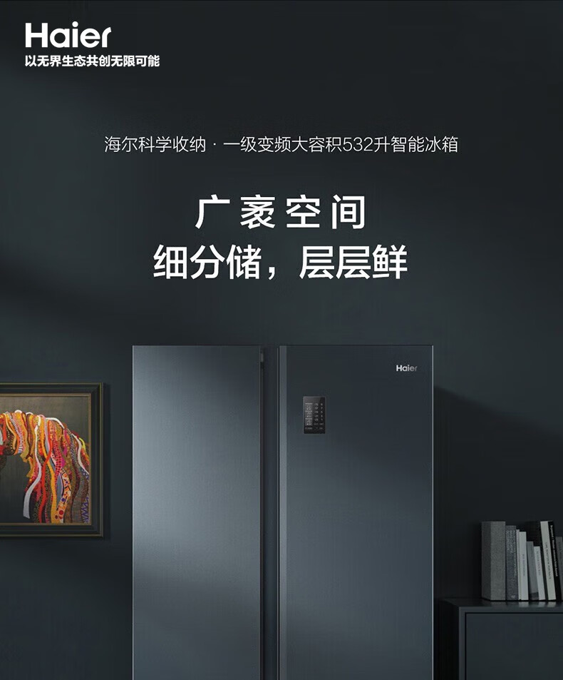 海尔(Haier)大容量囤货海尔(Haier)冰箱京东小家双开门冰箱532升电冰箱一级变频大超薄家用冰箱风冷无霜 BCD-532WGHSS8EL9U1