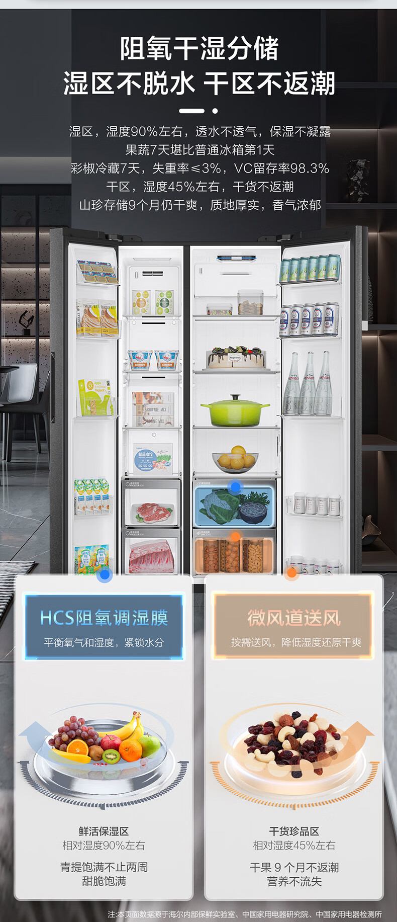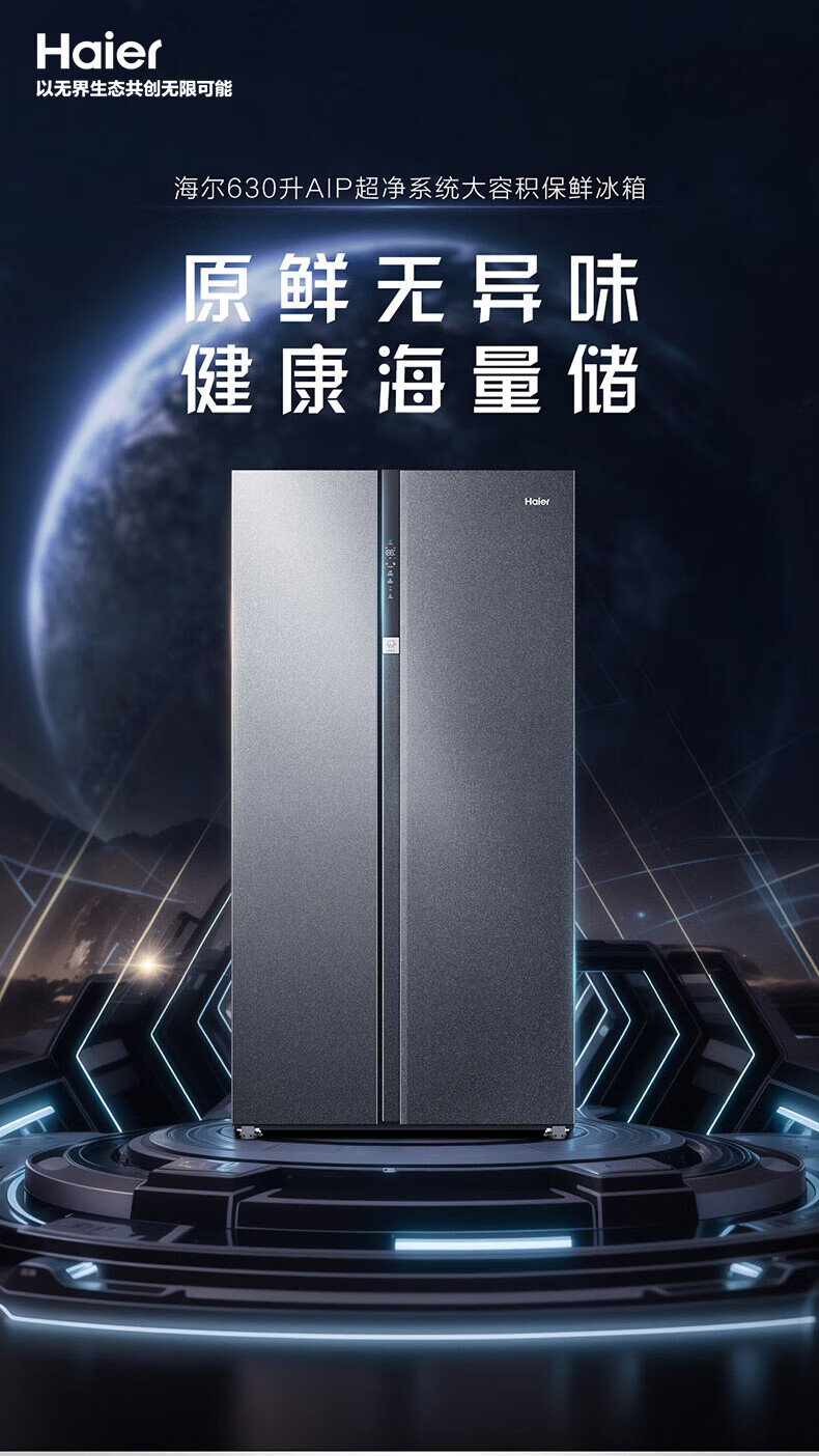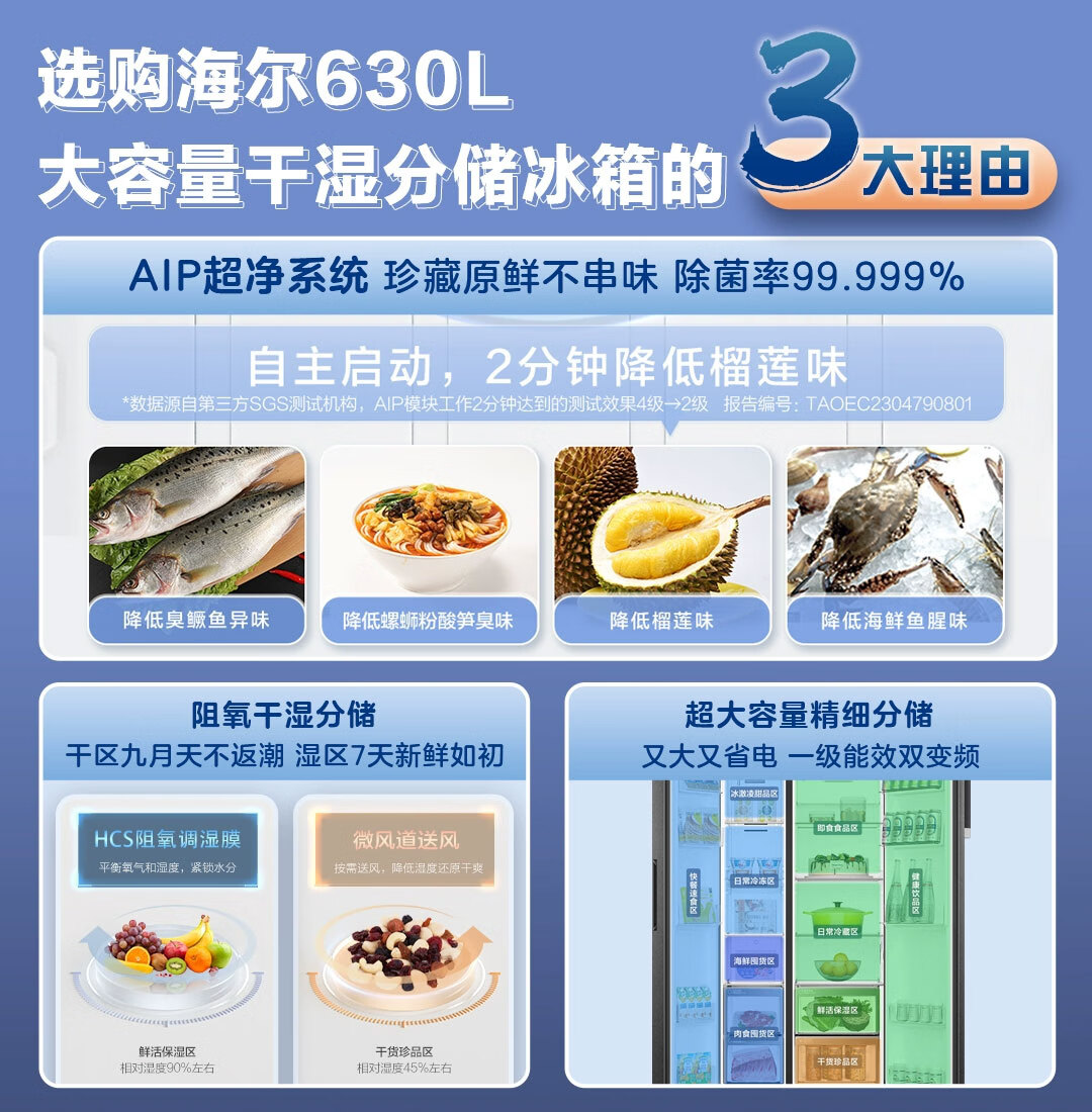 海尔(Haier)海尔冰箱630升双开门冰箱AIP超净系统大容积保鲜冰箱对开门干湿分储一级能效风冷无霜家用电冰箱 BCD-630WGHSS95S9U1