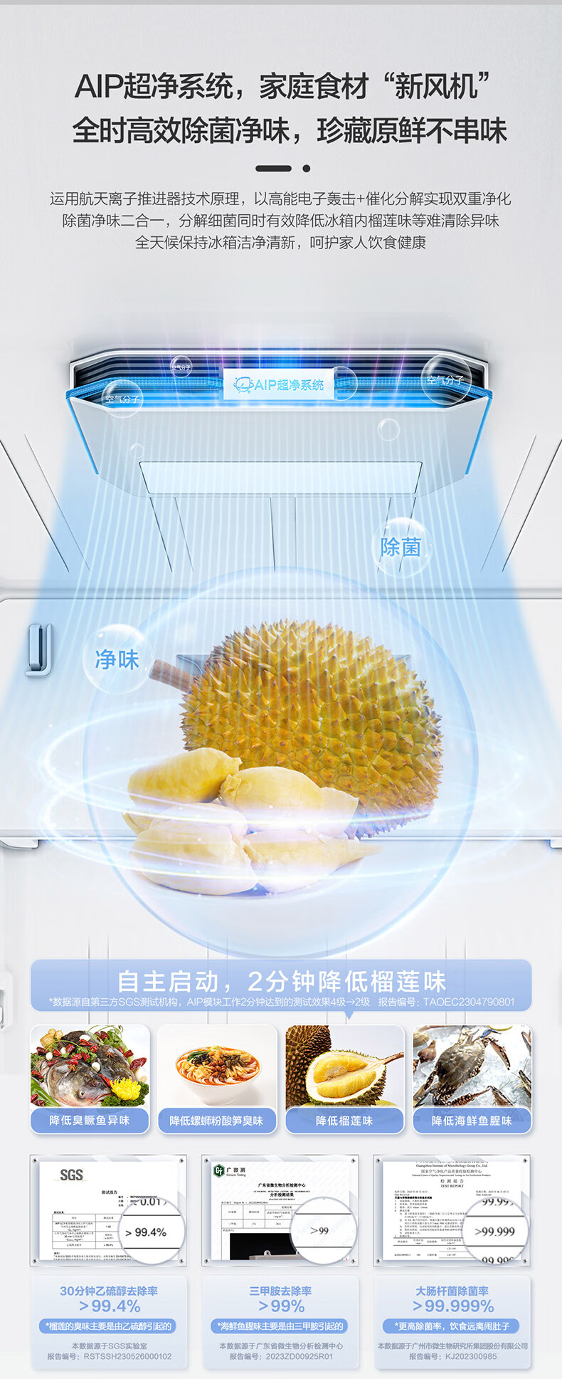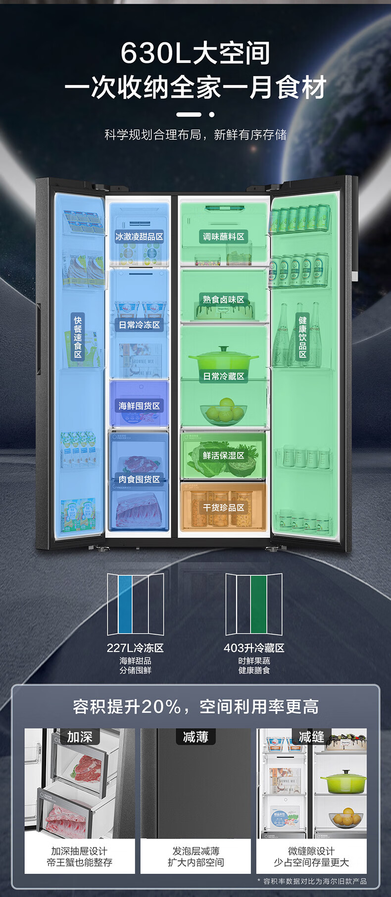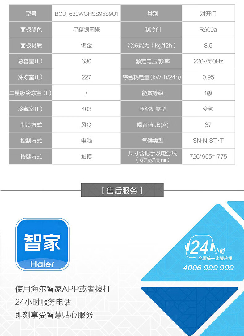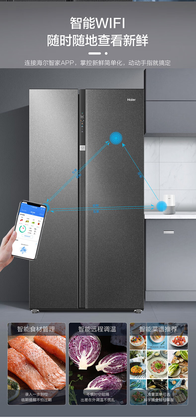 海尔(Haier)海尔冰箱630升双开门冰箱AIP超净系统大容积保鲜冰箱对开门干湿分储一级能效风冷无霜家用电冰箱 BCD-630WGHSS95S9U1