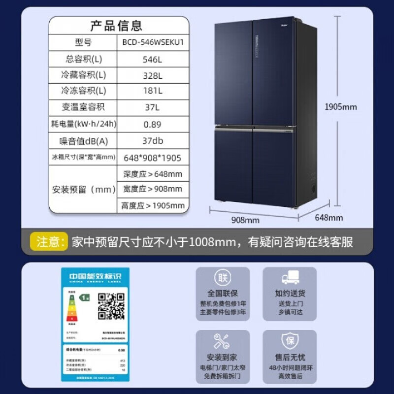 宽908mm;深648mm;高1905mm