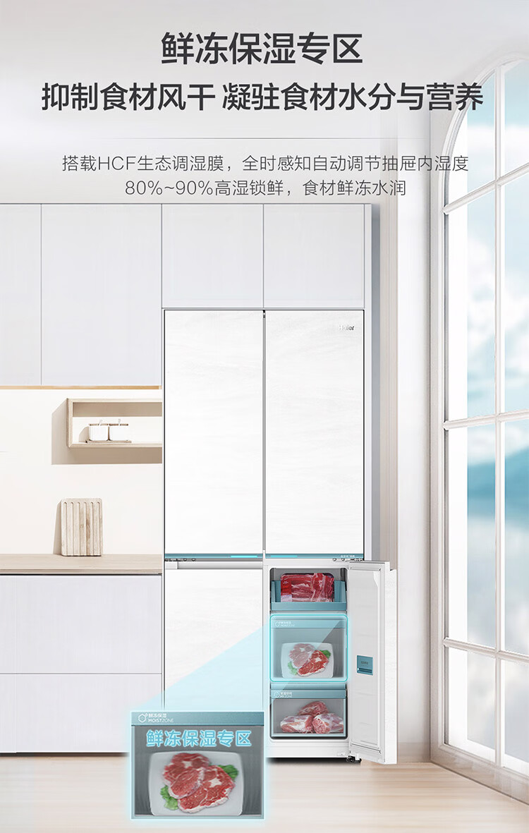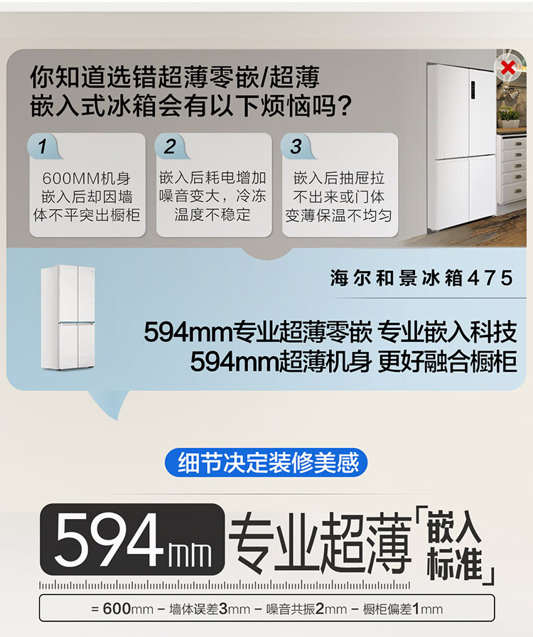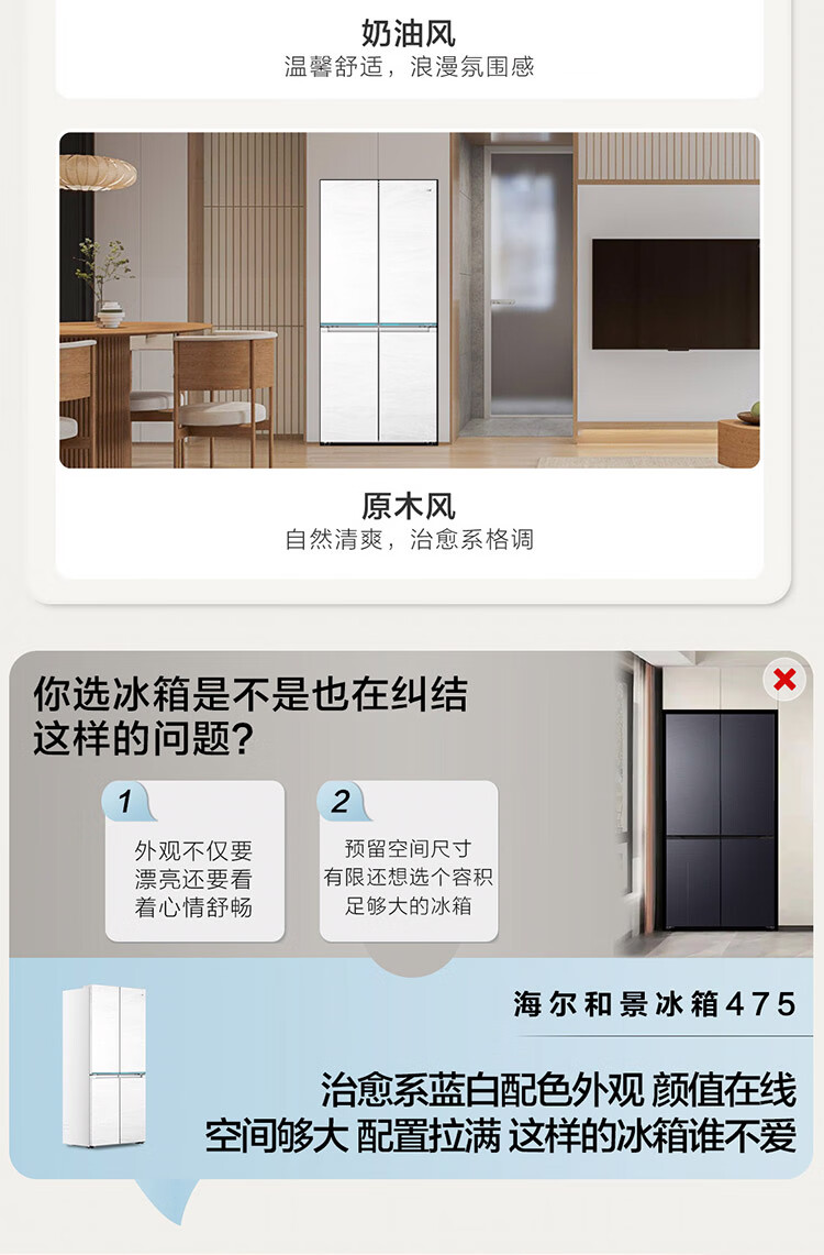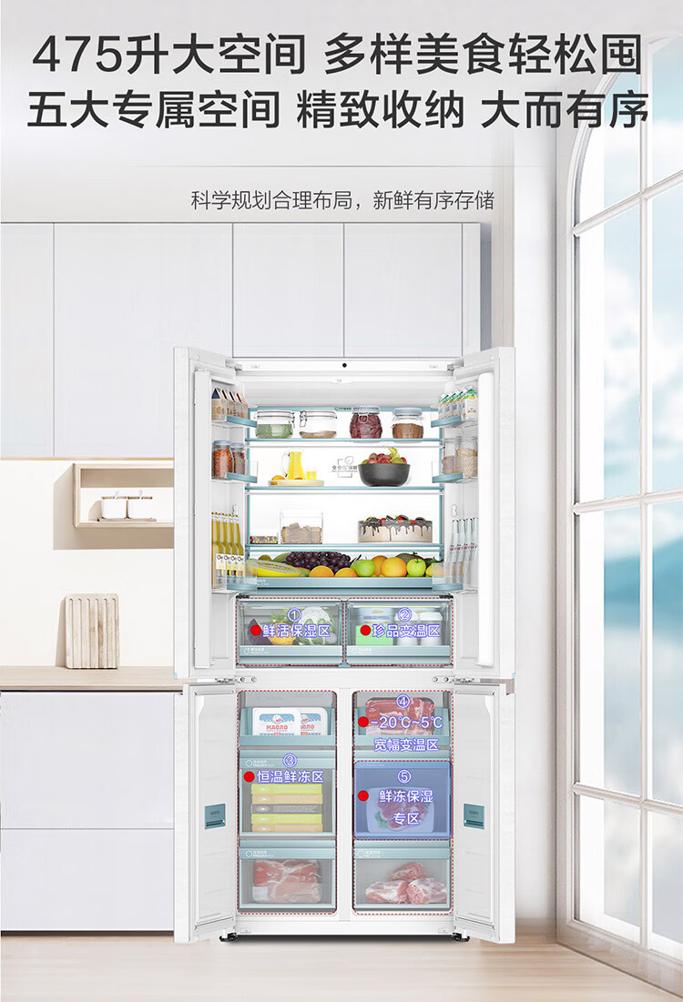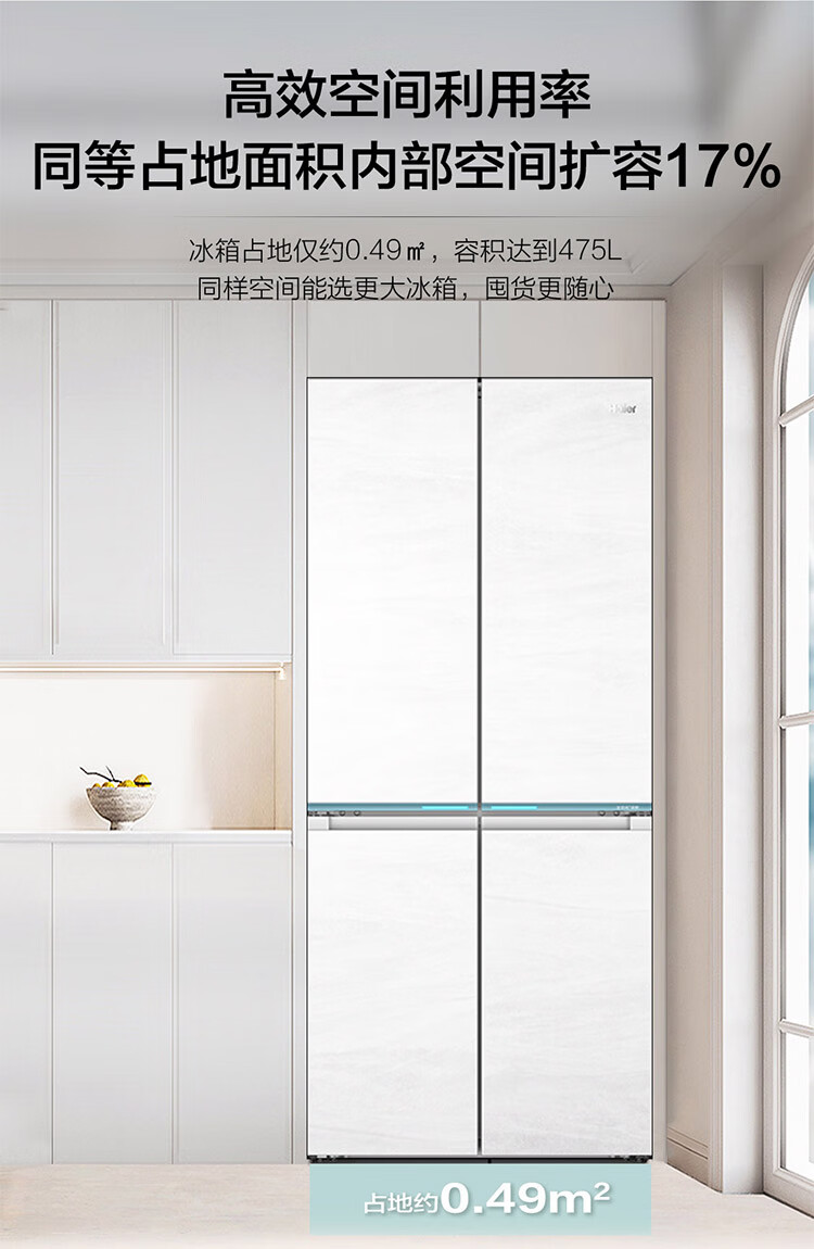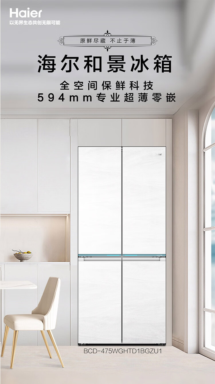 海尔(Haier)【0cm嵌入】海尔冰箱和景475L超薄零嵌十字对开四开门全空间保鲜家用电冰箱大容量前置散热冰箱