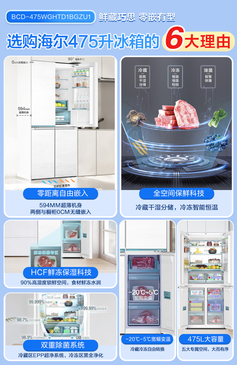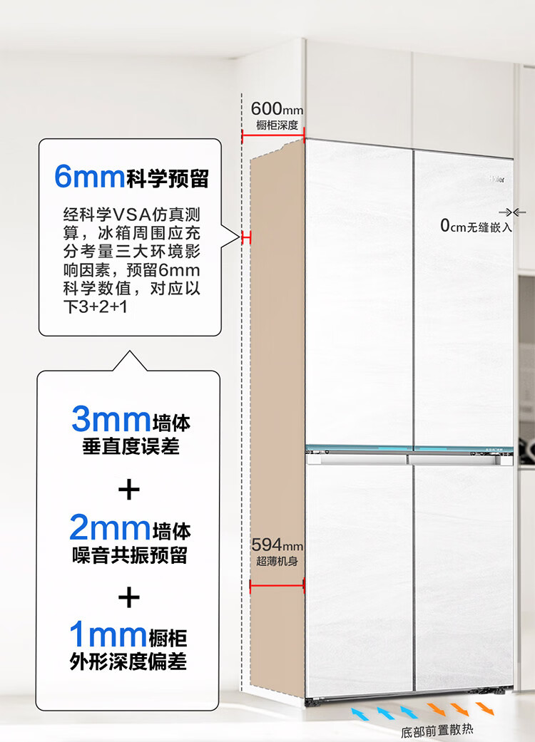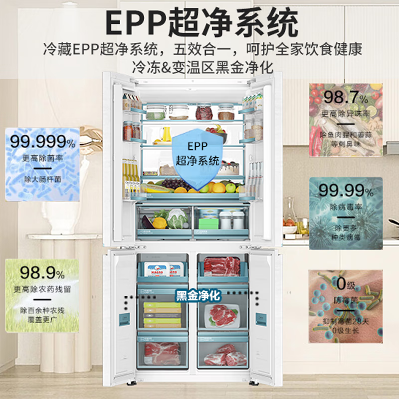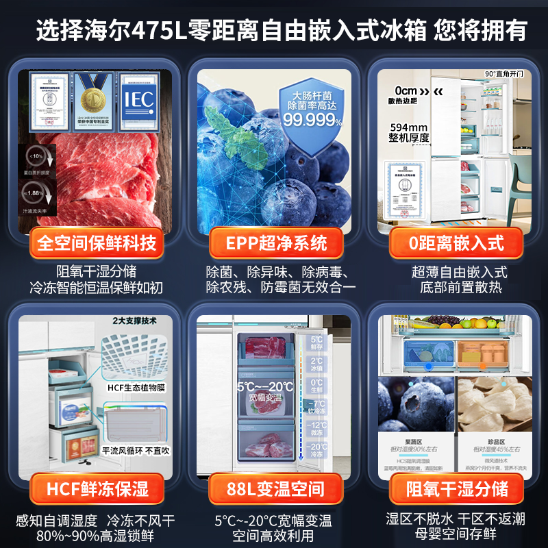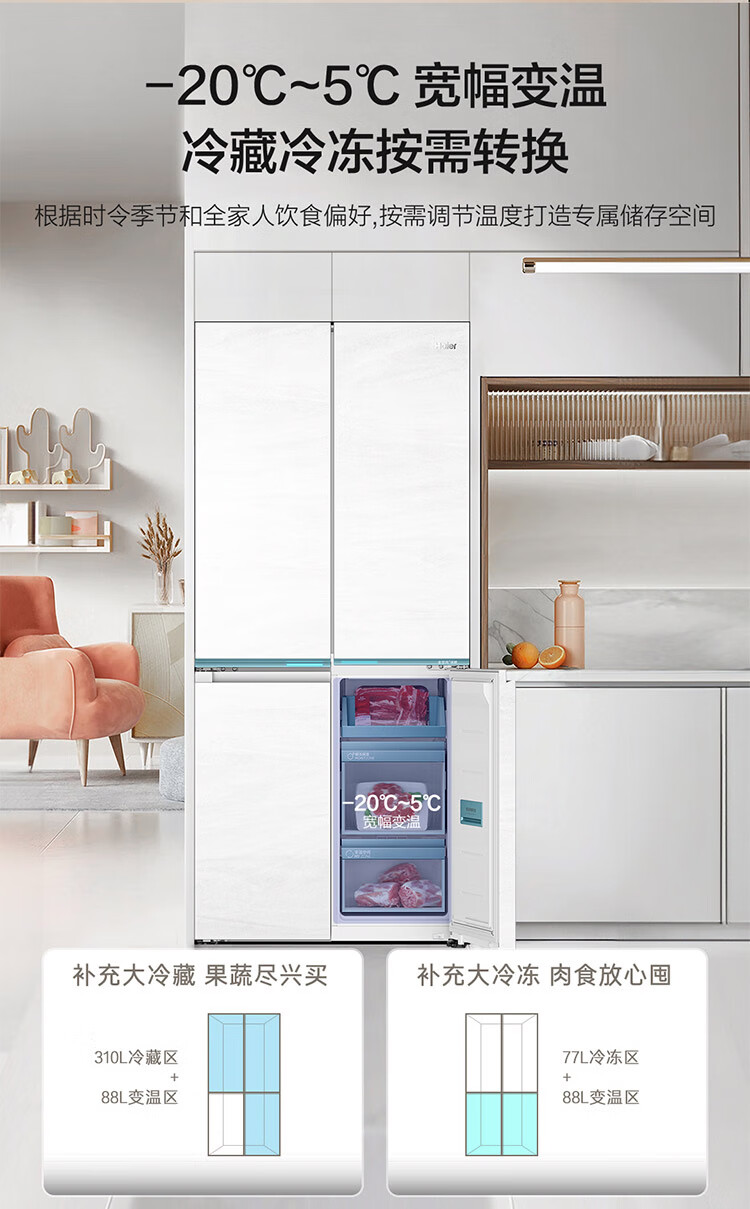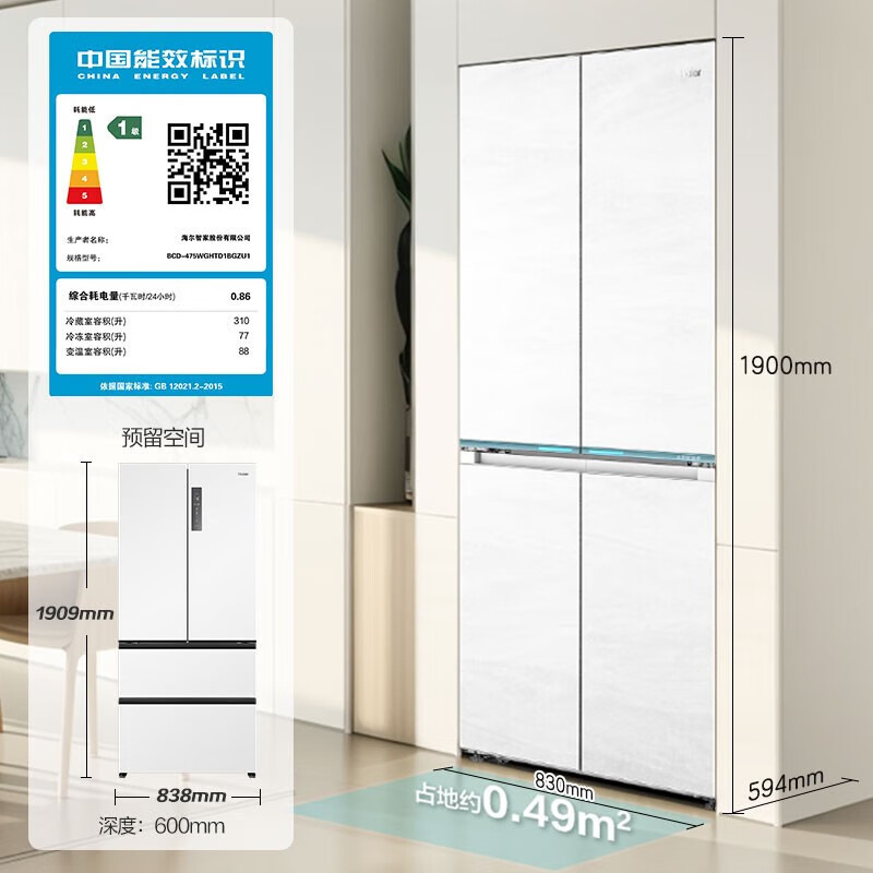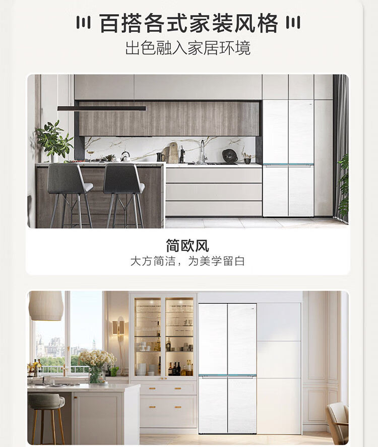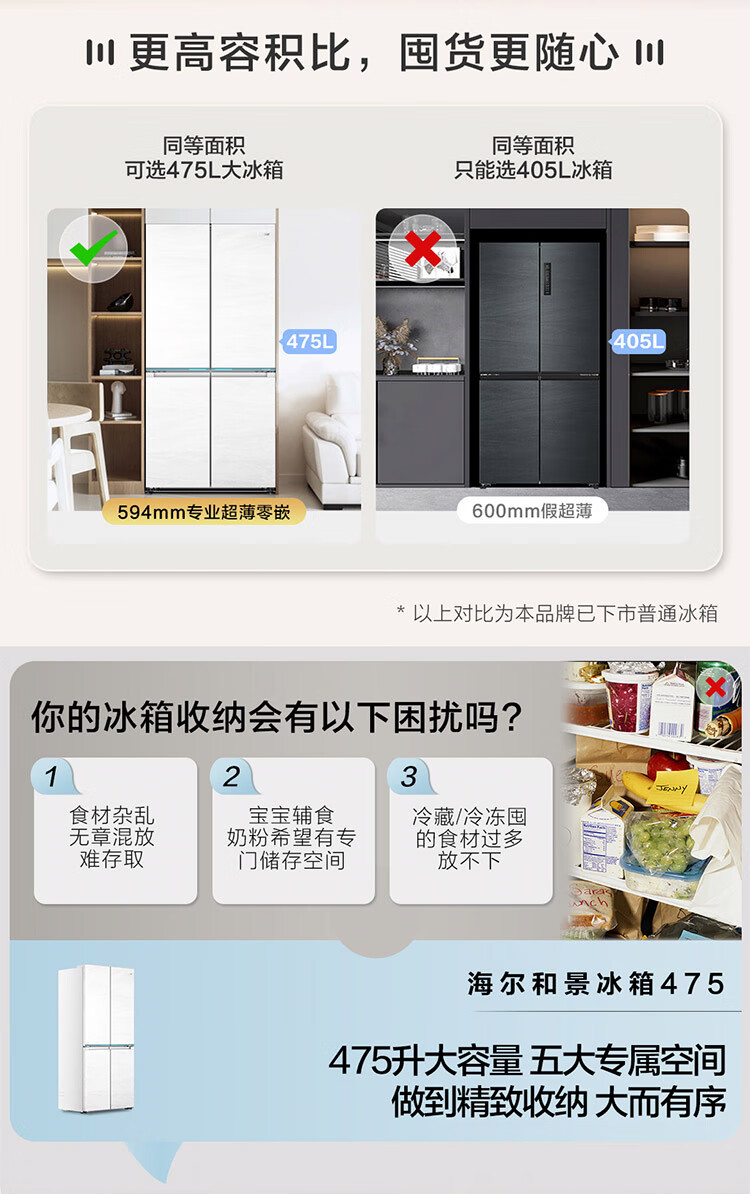 海尔(Haier)【0cm嵌入】海尔冰箱和景475L超薄零嵌十字对开四开门全空间保鲜家用电冰箱大容量前置散热冰箱