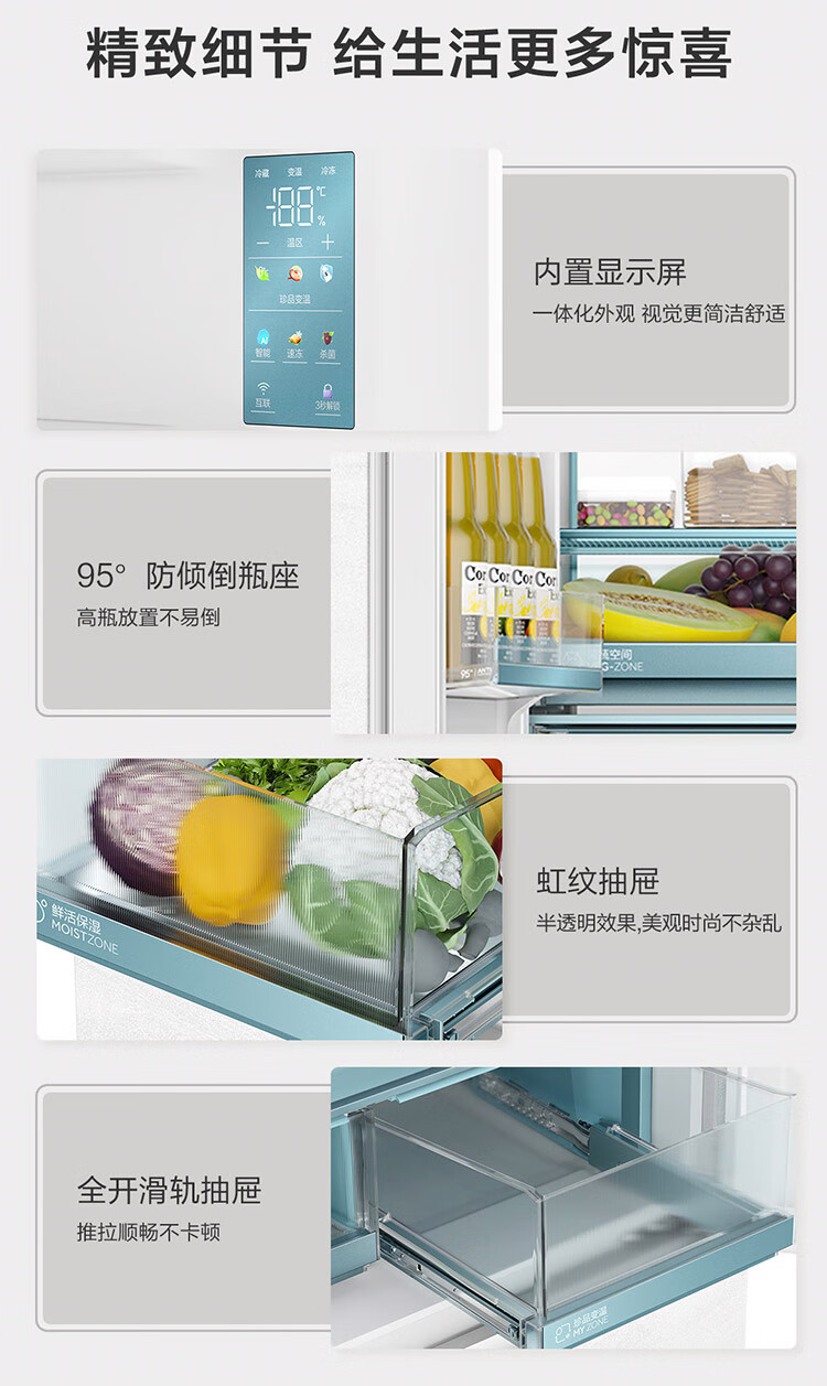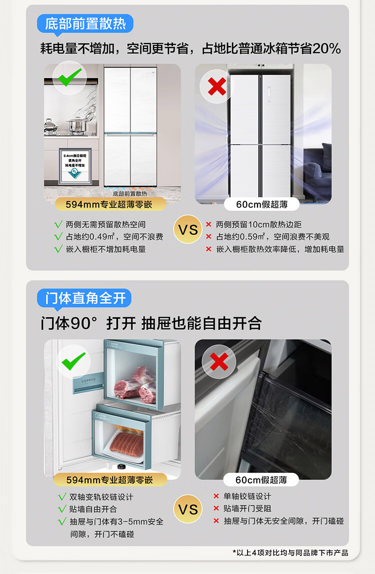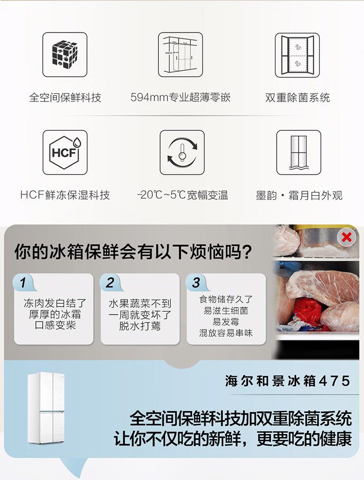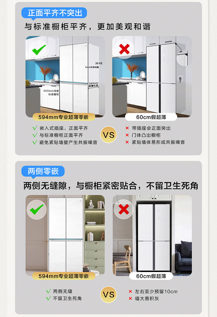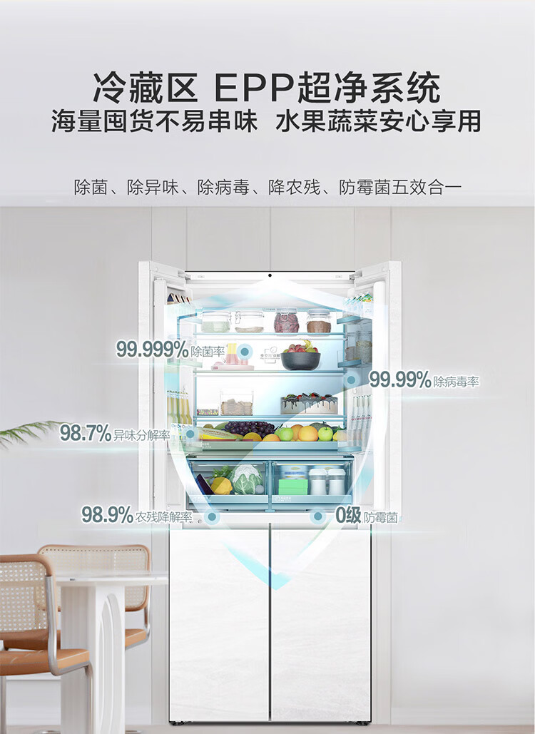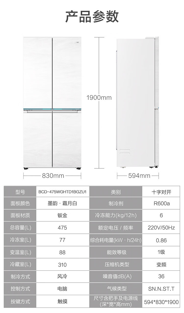 海尔(Haier)【0cm嵌入】海尔冰箱和景475L超薄零嵌十字对开四开门全空间保鲜家用电冰箱大容量前置散热冰箱