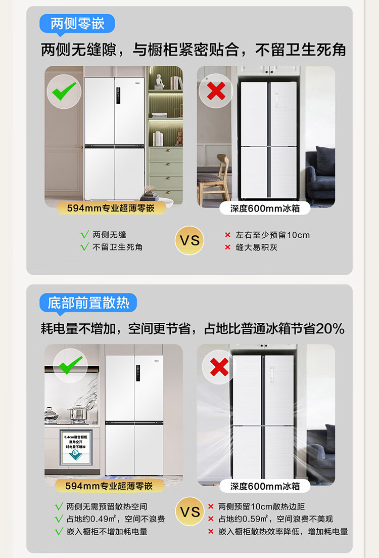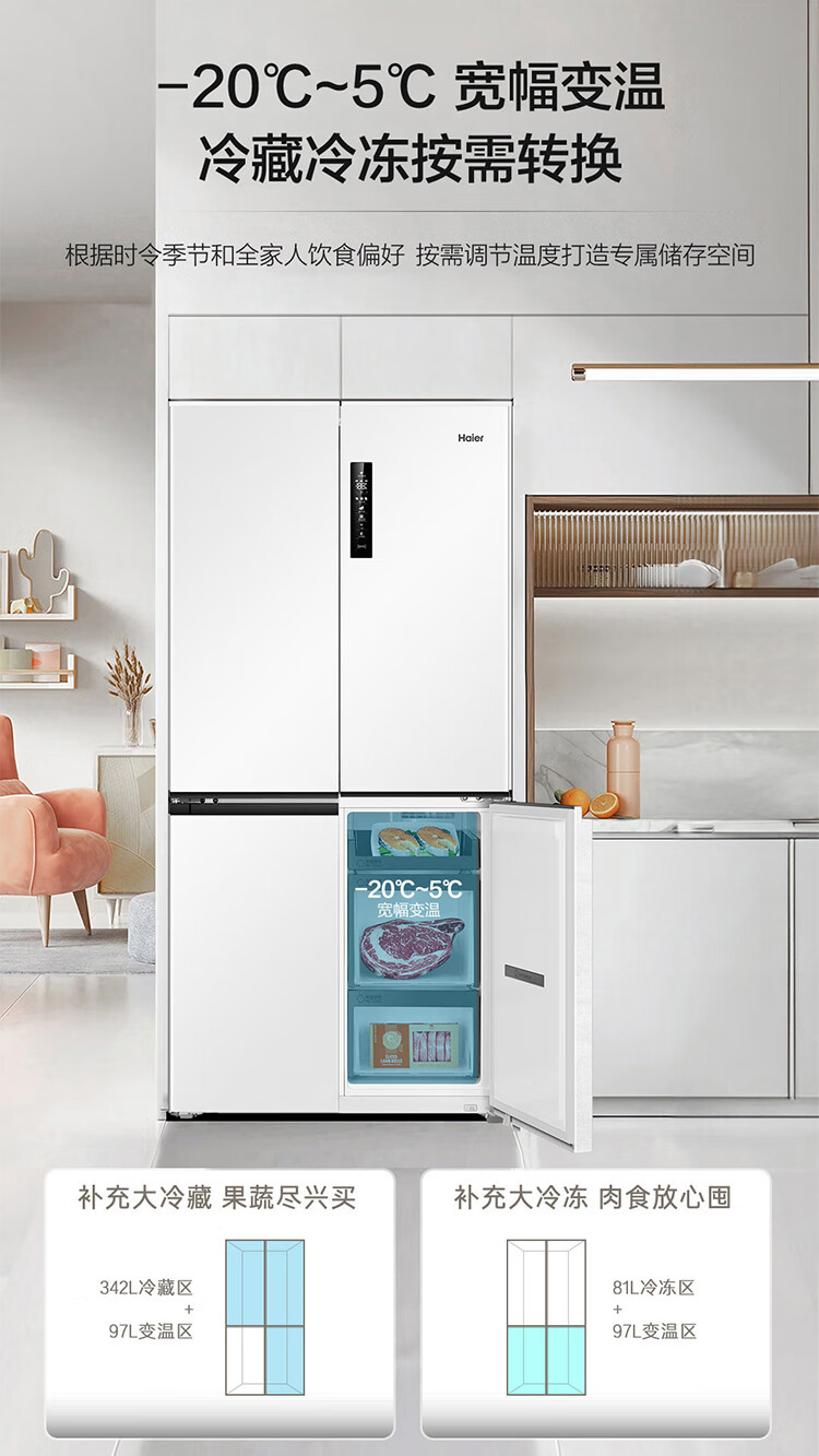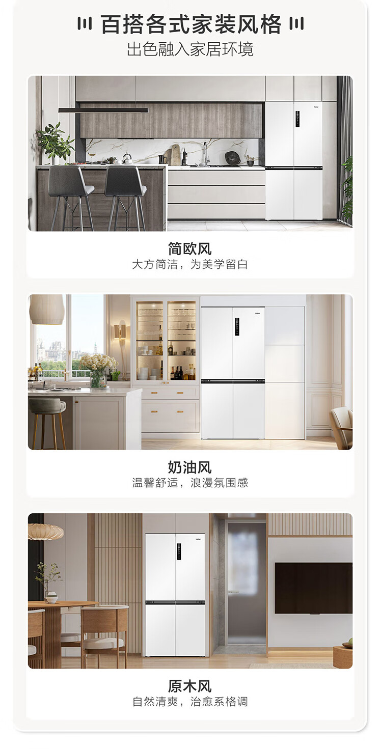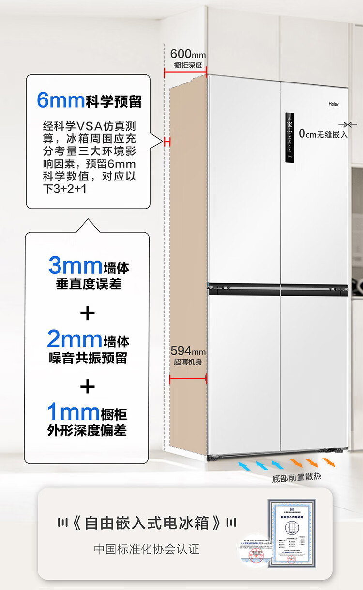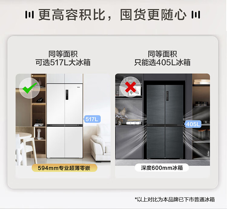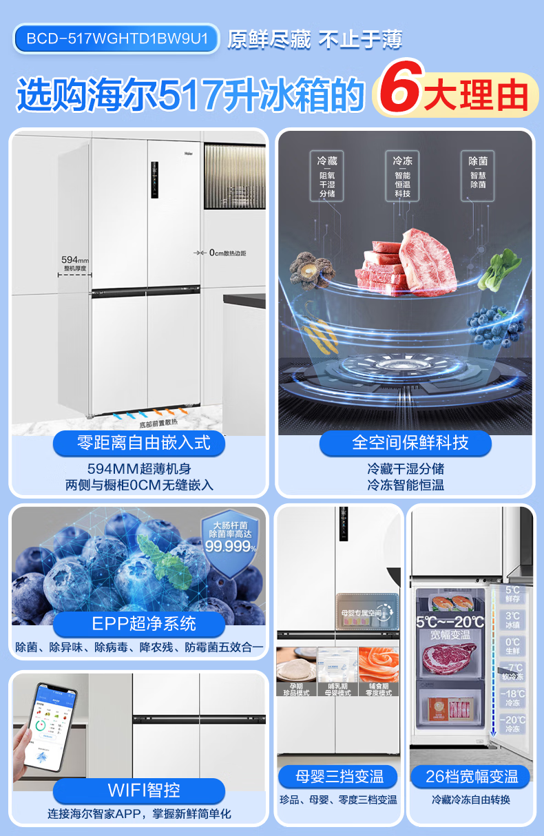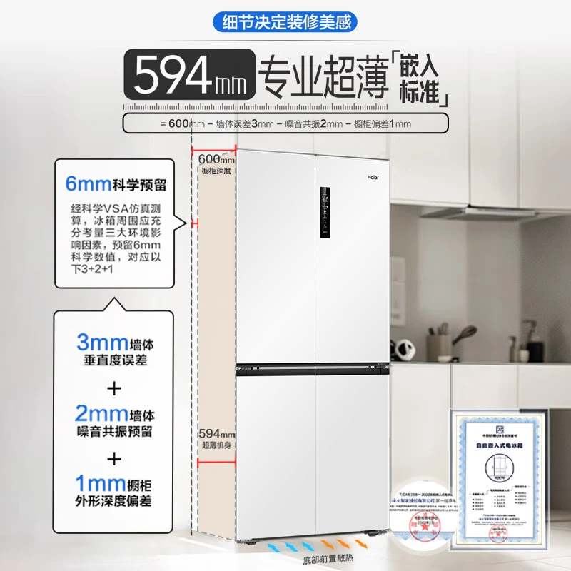 海尔(Haier)0cm边距海尔和景冰箱517升十字门超薄零距离自由嵌入式冰箱全空间保鲜EPP超净干湿分储区月莹白