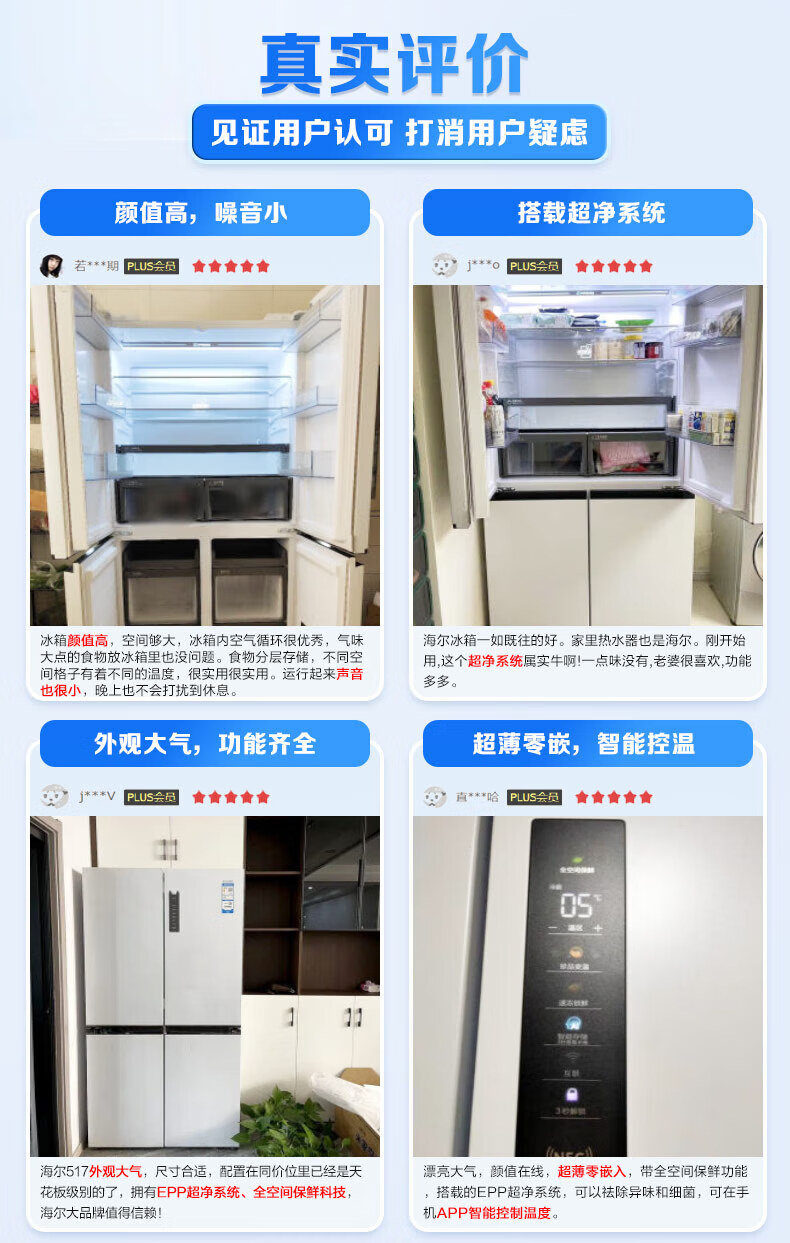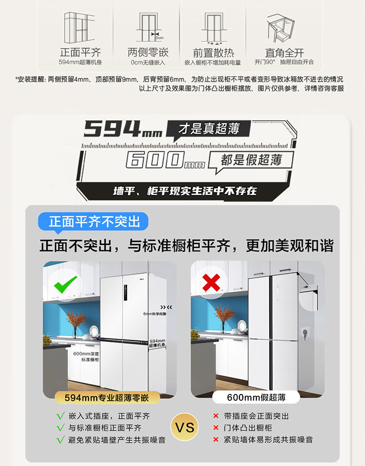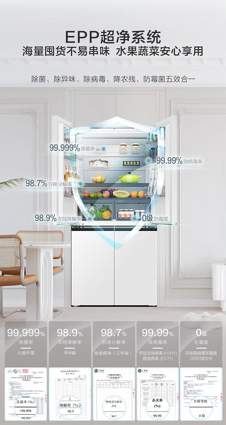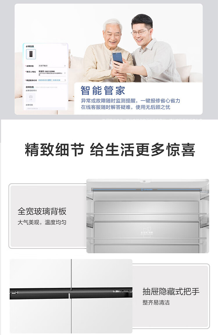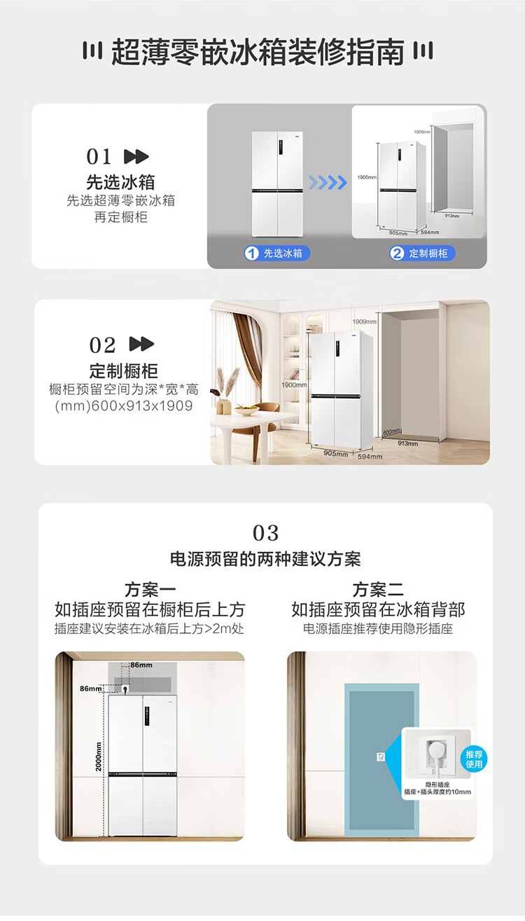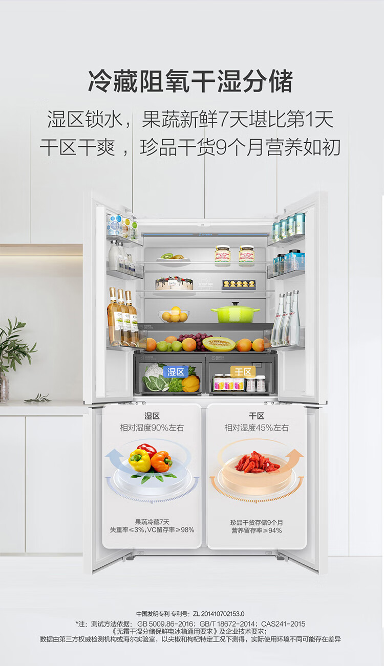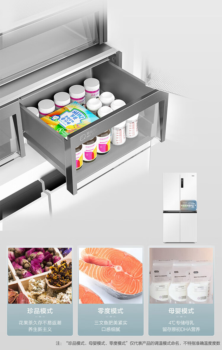 海尔(Haier)0cm边距海尔和景冰箱517升十字门超薄零距离自由嵌入式冰箱全空间保鲜EPP超净干湿分储区月莹白