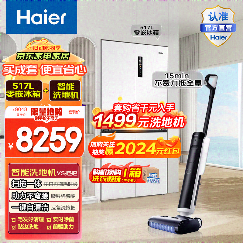 套装517L零嵌冰箱+A500洗地机