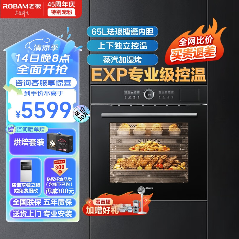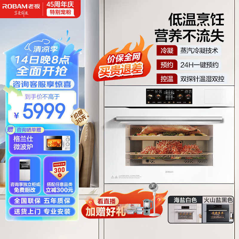 老板(Robam)盐系G1火山盐黑蒸烤箱一体机嵌入式彩屏EXP专业控温蒸烤炸焗家用55L搪瓷蒸箱自清洁保温箱C90D-G1