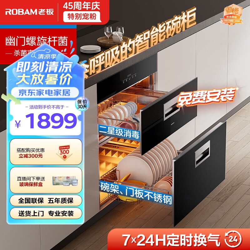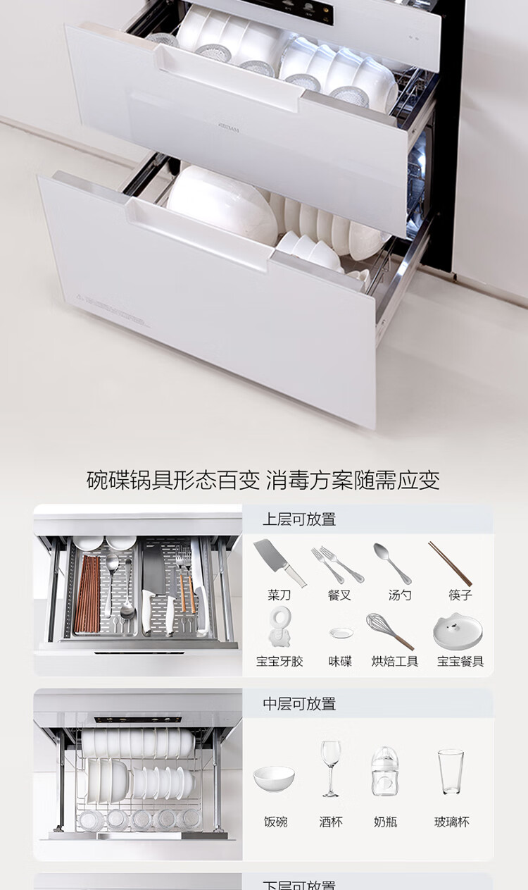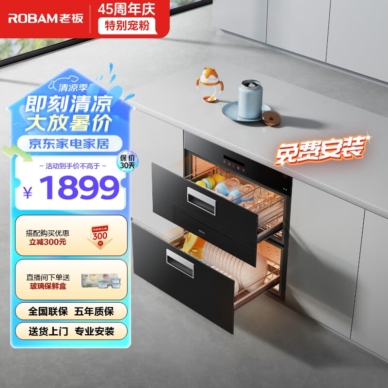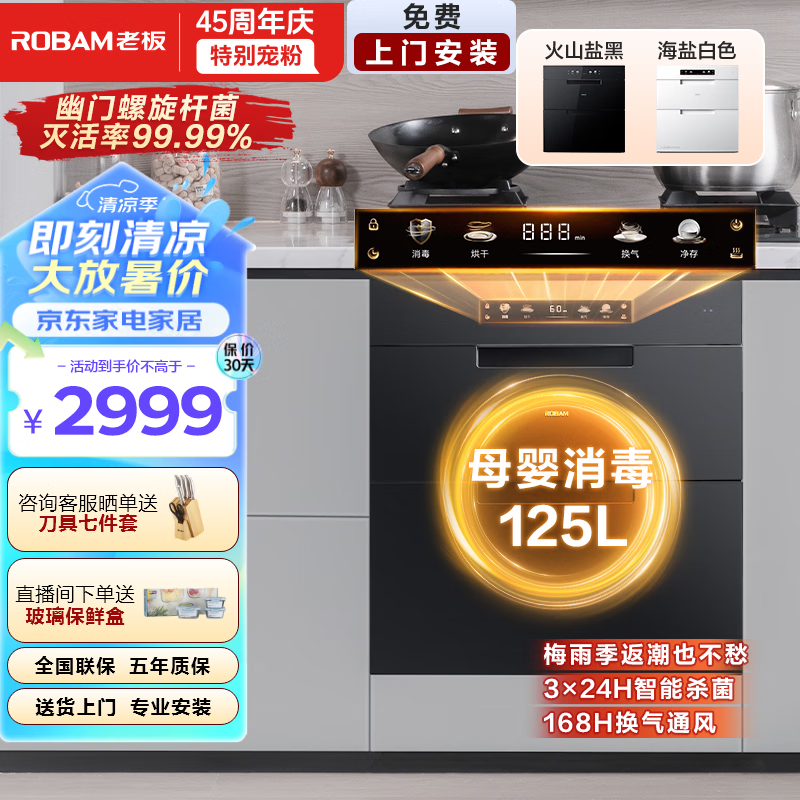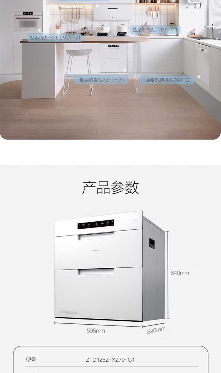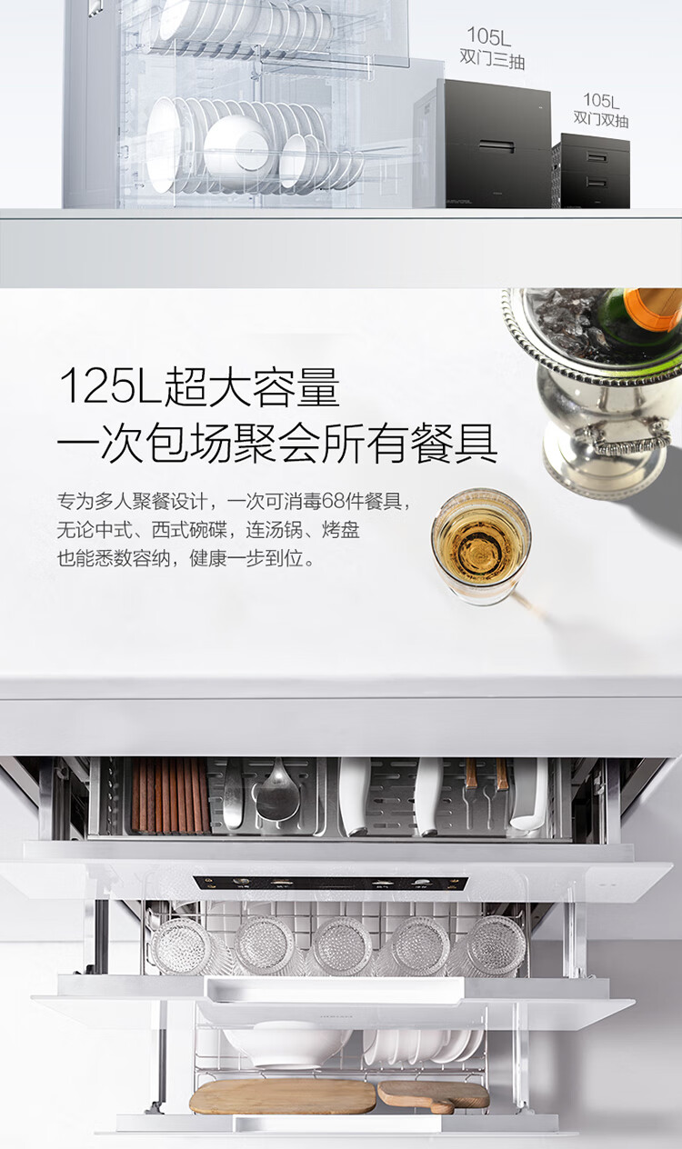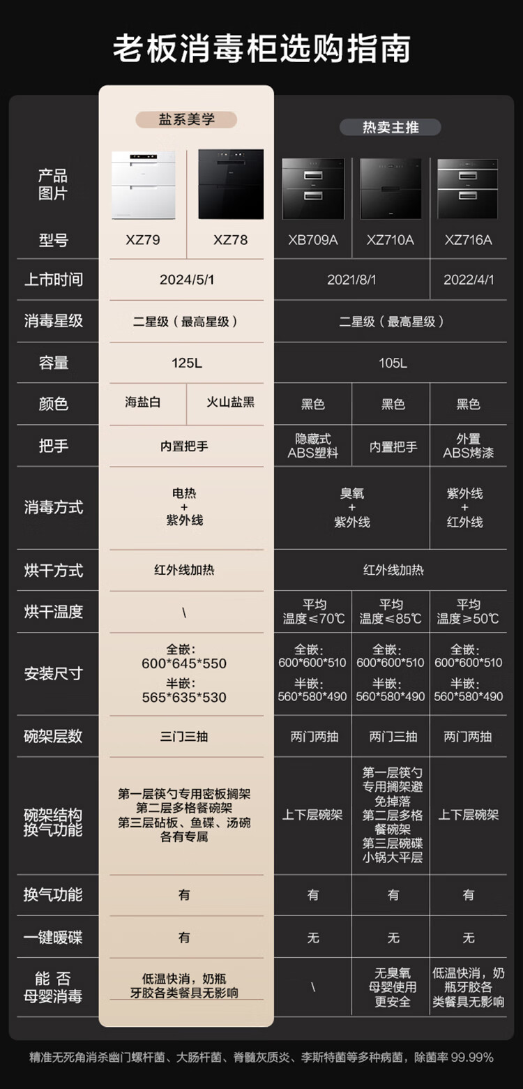 老板(Robam)盐系G1消毒柜婴儿125L嵌入式消毒碗柜三门三抽消毒柜奶瓶消毒烘干电热紫外消毒家用二星消毒XZ79