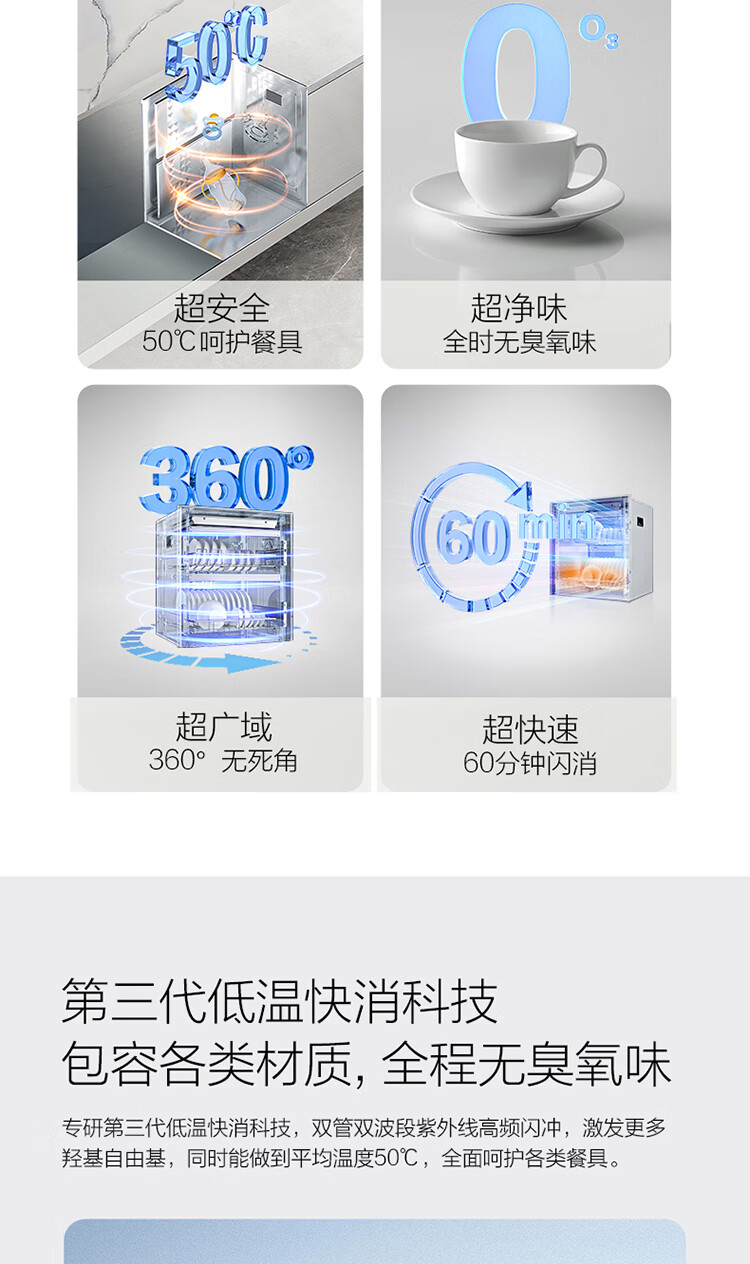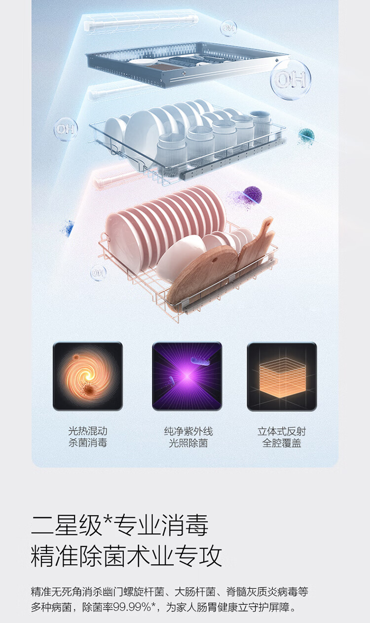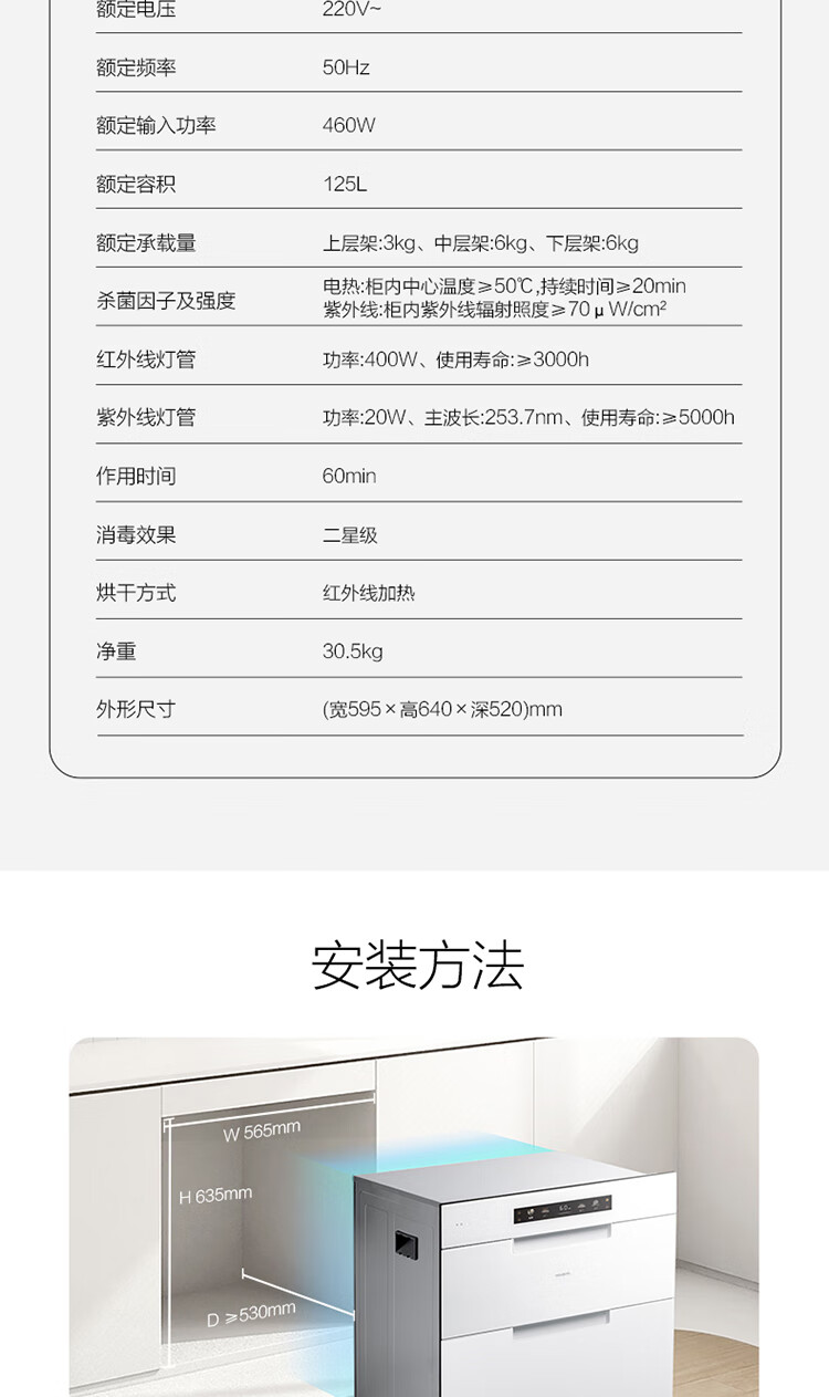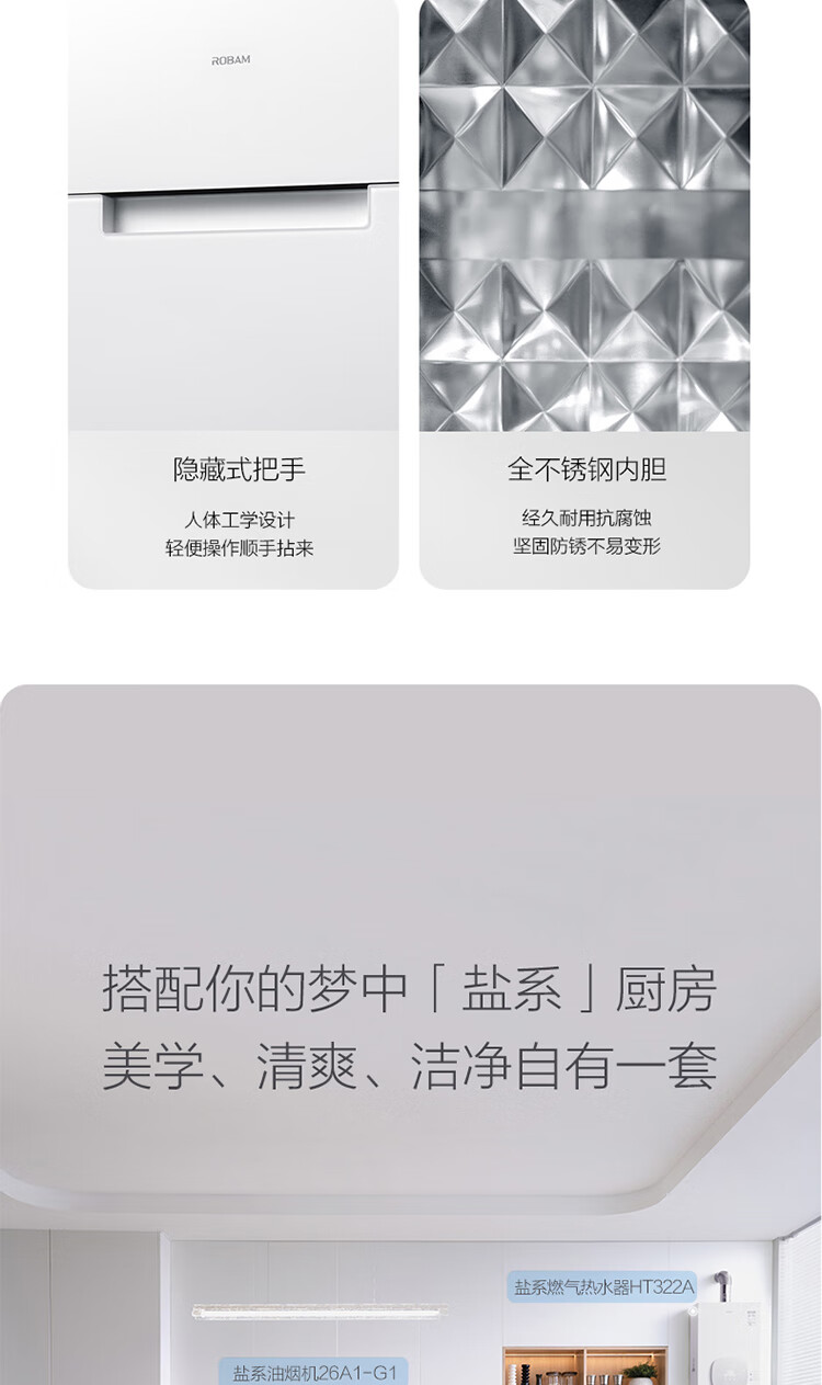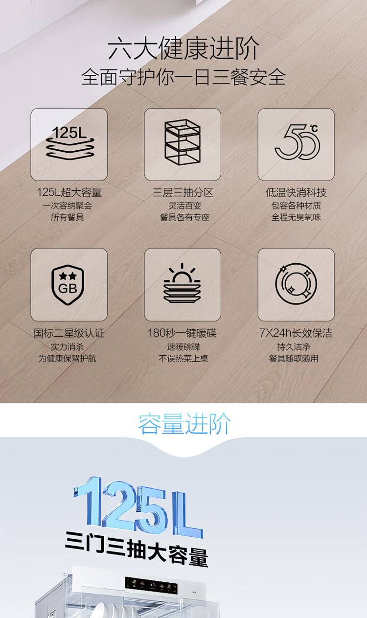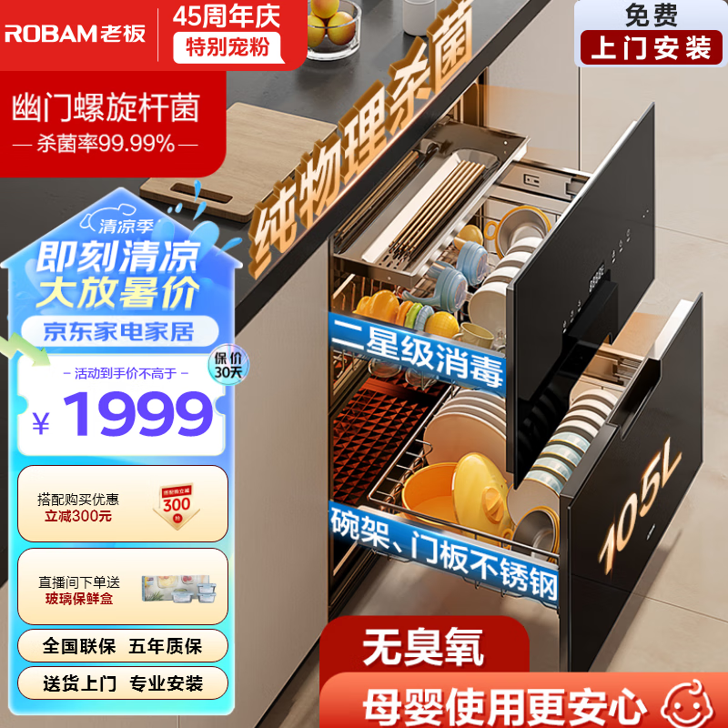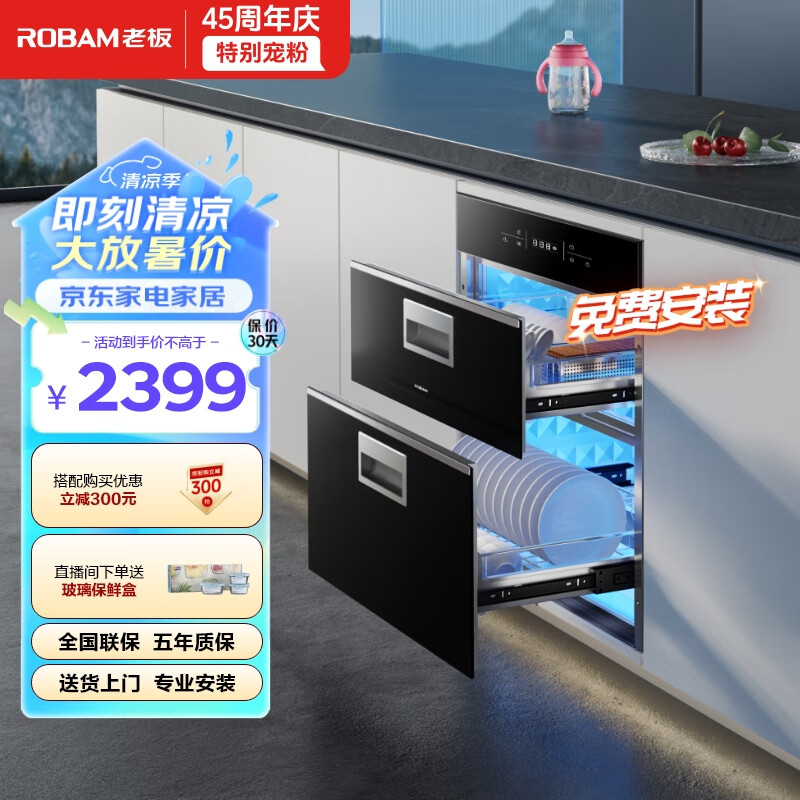 老板(Robam)盐系G1消毒柜婴儿125L嵌入式消毒碗柜三门三抽消毒柜奶瓶消毒烘干电热紫外消毒家用二星消毒XZ79