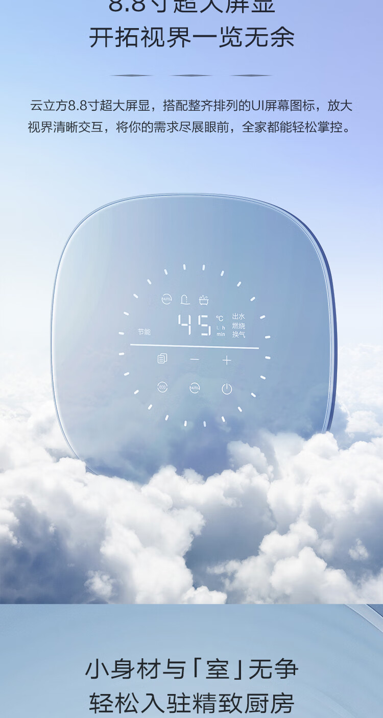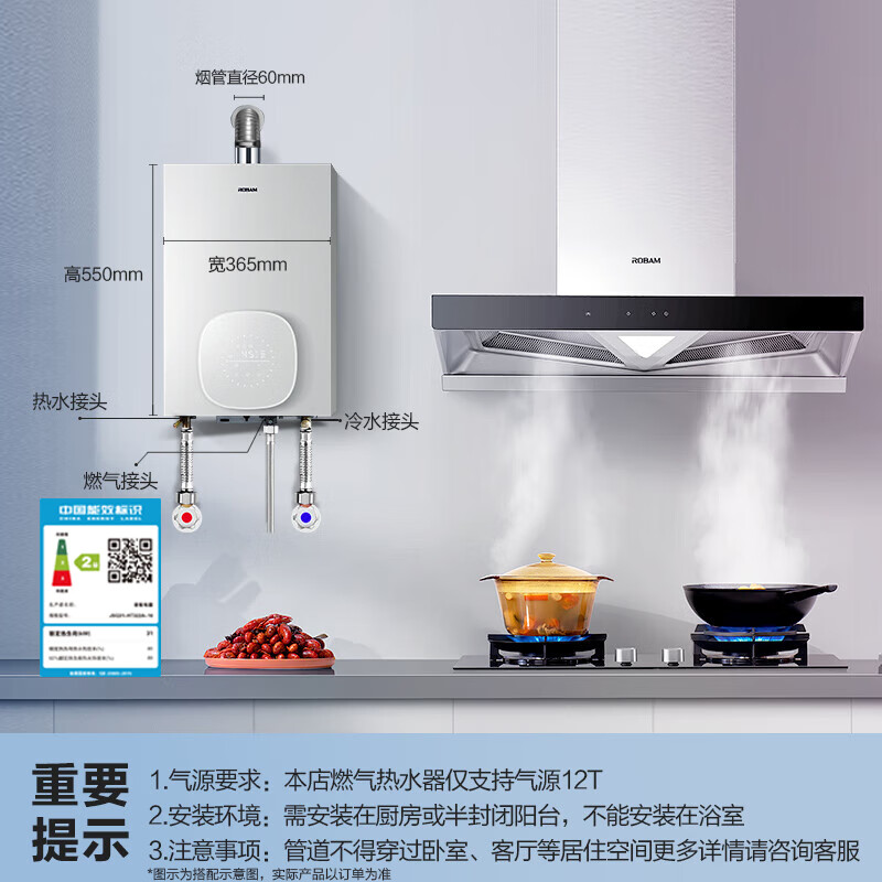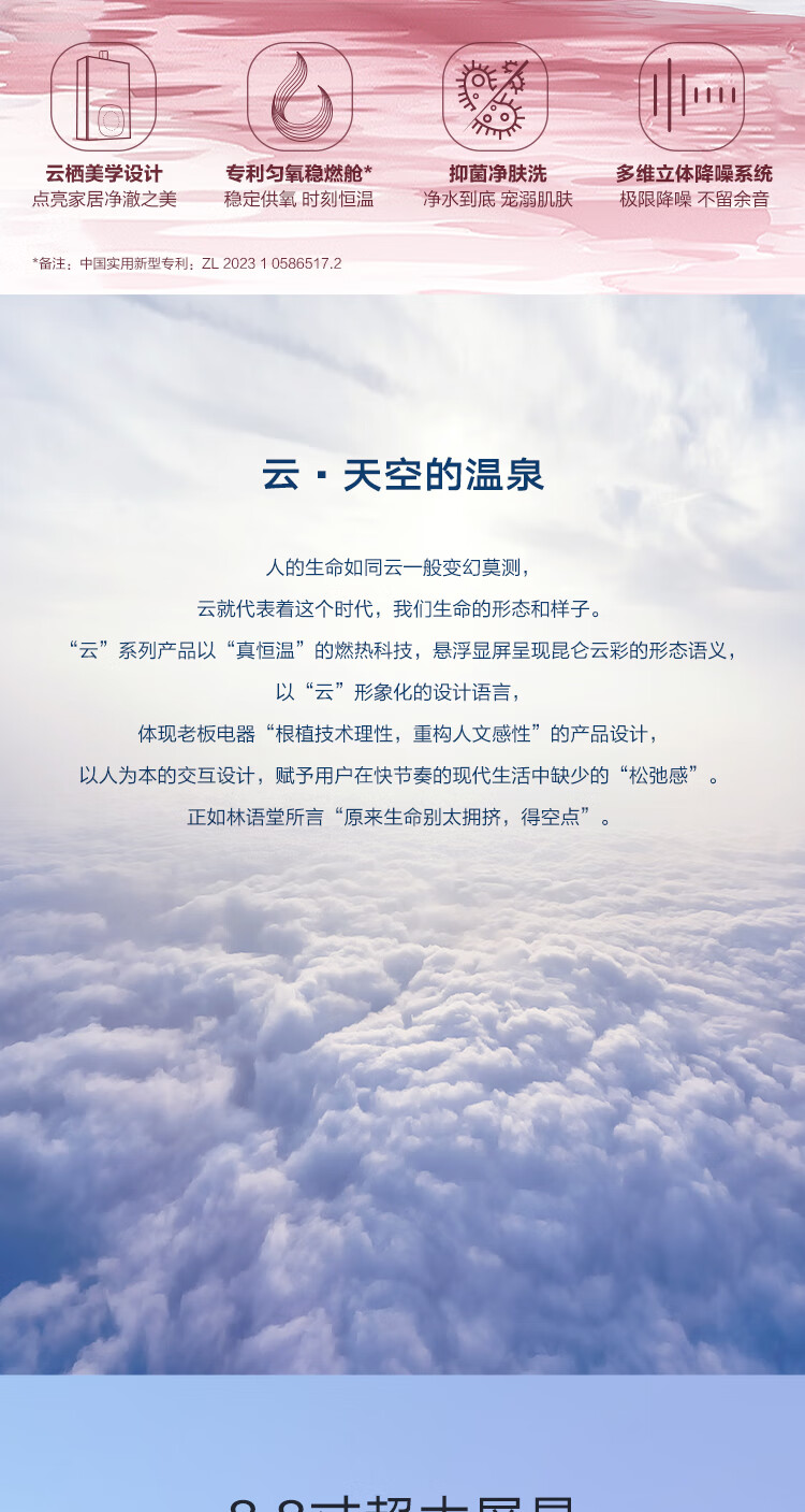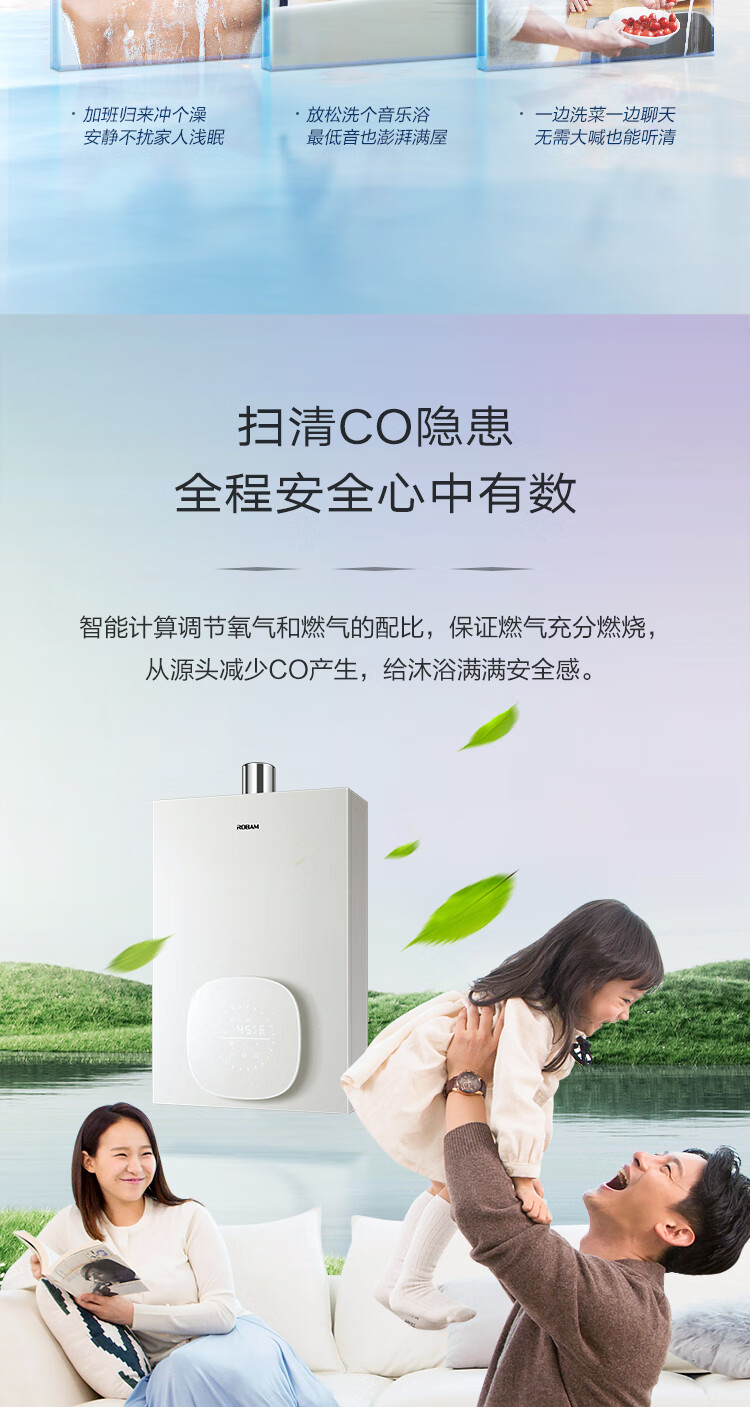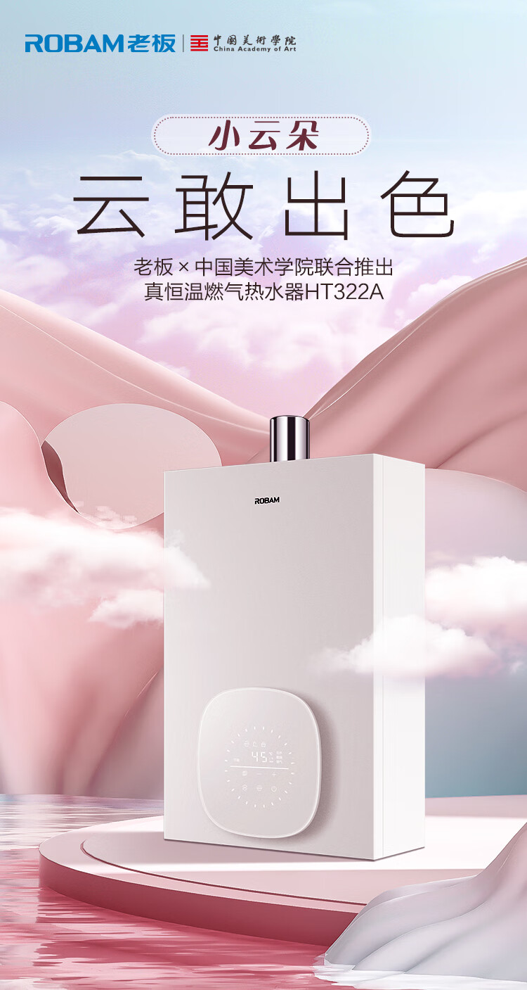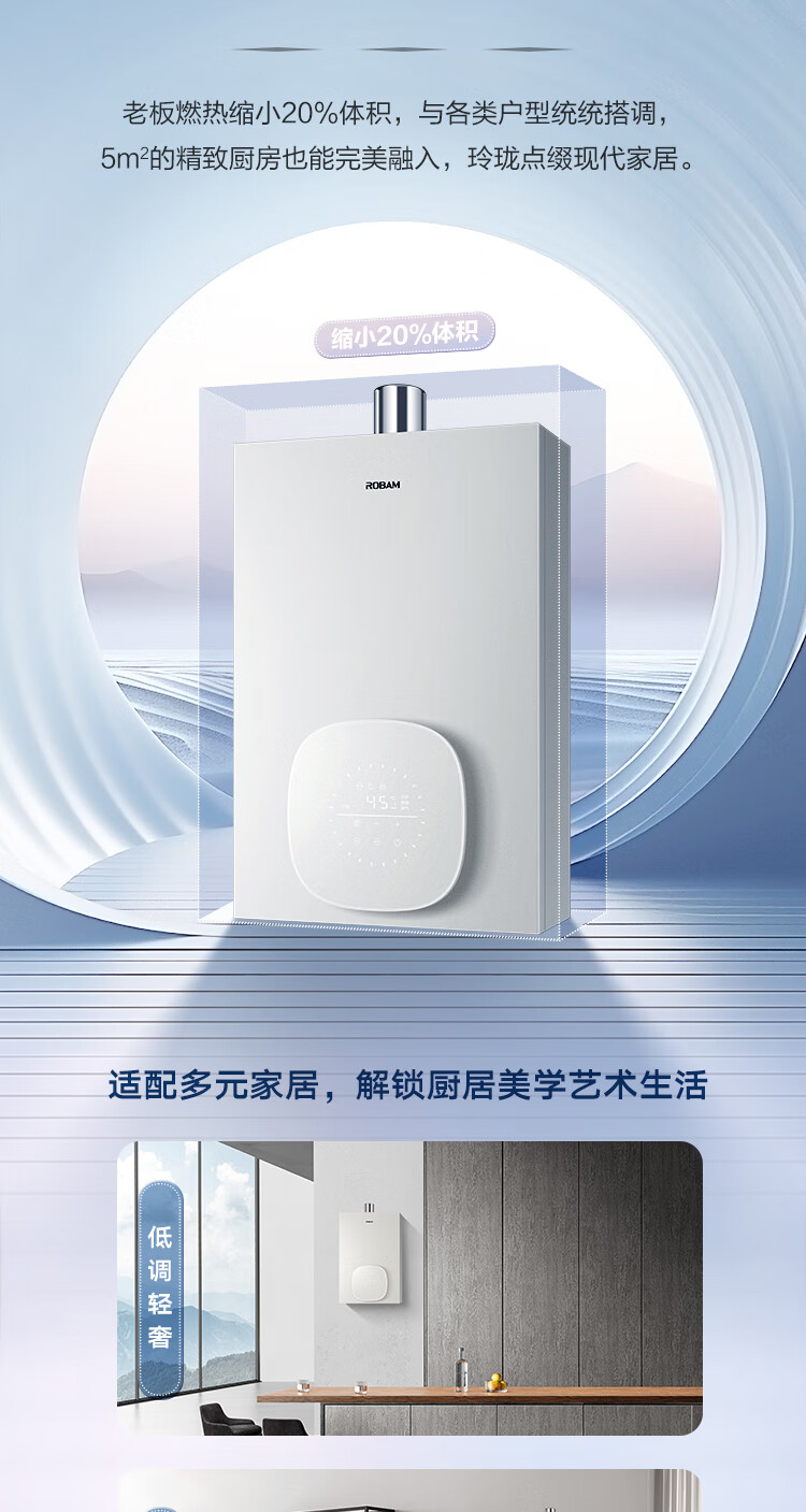 老板(Robam)小云朵16升燃气热水器天然气匀氧稳燃小尺寸智能恒温降噪高层抗风防冻家用强排式JSQ31-HT322A-16