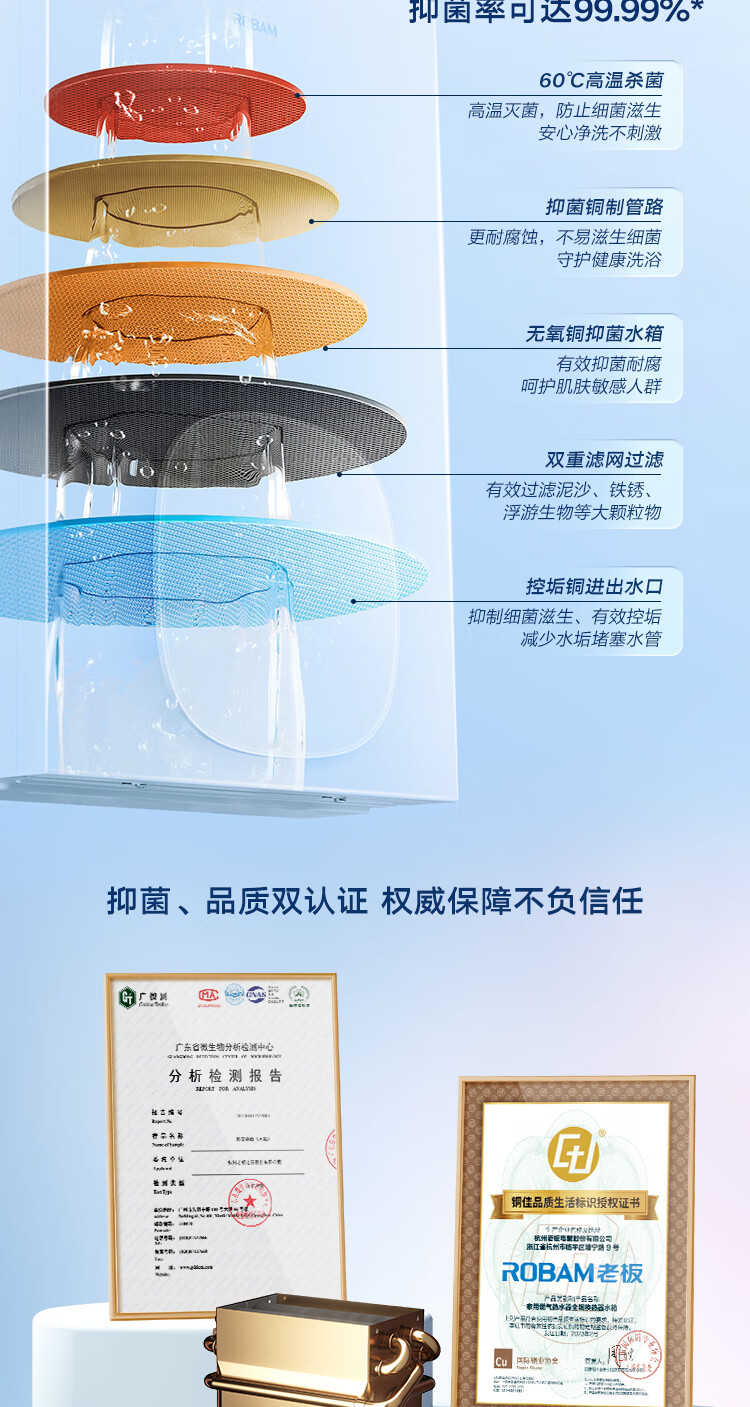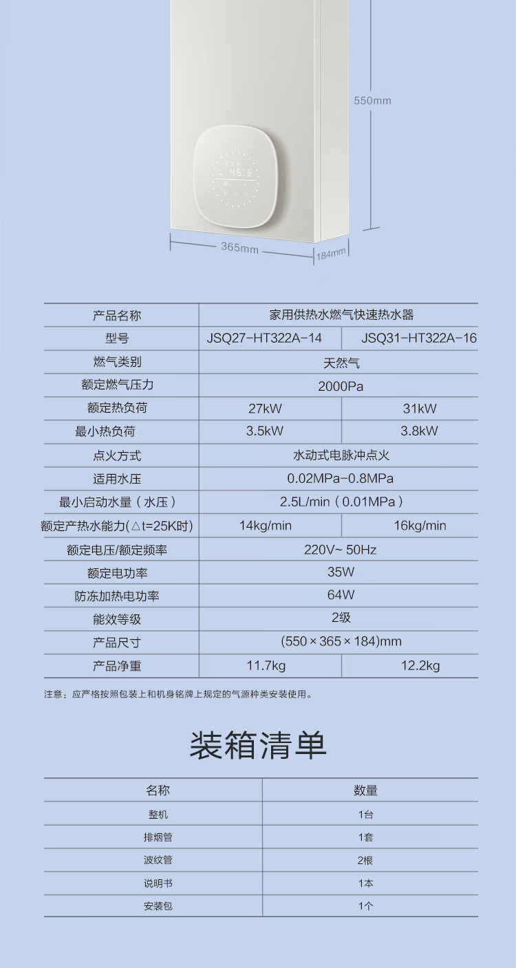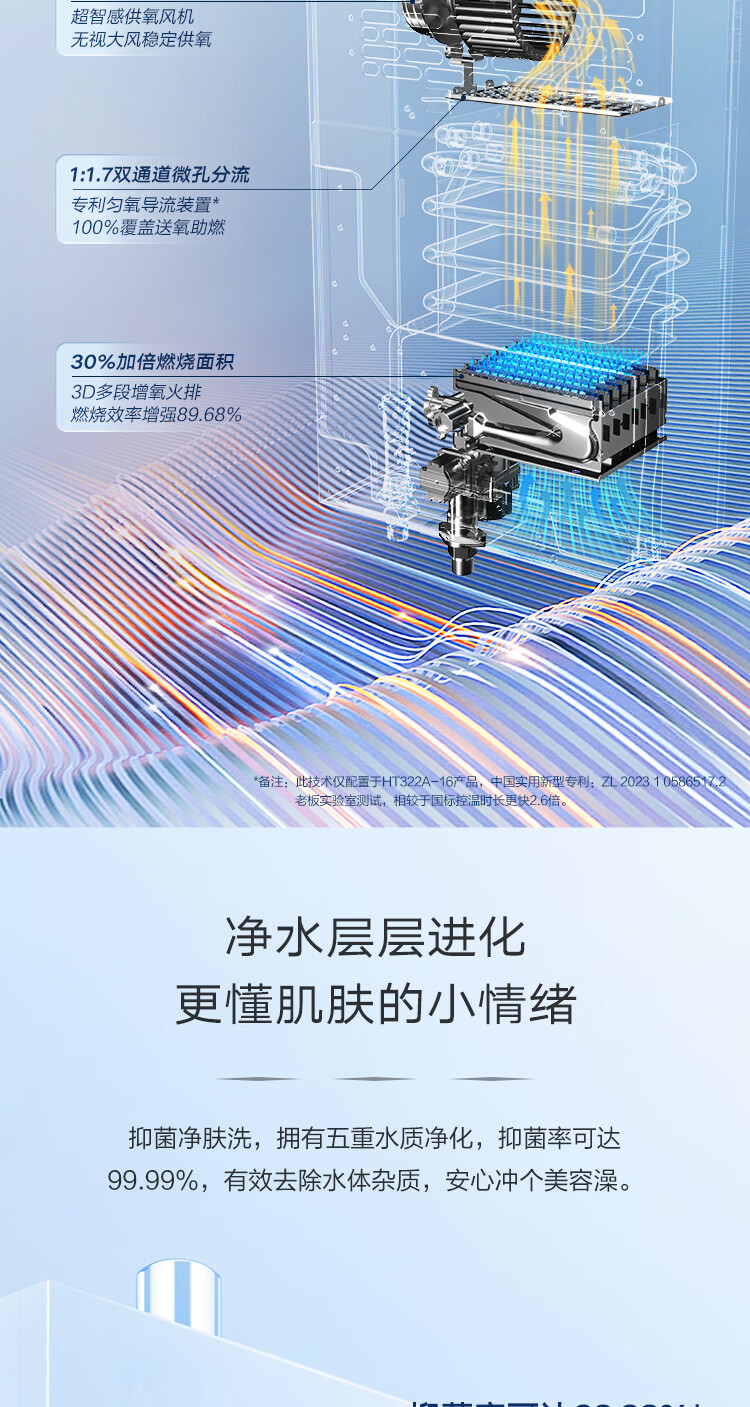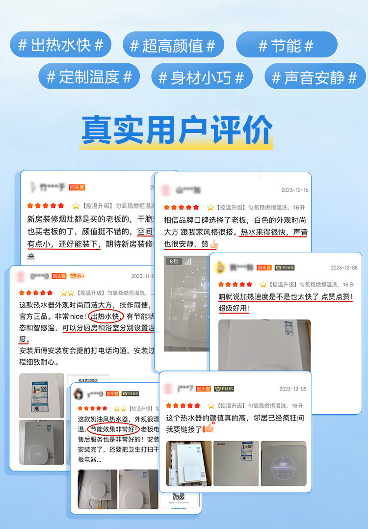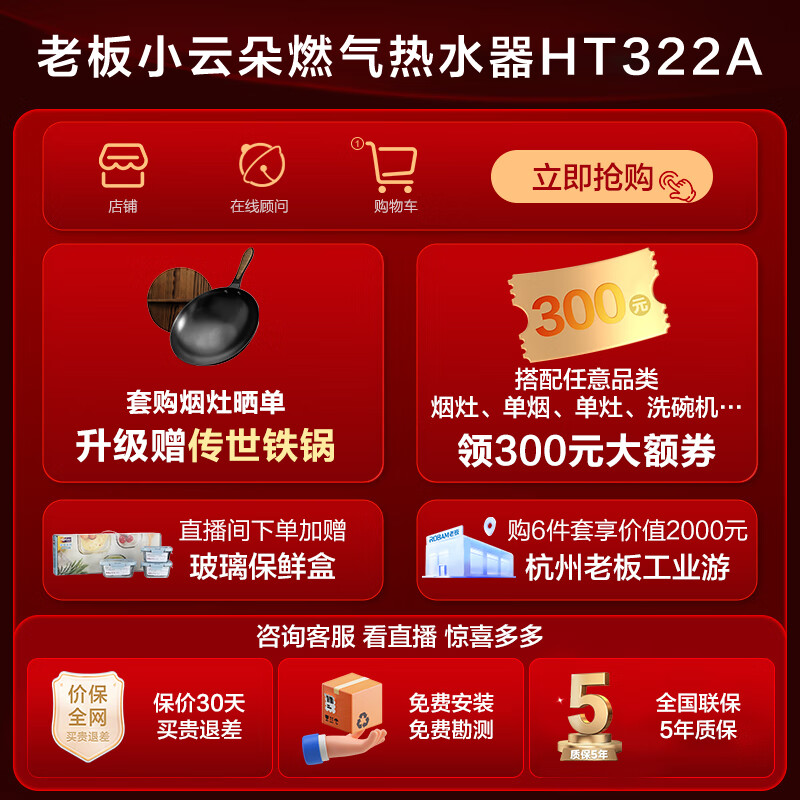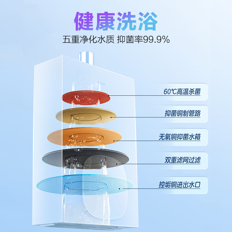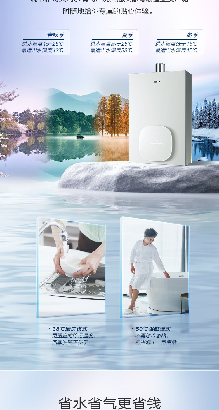 老板(Robam)小云朵16升燃气热水器天然气匀氧稳燃小尺寸智能恒温降噪高层抗风防冻家用强排式JSQ31-HT322A-16