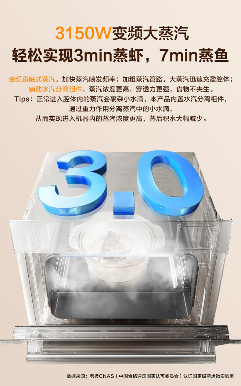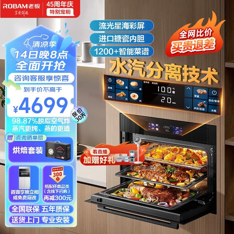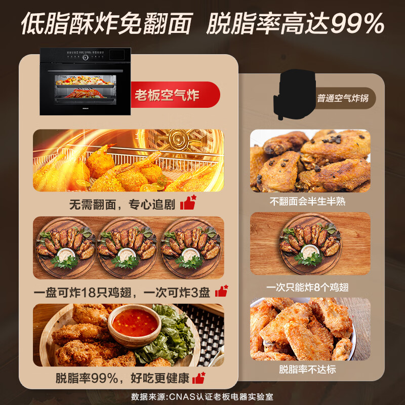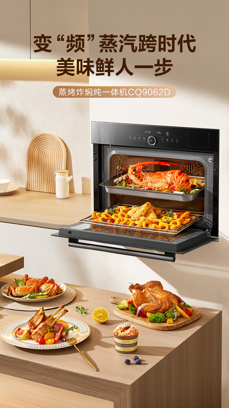 老板(Robam)CQ9062D小食光脱脂蒸烤箱一体机嵌入式EXP专业控温蒸烤炸炖家用55L搪瓷蒸箱烤箱自清洁保温箱