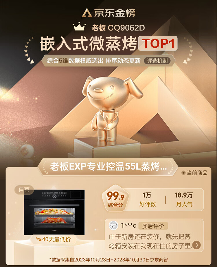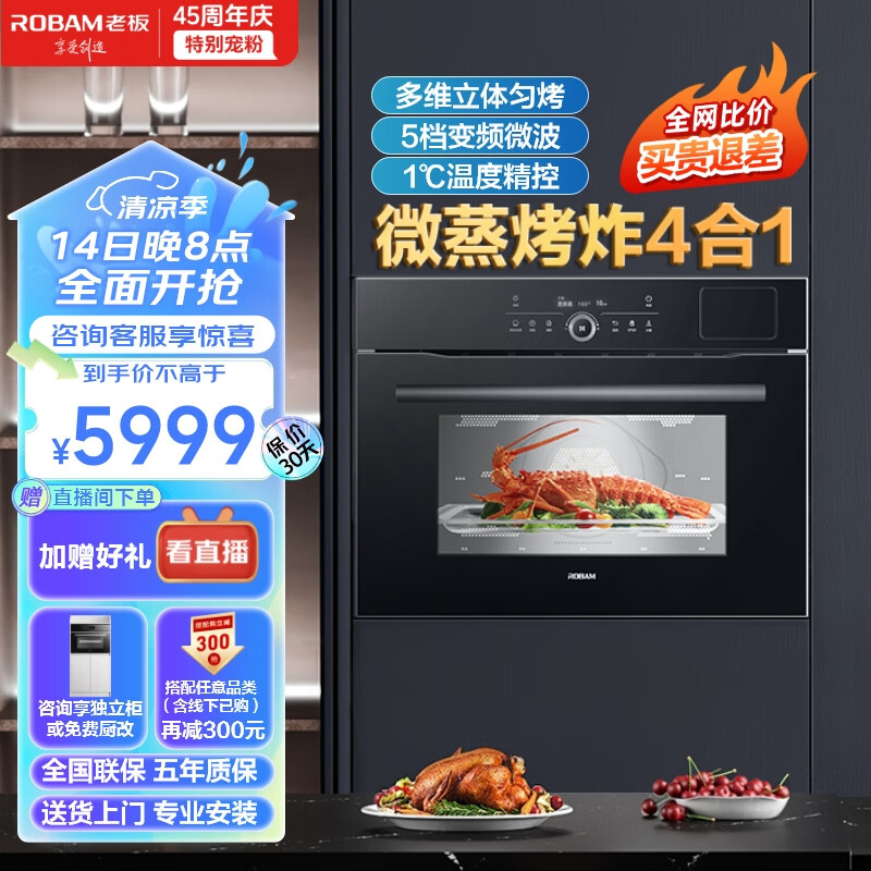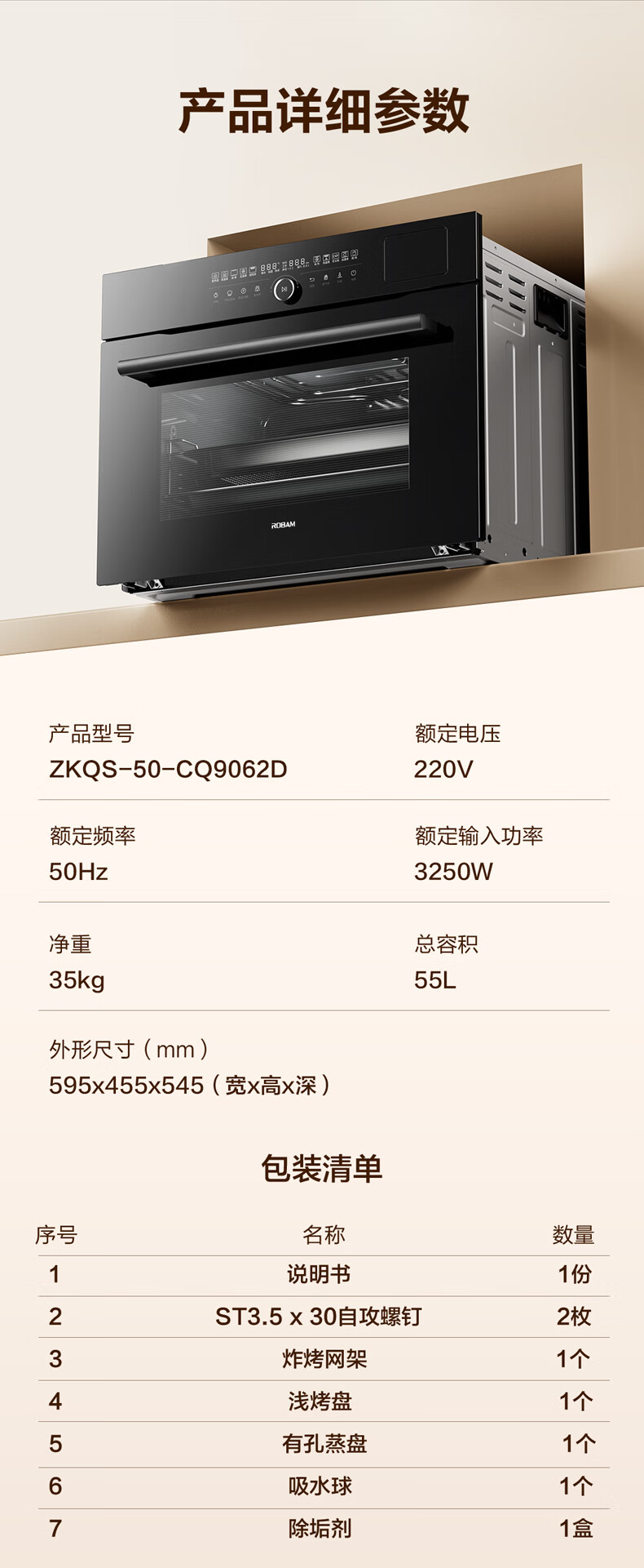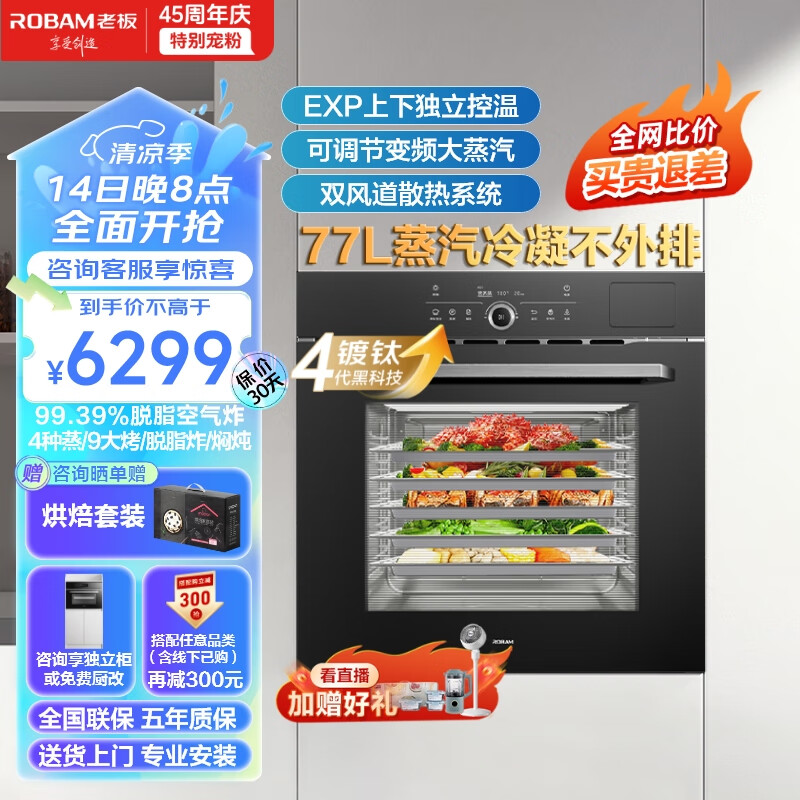 老板(Robam)CQ9062D小食光脱脂蒸烤箱一体机嵌入式EXP专业控温蒸烤炸炖家用55L搪瓷蒸箱烤箱自清洁保温箱