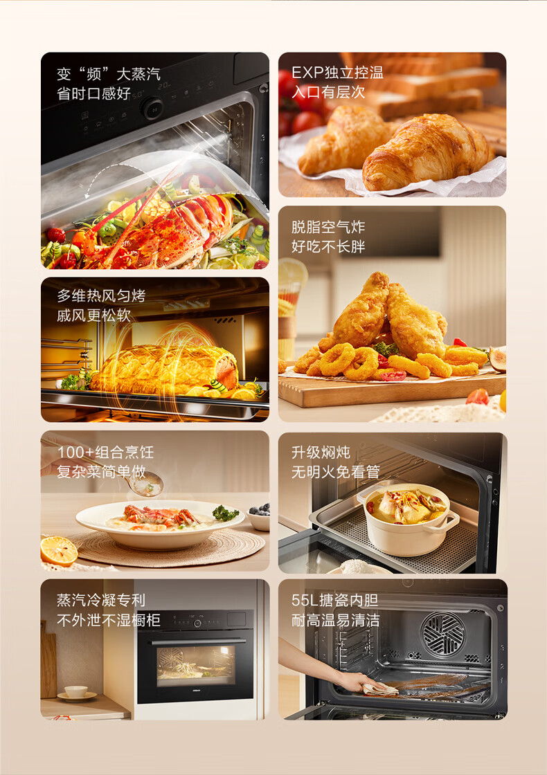 ⭐【蒸烤炸炖】爆款55L搪瓷内胆