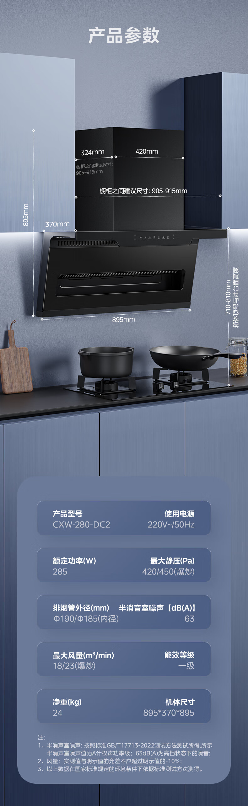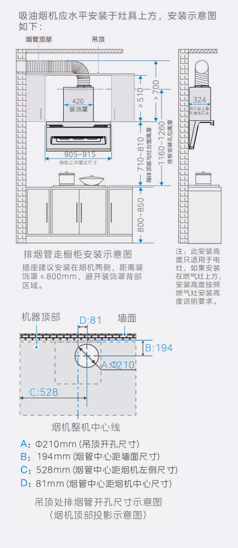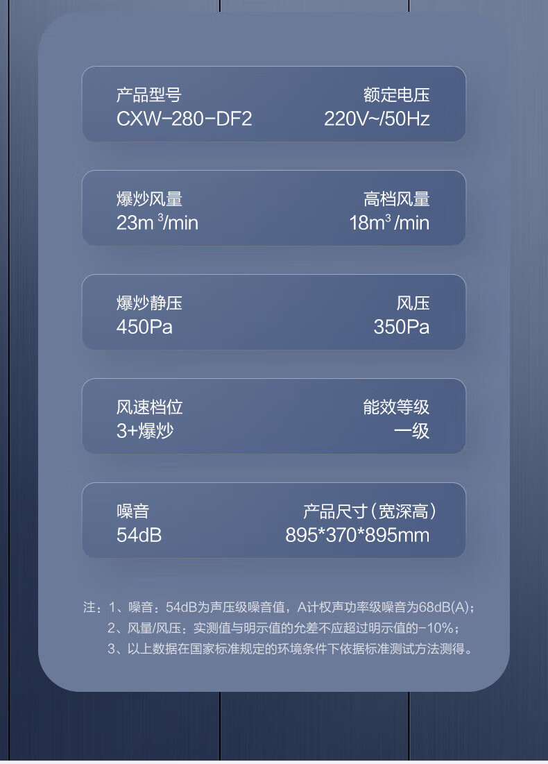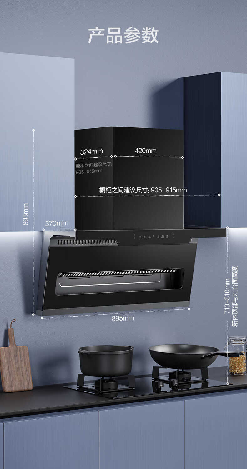 • 烟机外机尺寸: 长895mm;宽370mm;高895mm