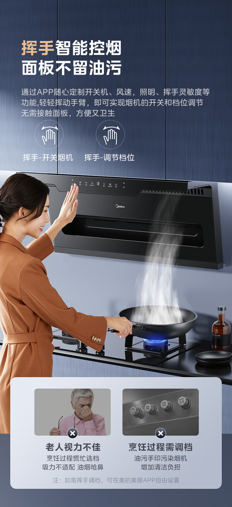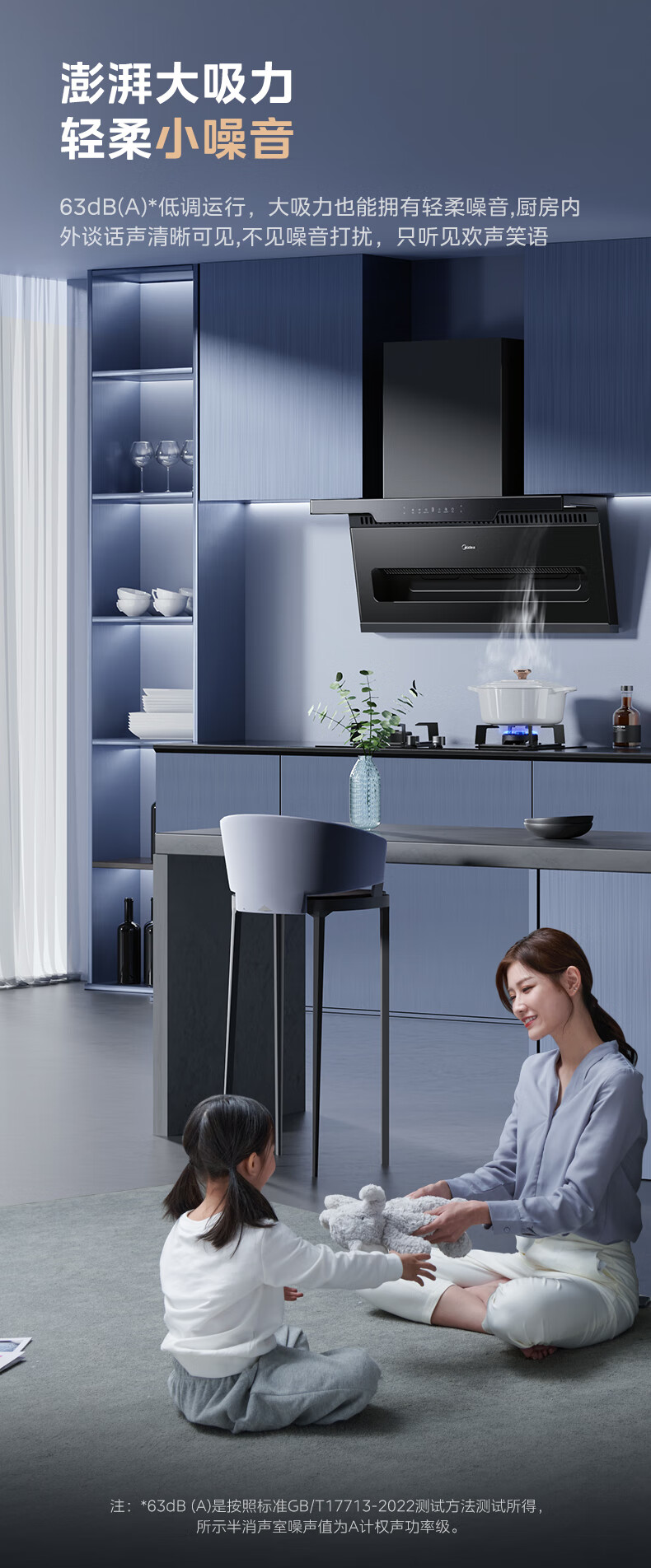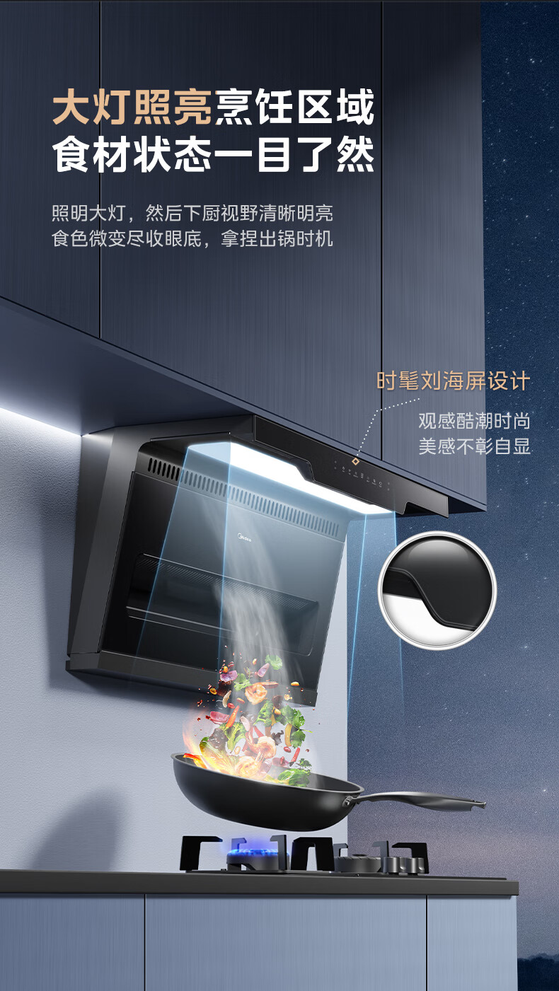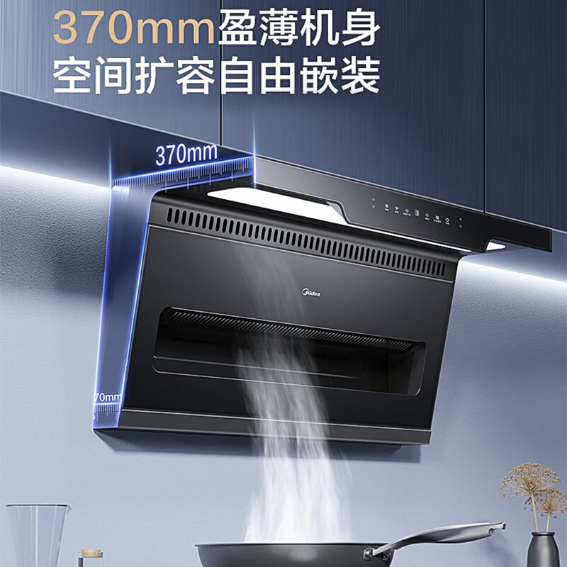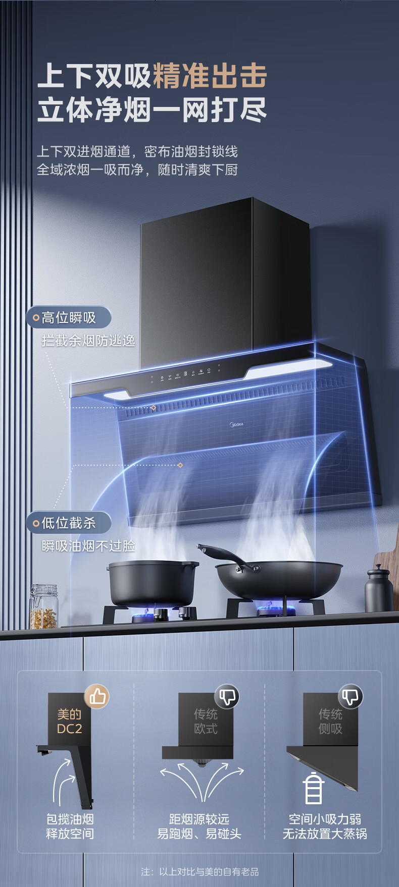 美的(Midea)顶侧双吸纤薄双腔抽油烟机23立方大吸力自清洗厨房家用吸油烟机7字型DC2大风量排烟机烟灶套装 【单烟机】大风力自清洁油烟机DC2