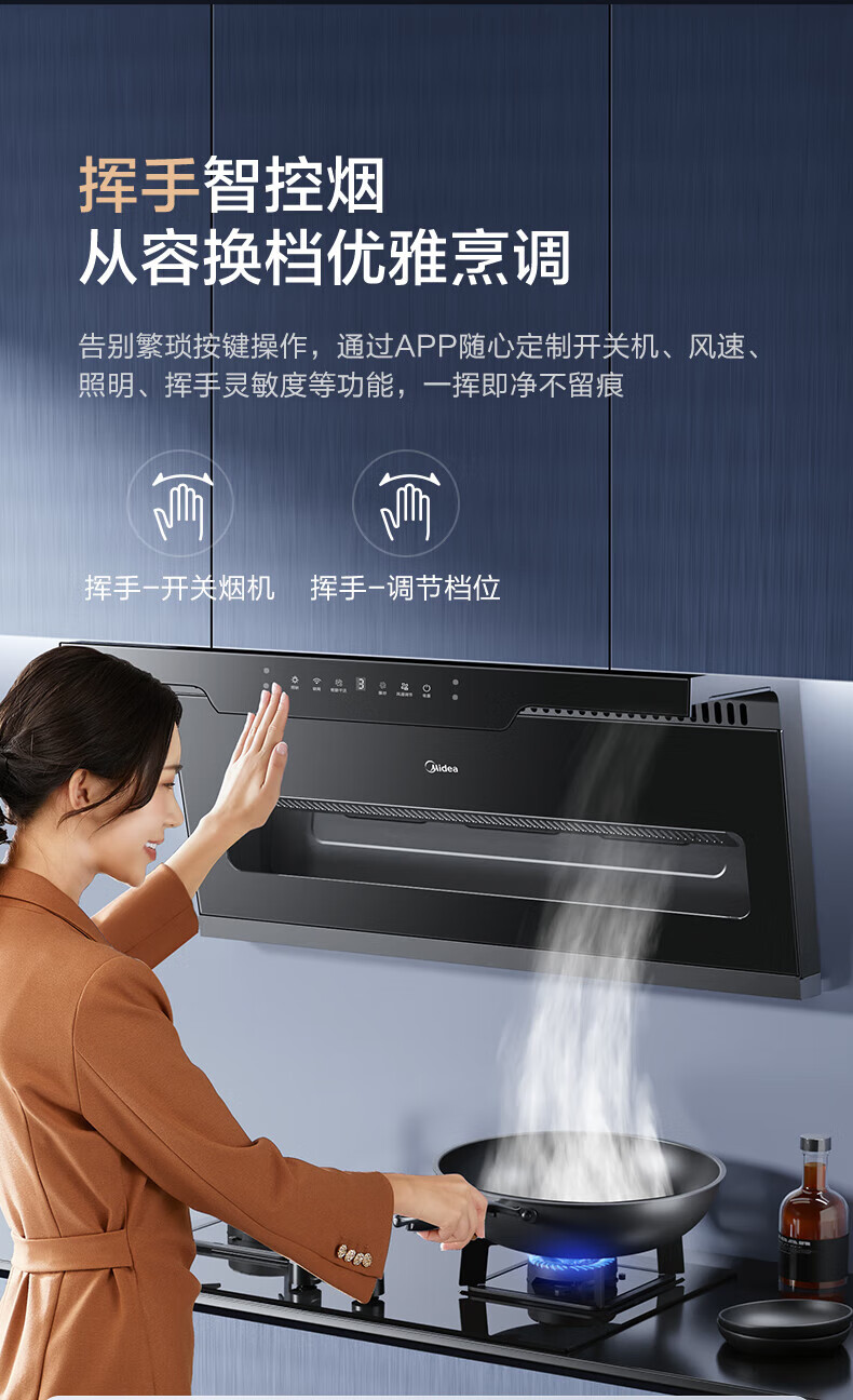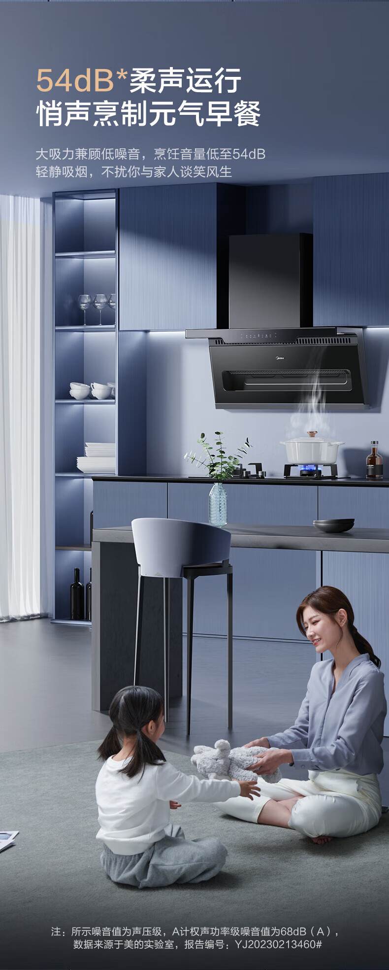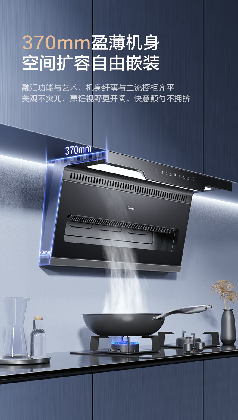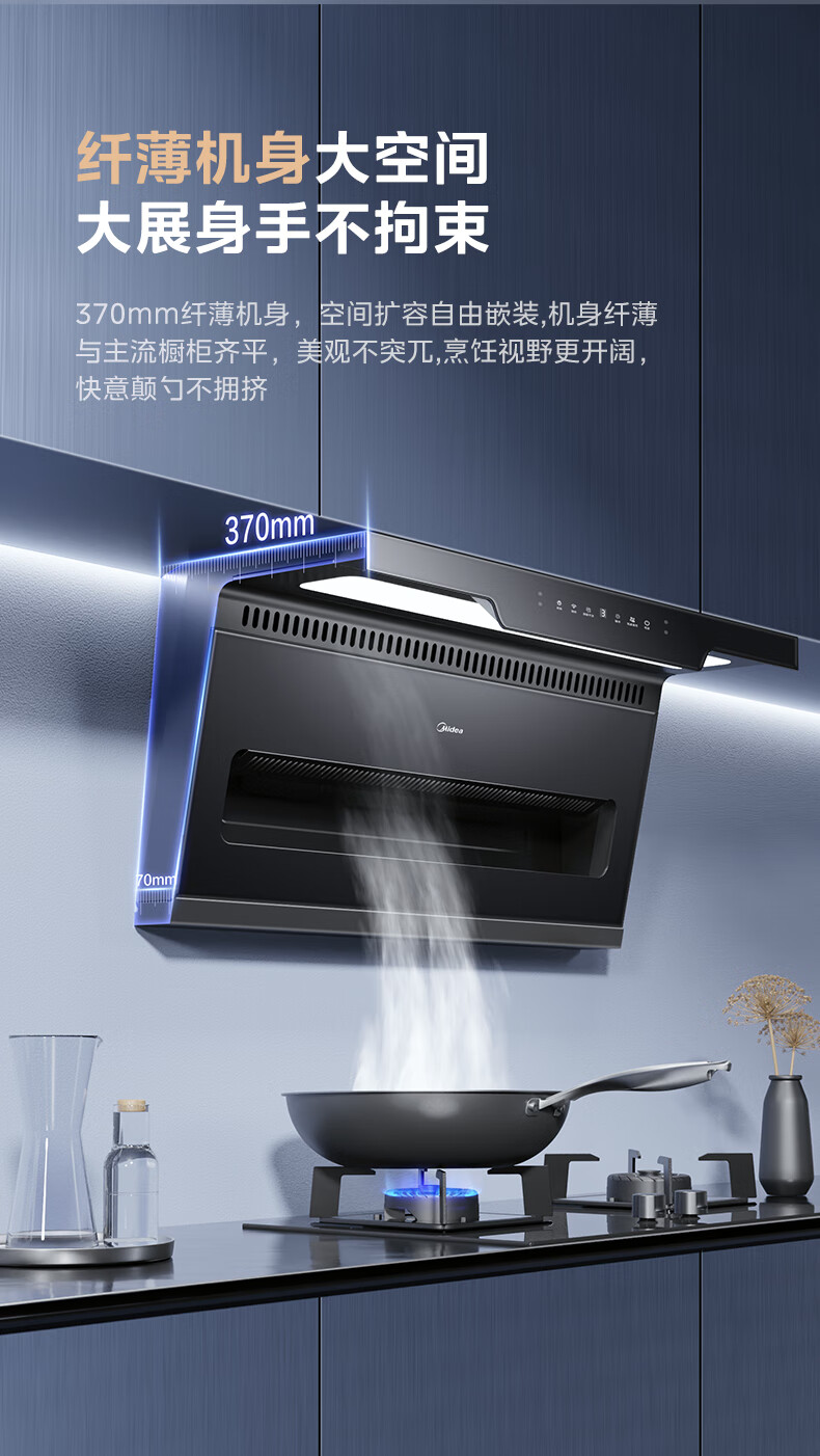 美的(Midea)顶侧双吸纤薄双腔抽油烟机23立方大吸力自清洗厨房家用吸油烟机7字型DC2大风量排烟机烟灶套装 【单烟机】大风力自清洁油烟机DC2