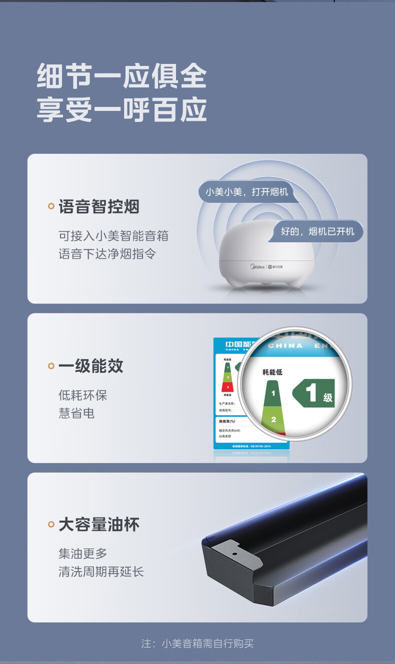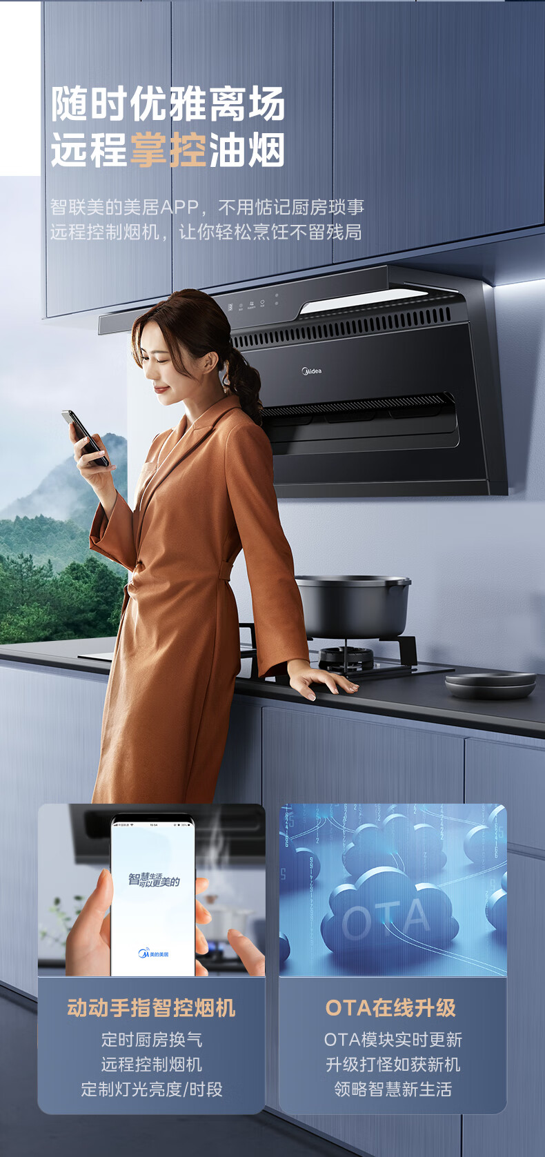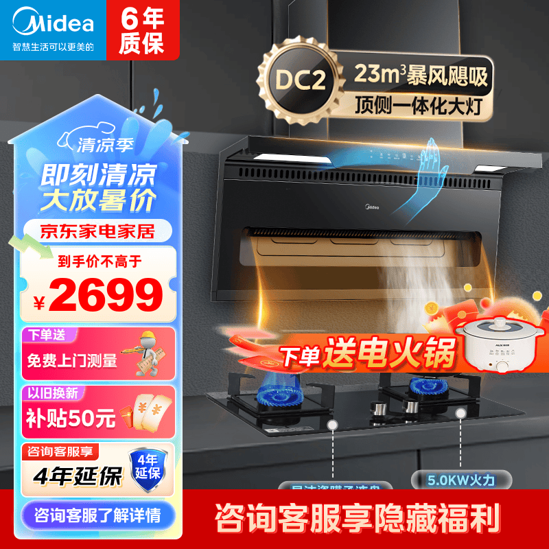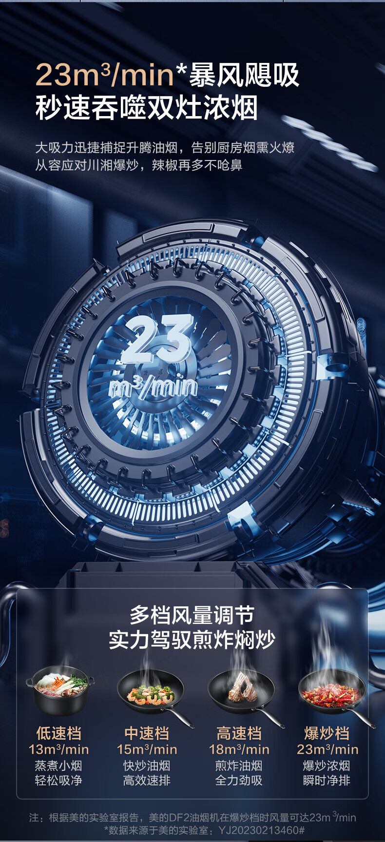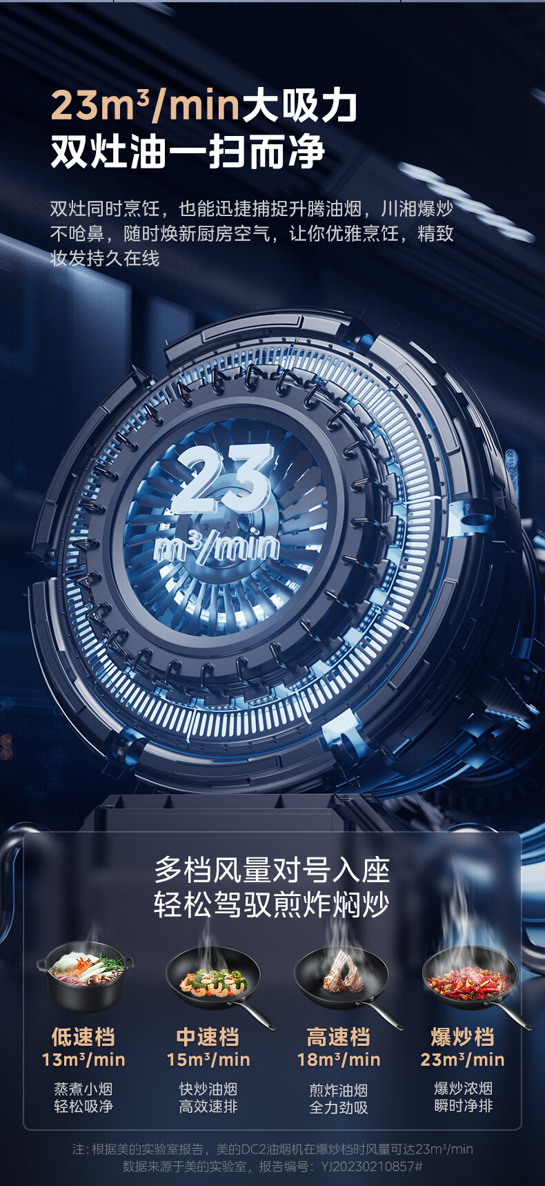 美的(Midea)顶侧双吸纤薄双腔抽油烟机23立方大吸力自清洗厨房家用吸油烟机7字型DC2大风量排烟机烟灶套装 【单烟机】大风力自清洁油烟机DC2