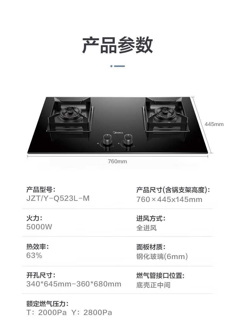 • 灶具外机尺寸: 长760mm;宽445mm;高145mm