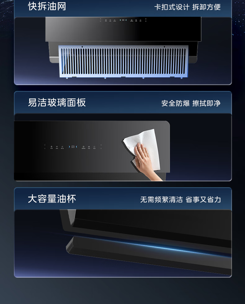 • 烟机面板材质: 钢化玻璃
