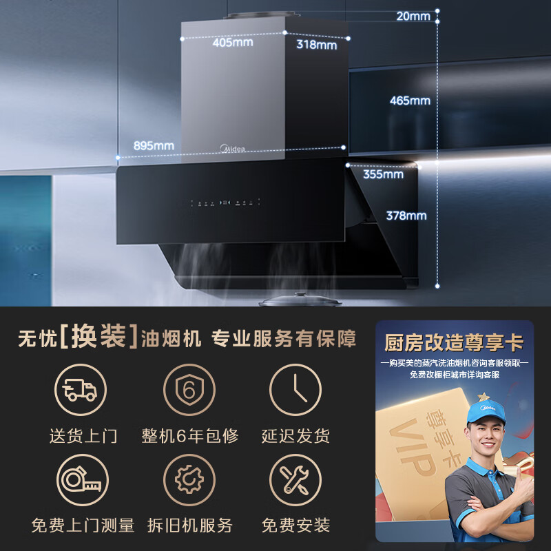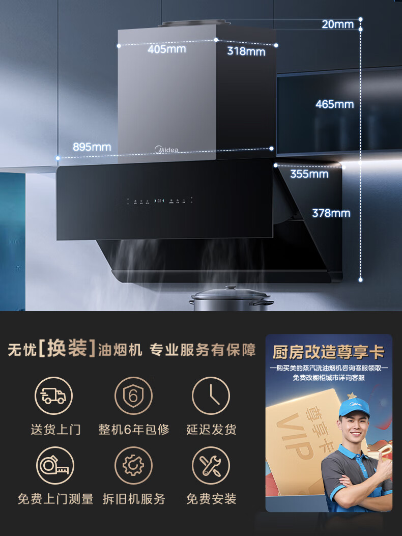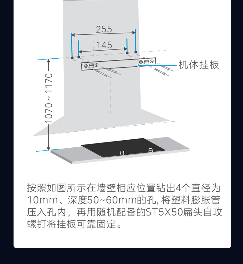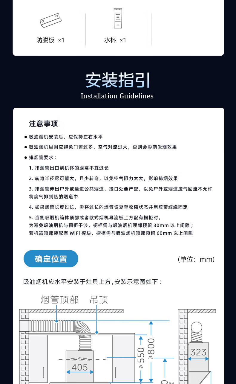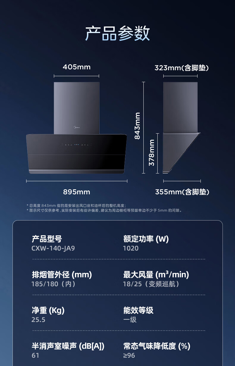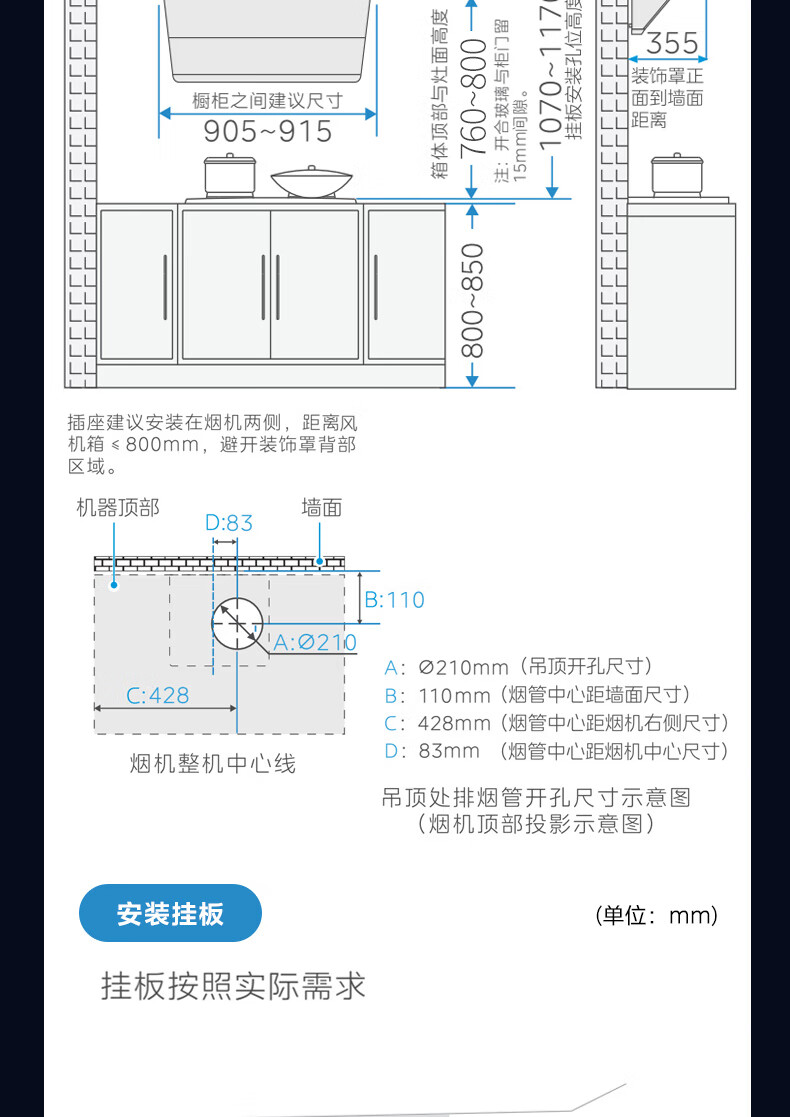 • 烟机安装尺寸: 900±50mm