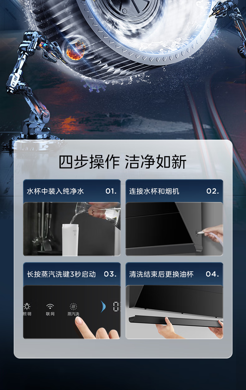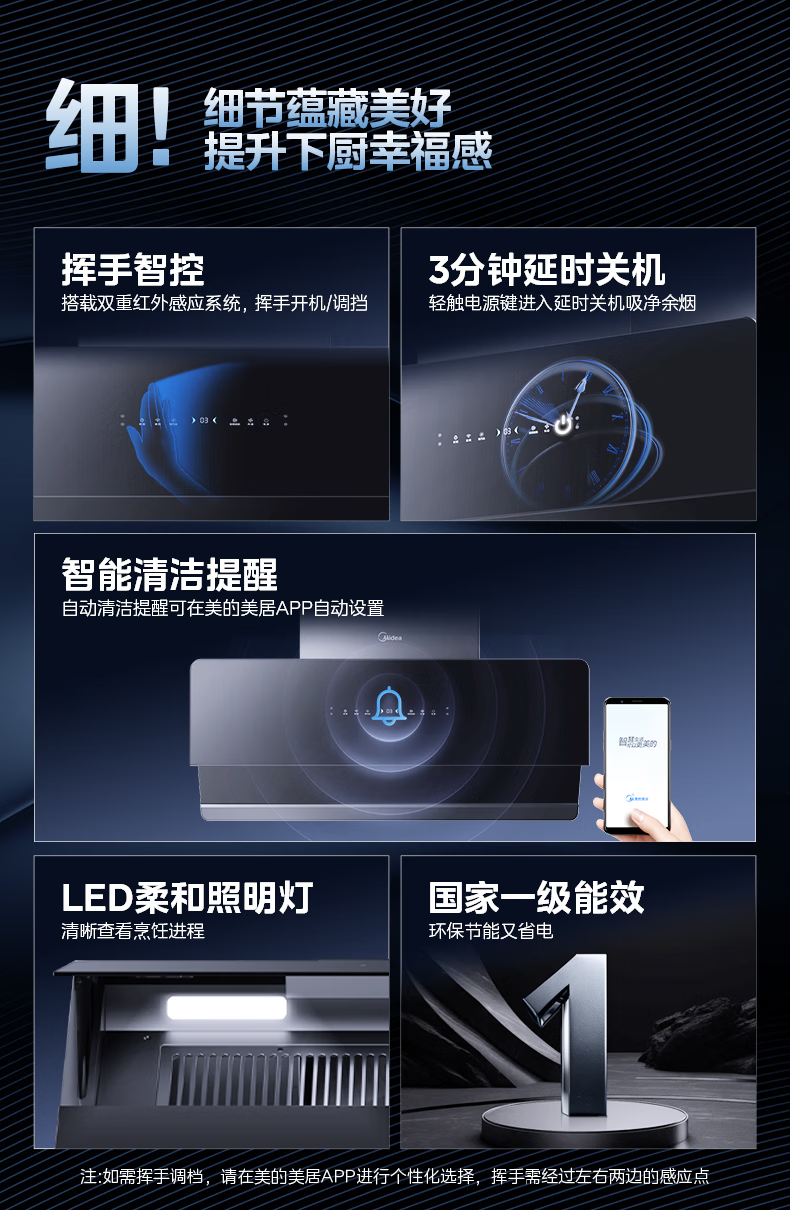 • 烟机操控方式: APP操控;触控式;挥手感应