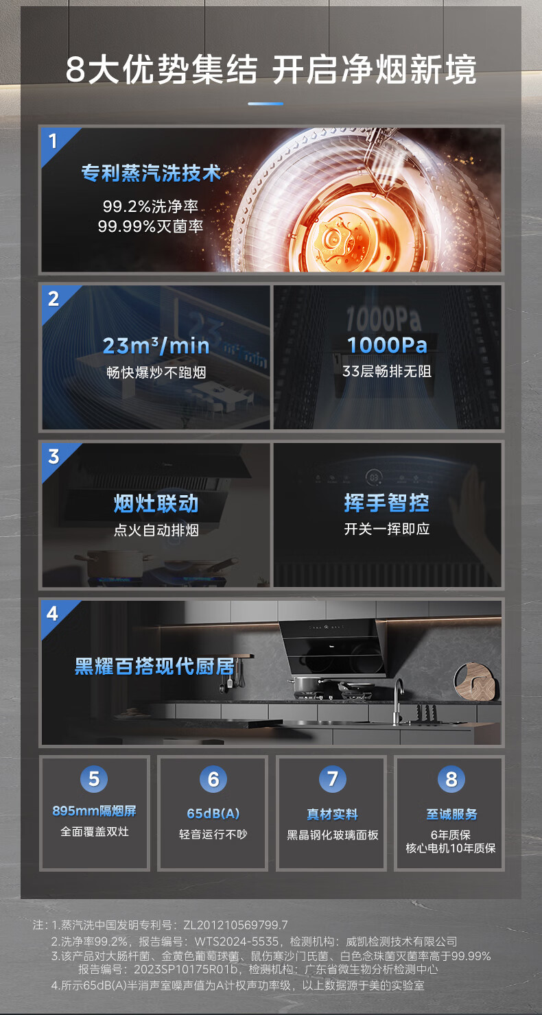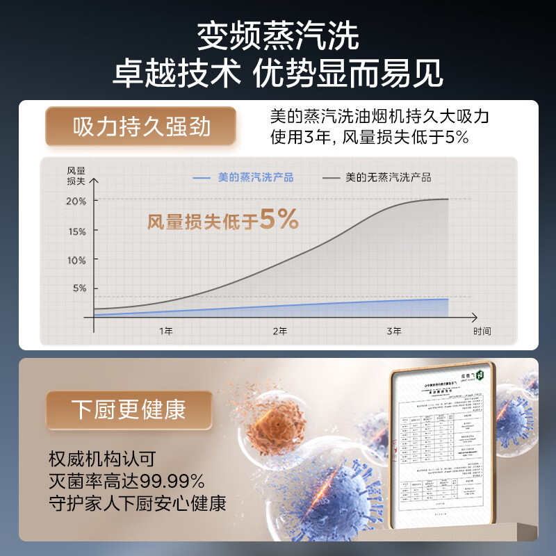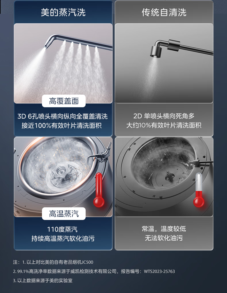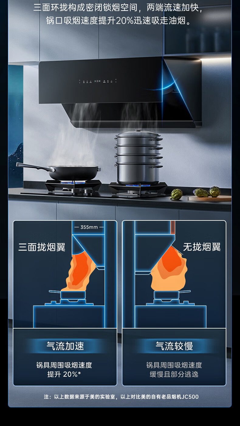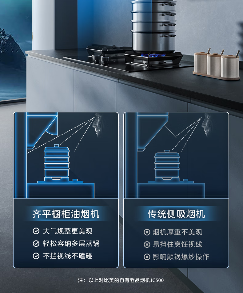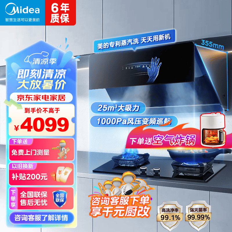 美的(Midea)高温蒸汽洗平嵌橱柜变频1000pa家用侧吸式抽油烟机23/25大吸力自清洗吸油烟机 厨房脱排油烟机 25m³大风力排烟机JA9