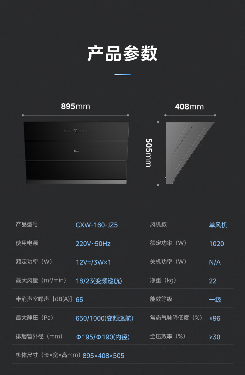 • 烟机能效等级: 一级能效