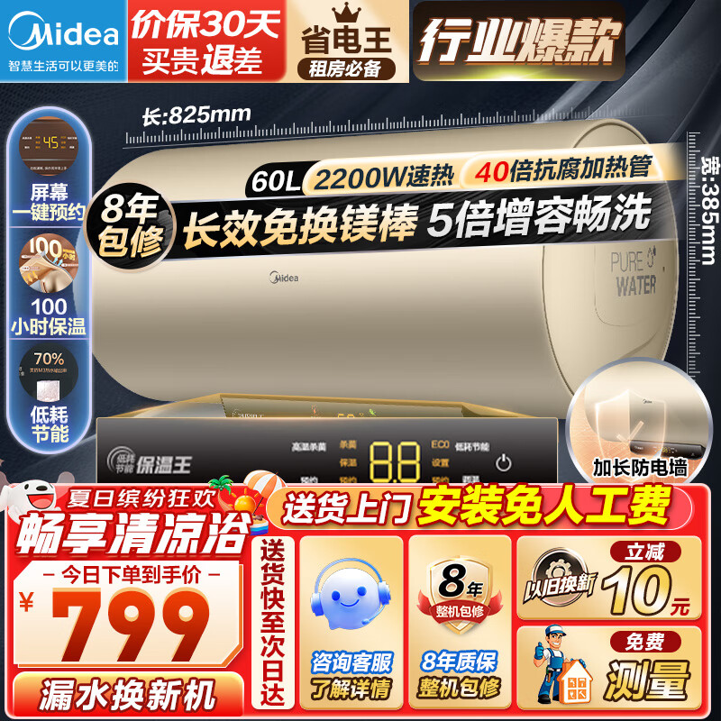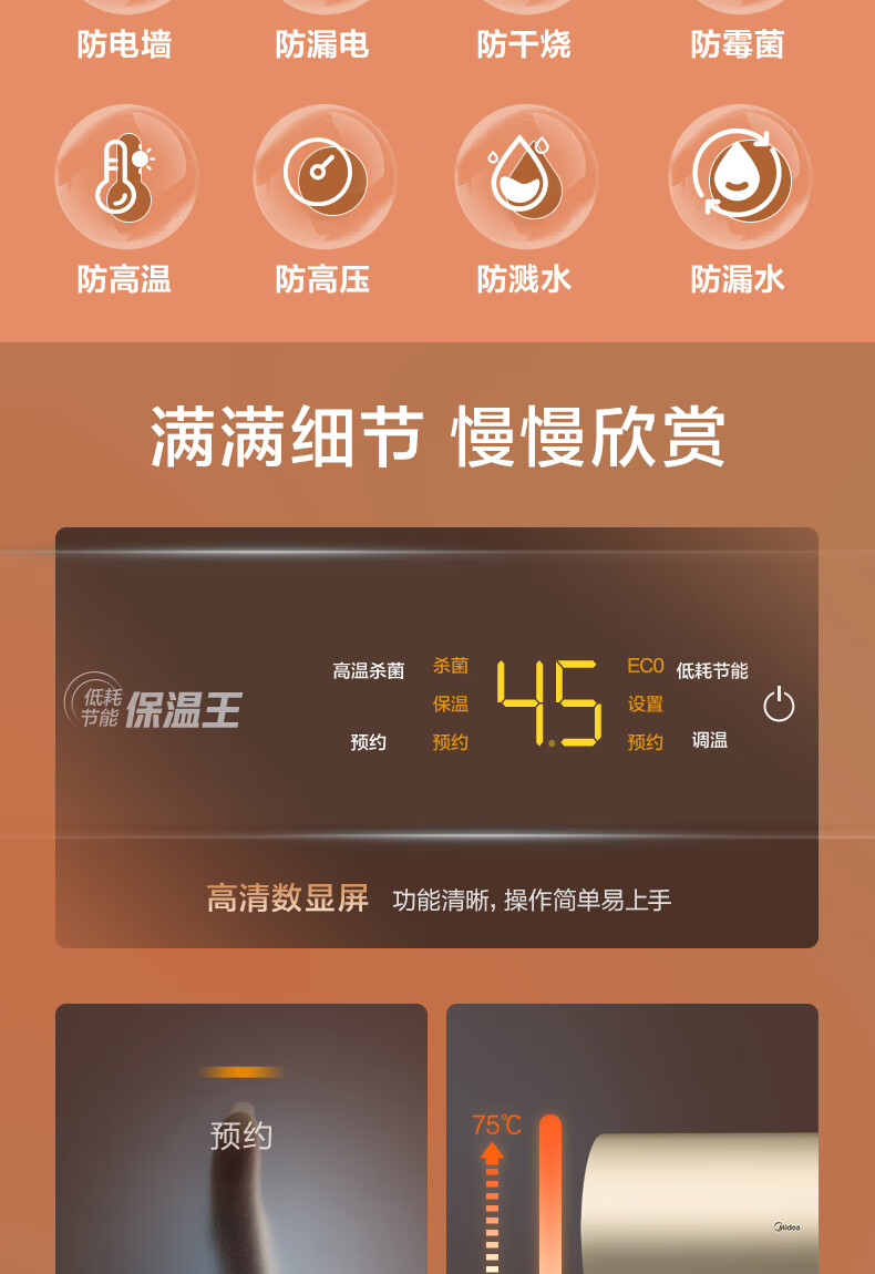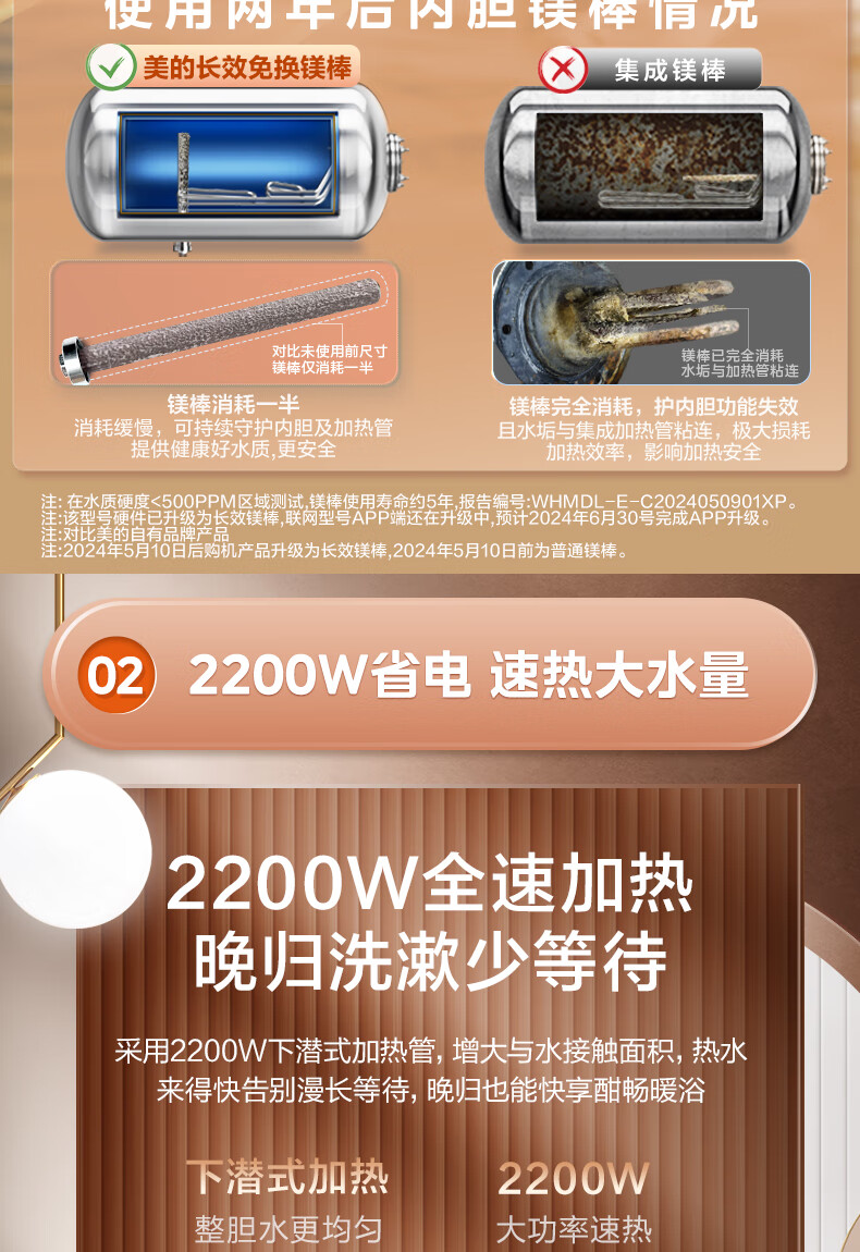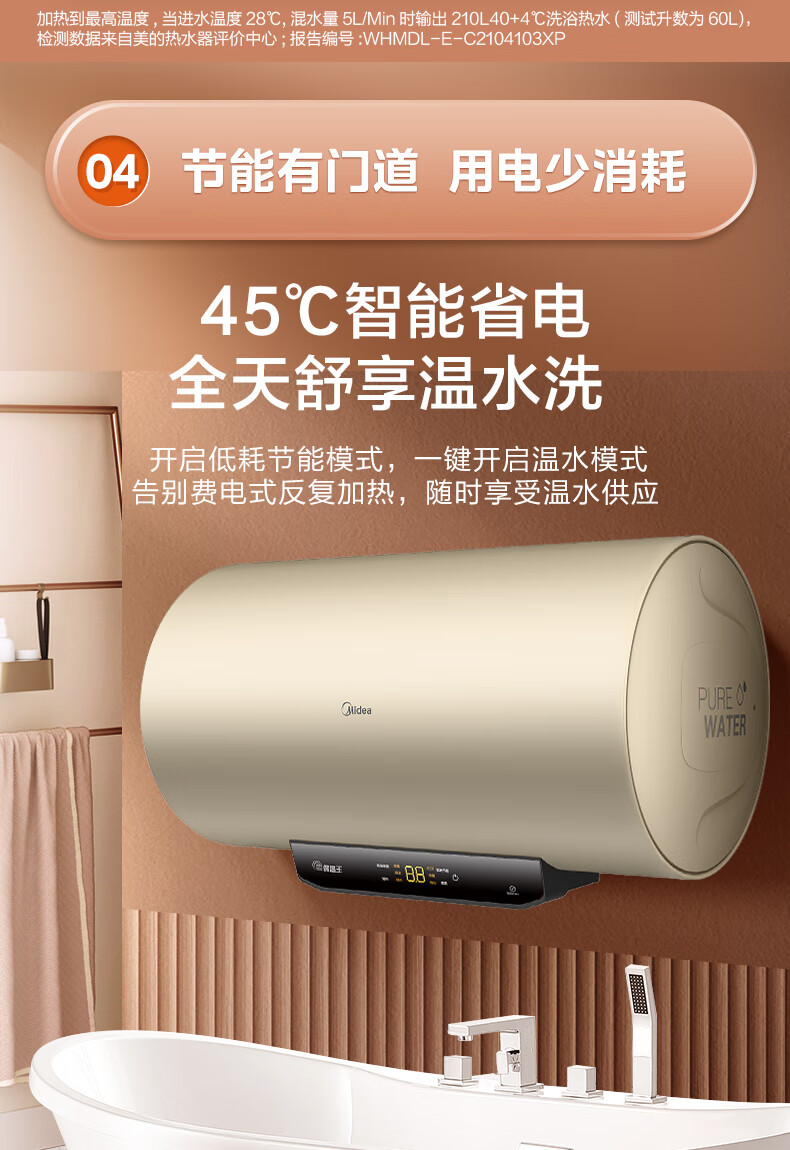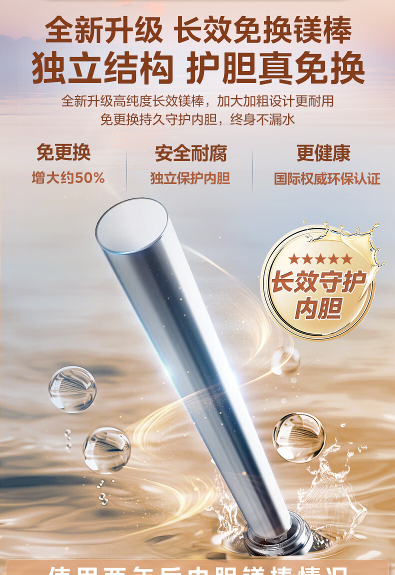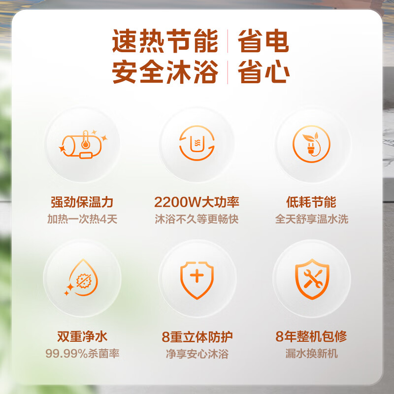 美的(Midea)2200W节能省电大水量家用长效免换镁棒储水式速热安全洗澡加长防电墙保温6重安防 M3 50L 2200W 【性价比TOP款】