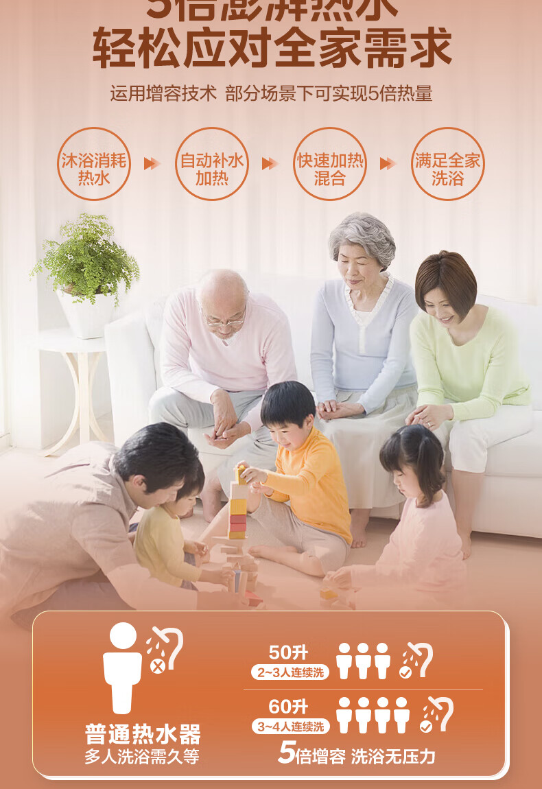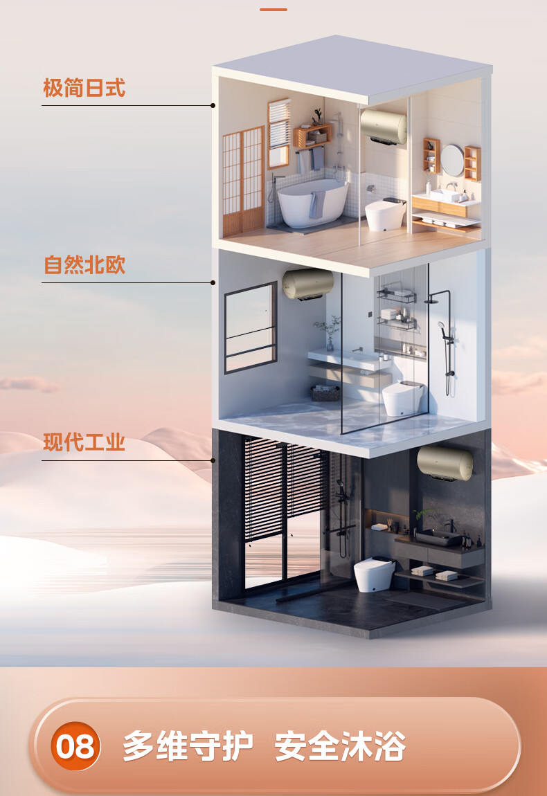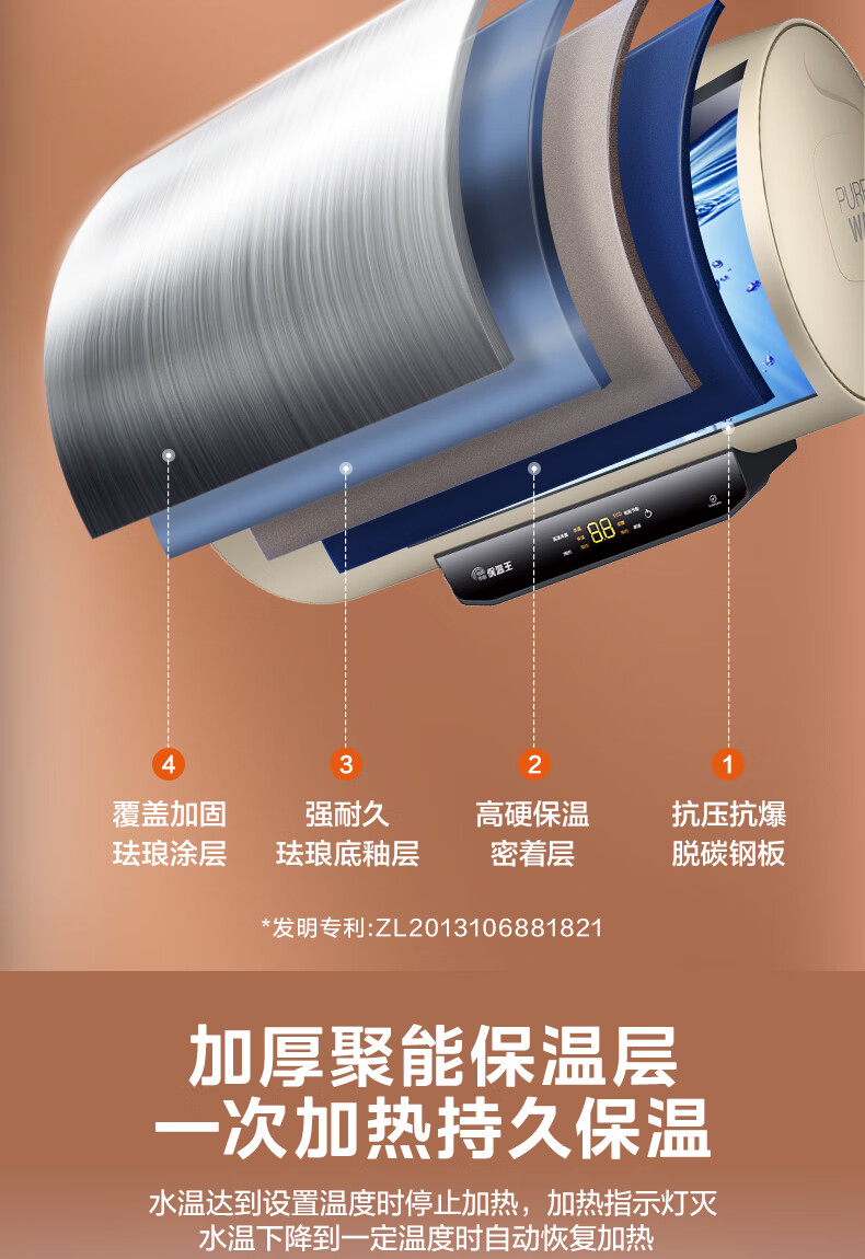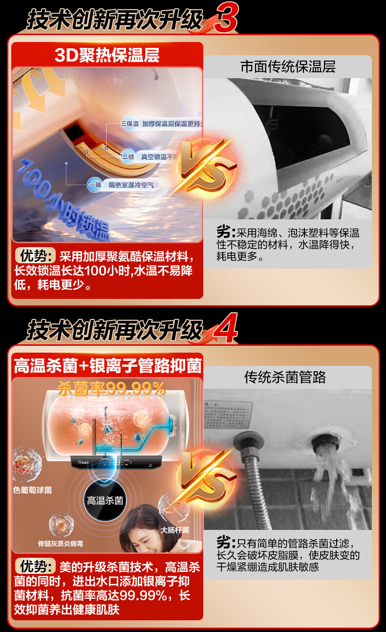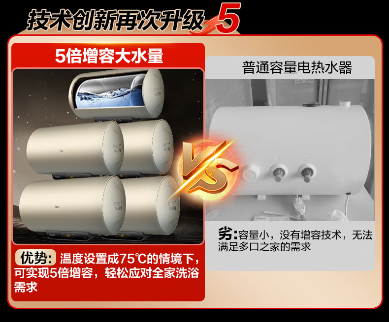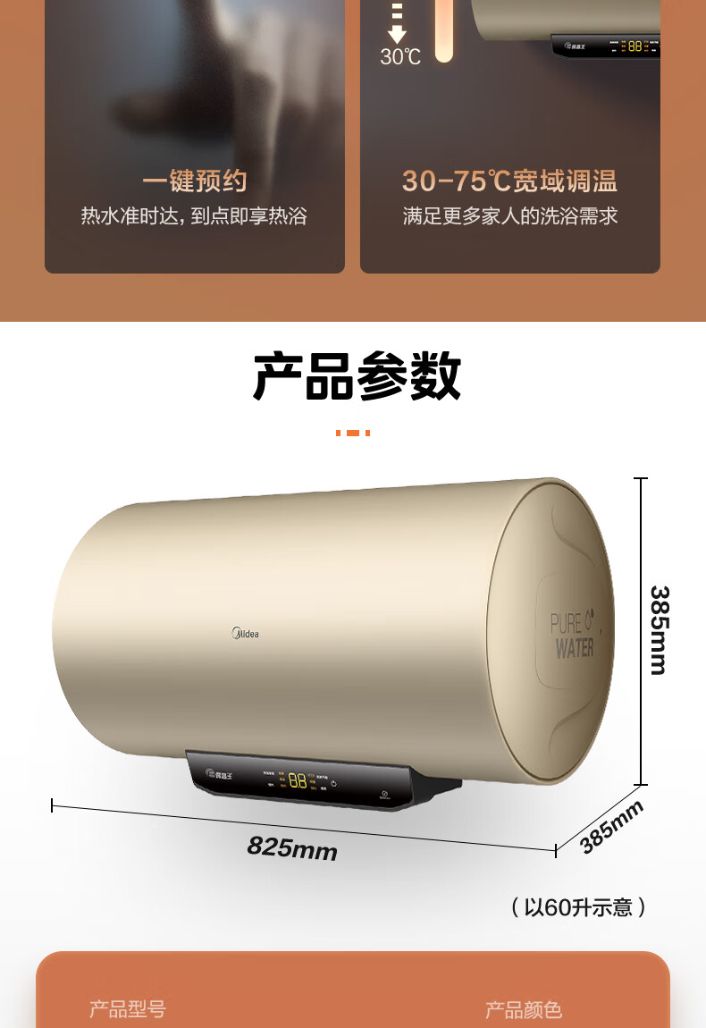 美的(Midea)2200W节能省电大水量家用长效免换镁棒储水式速热安全洗澡加长防电墙保温6重安防 M3 50L 2200W 【性价比TOP款】