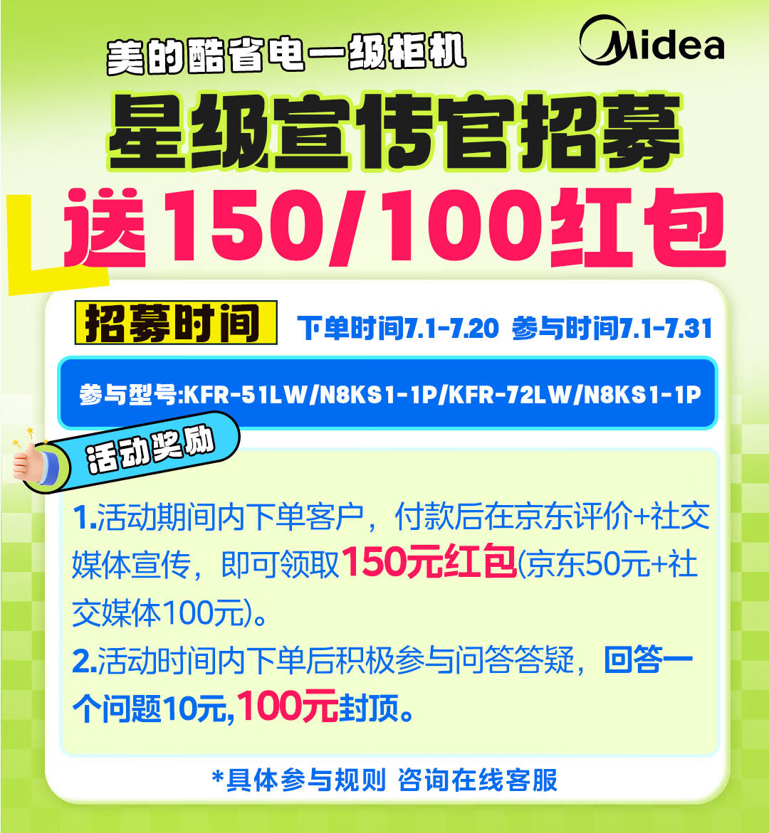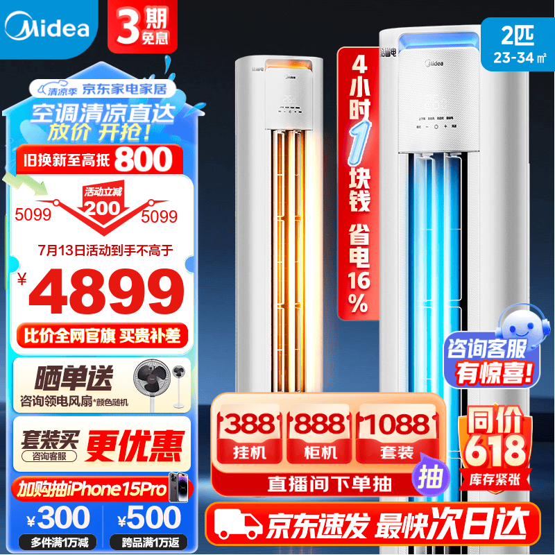 美的(Midea)【新品】空调柜机 酷省电 新一级能效 节能省电 变频冷暖  智能低噪自清洁 家用客厅空调立式 3匹 一级能效