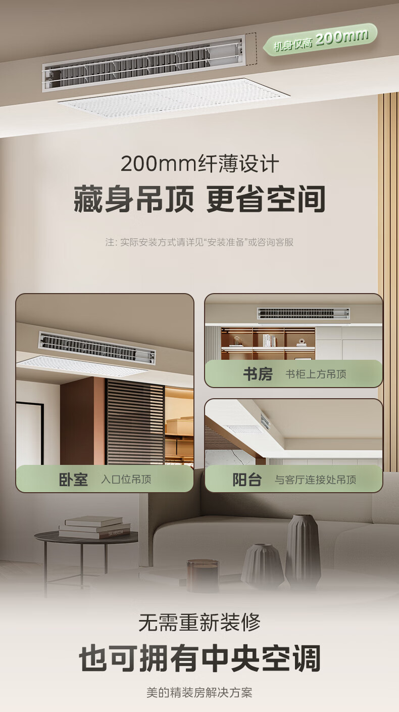 • 内机尺寸: 宽1310mm;高200mm;深450mm