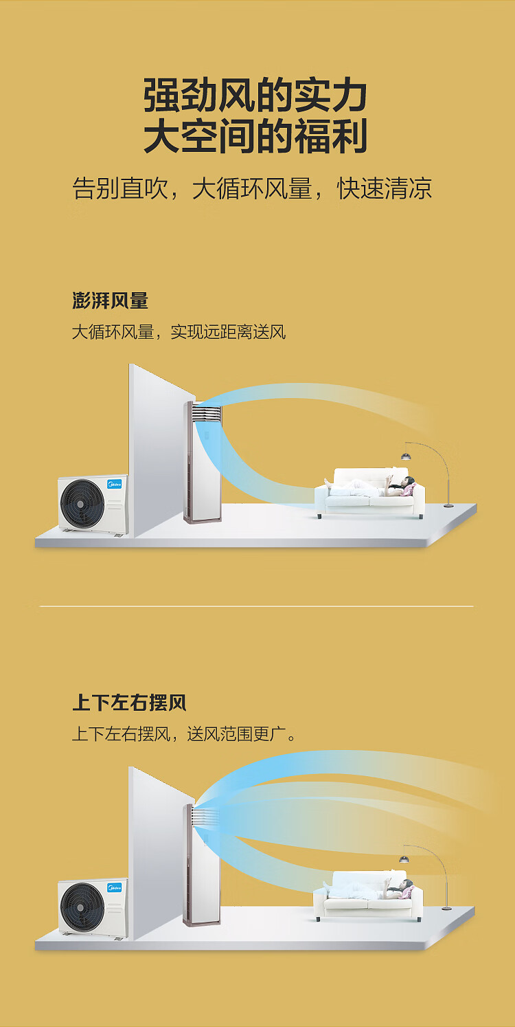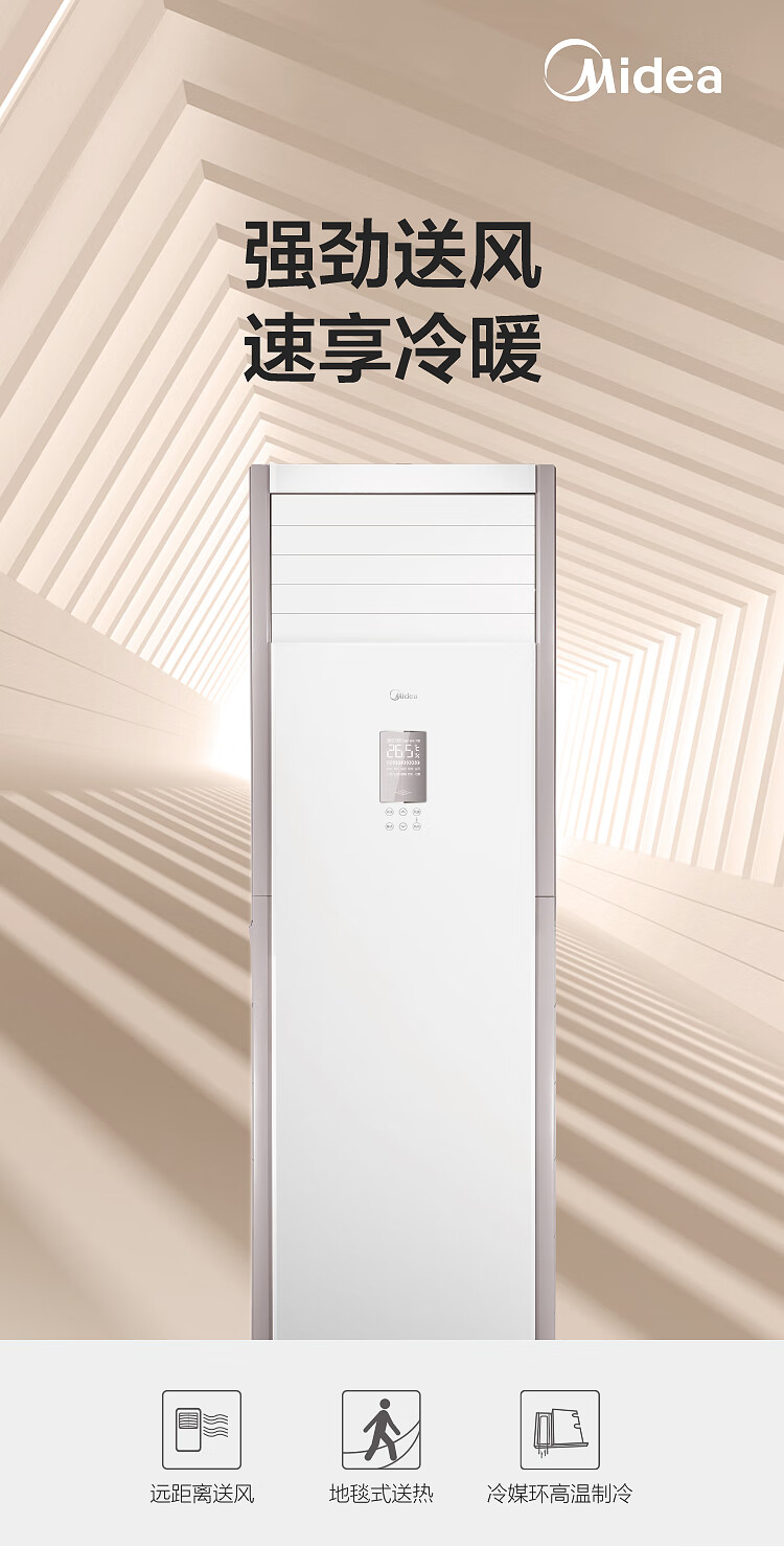 美的(Midea)5匹柜式空调5p柜机商用中央空调立式冷暖客厅商铺两用办公铺面大功率RFD-120LW/BSDN8Y-PA401(B3)B 5匹 三级能效