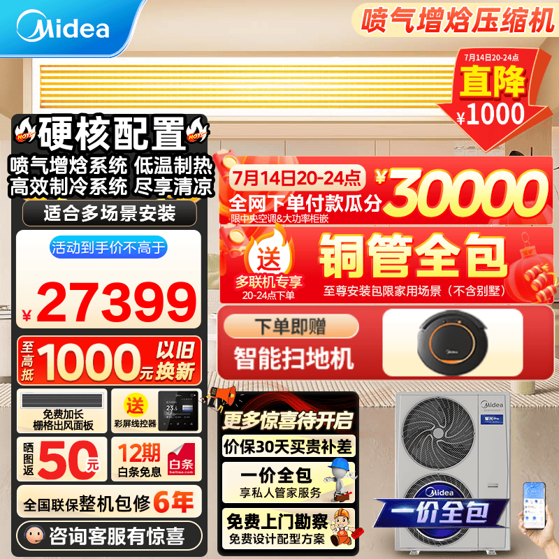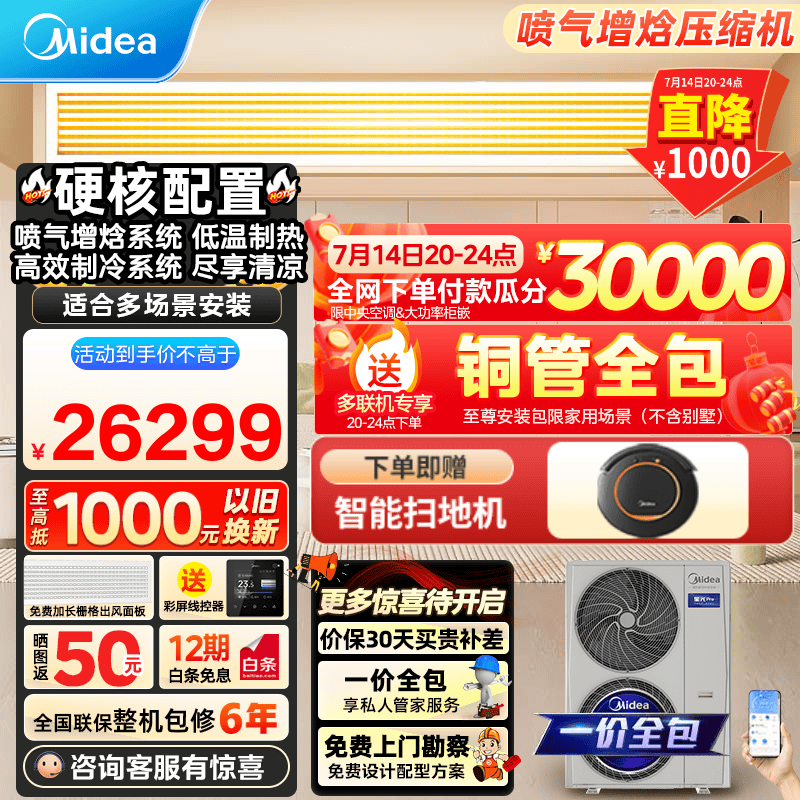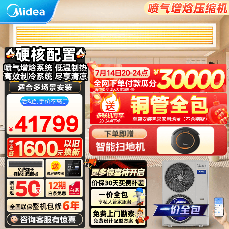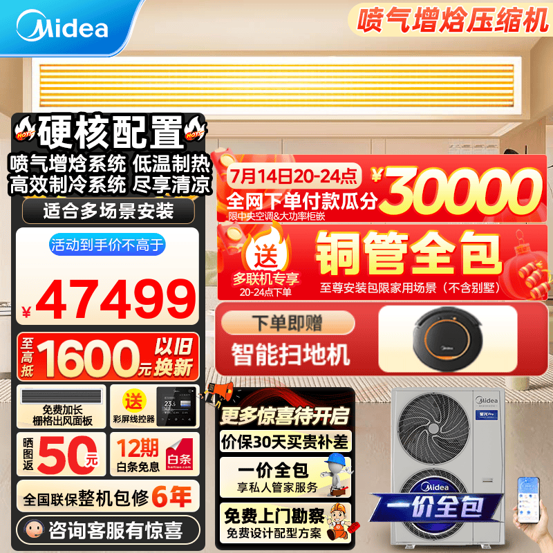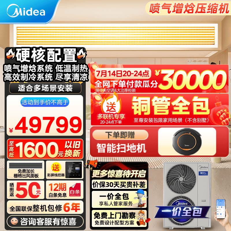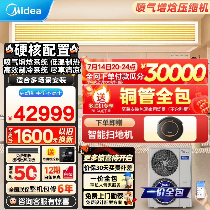 美的星光Pro中央空调一拖五多联机四室二厅一拖三全直流变频新一级能效嵌入式隐藏式空调 3月新品 5匹 一级能效