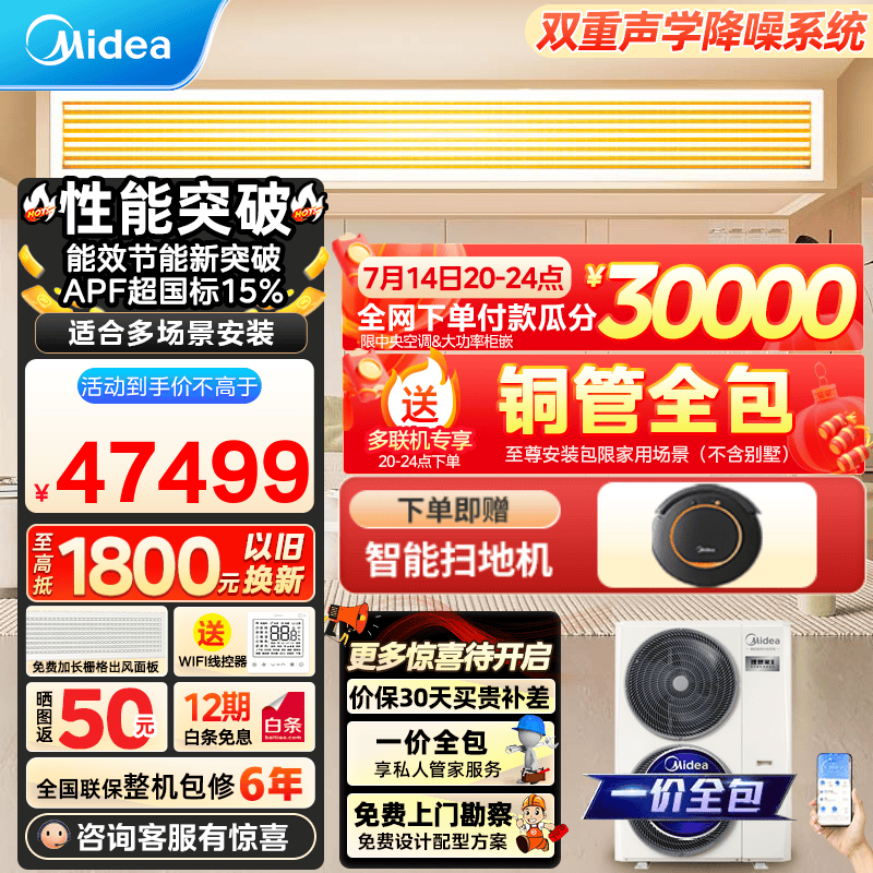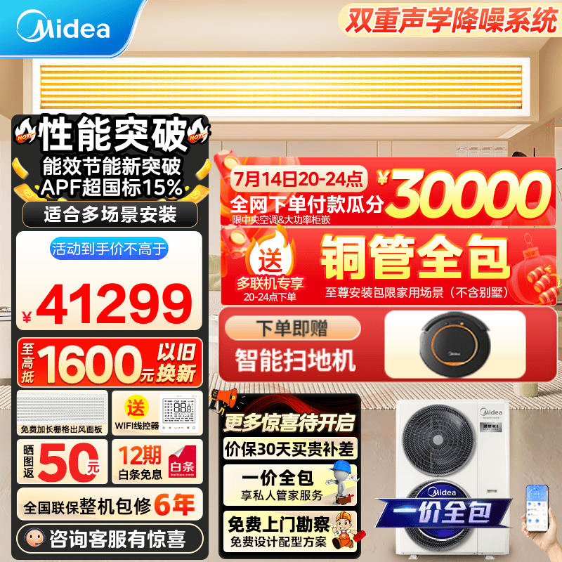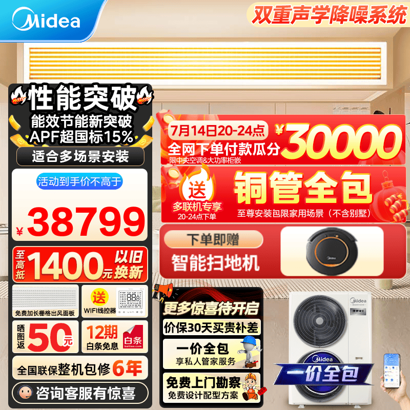 美的(Midea)理想家三代中央空调一拖四新升级 全屋智慧空气管家一拖多 全直流变频多联机一级能效 5匹 一级能效 一拖四