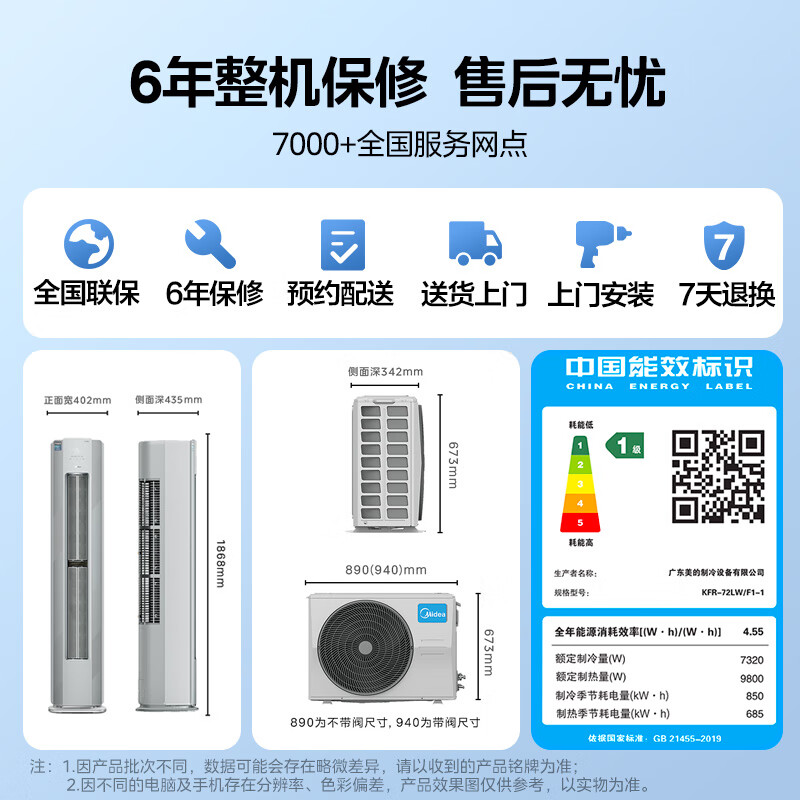 • 内机机身尺寸: 宽435mm;高1868mm;深402mm