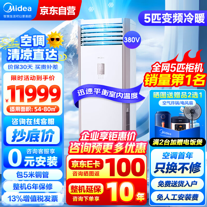 美的(Midea)KFR-72LW/BDN8Y-PA401(3)A 3匹柜式空调 新三级能效 变频冷暖 商用空调柜机 380v三相电