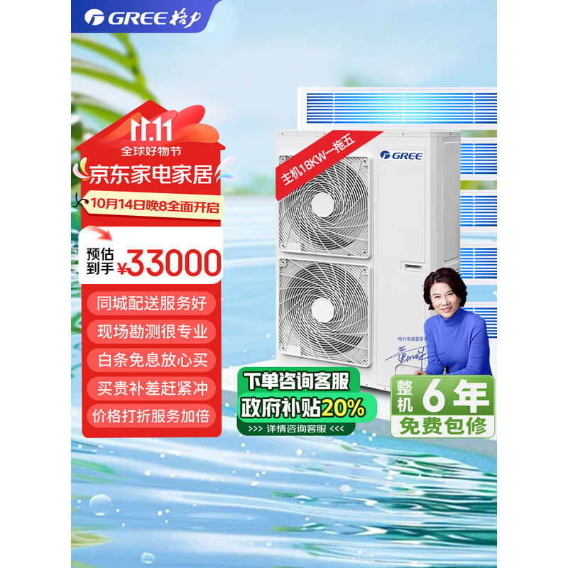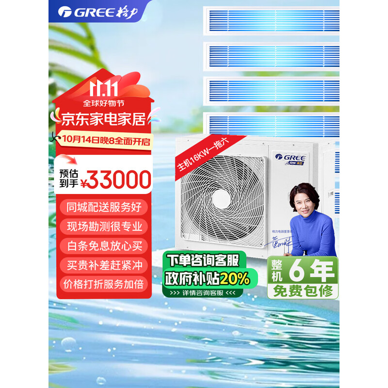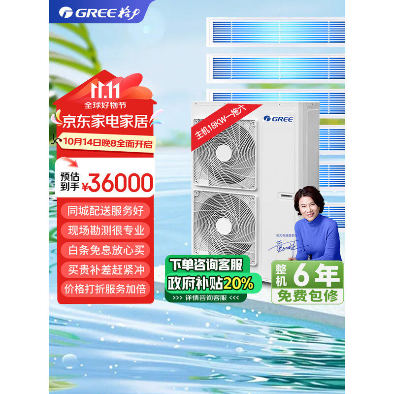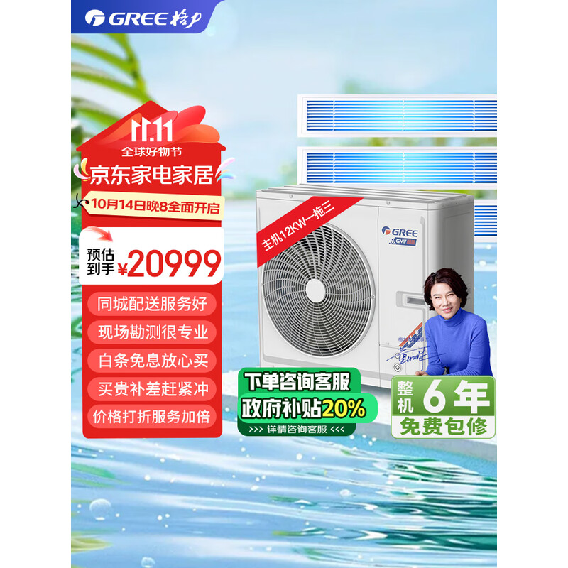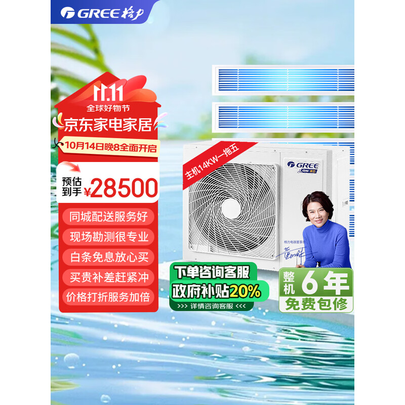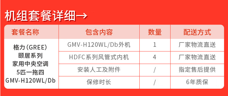 格力(GREE)5匹一拖四包安装颐居一级变频全直流高温自清洁风管式多联机嵌入式冷暖家用中央空调GMV-H120WL/Db