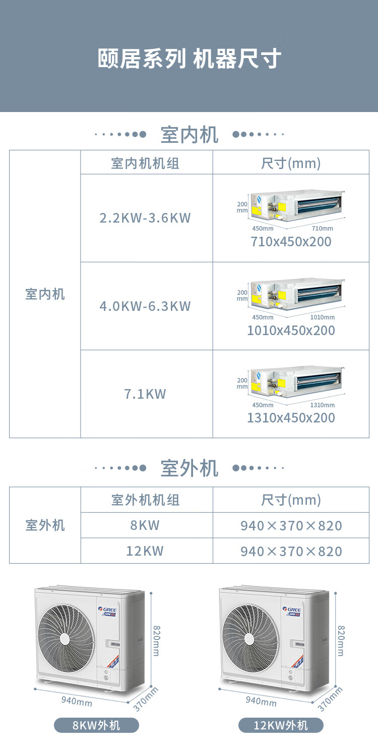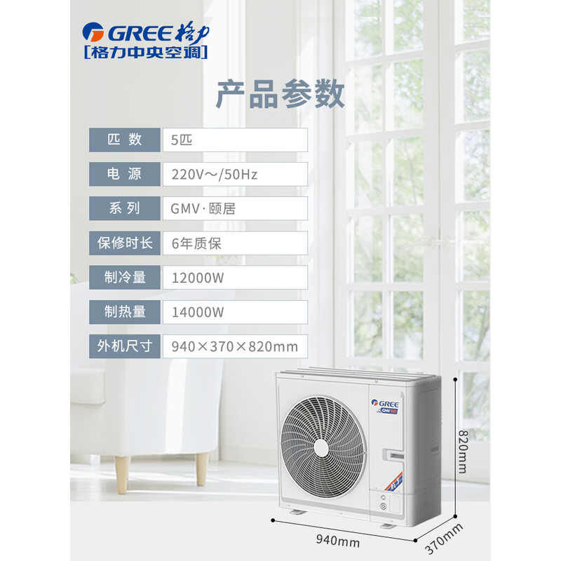 • 外机尺寸: 宽940mm;高820mm;深370mm